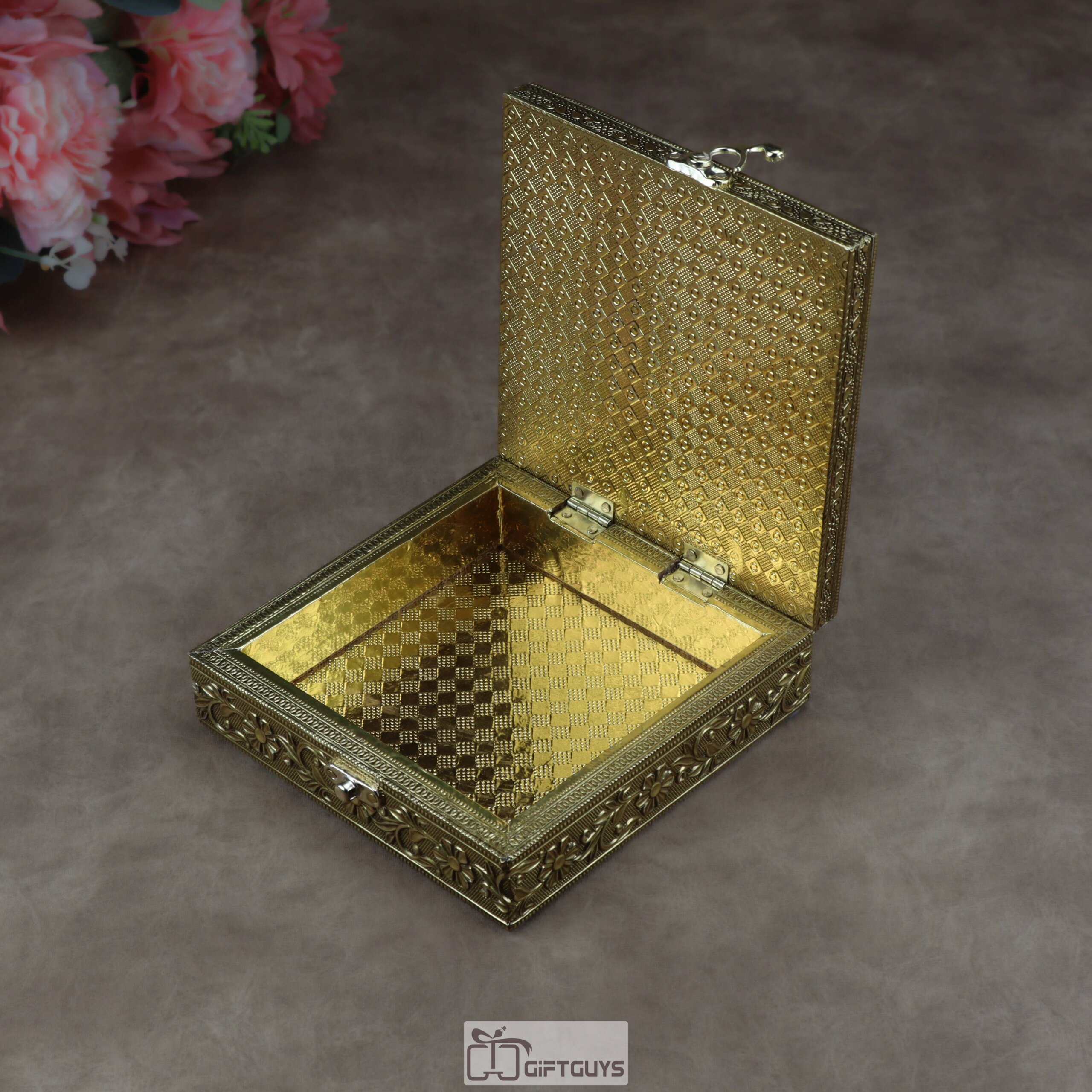Premium Specifications: Designed with a square profile, this sturdy box measures 6 x 2 inches and is finished in a luxurious antique gold tone.