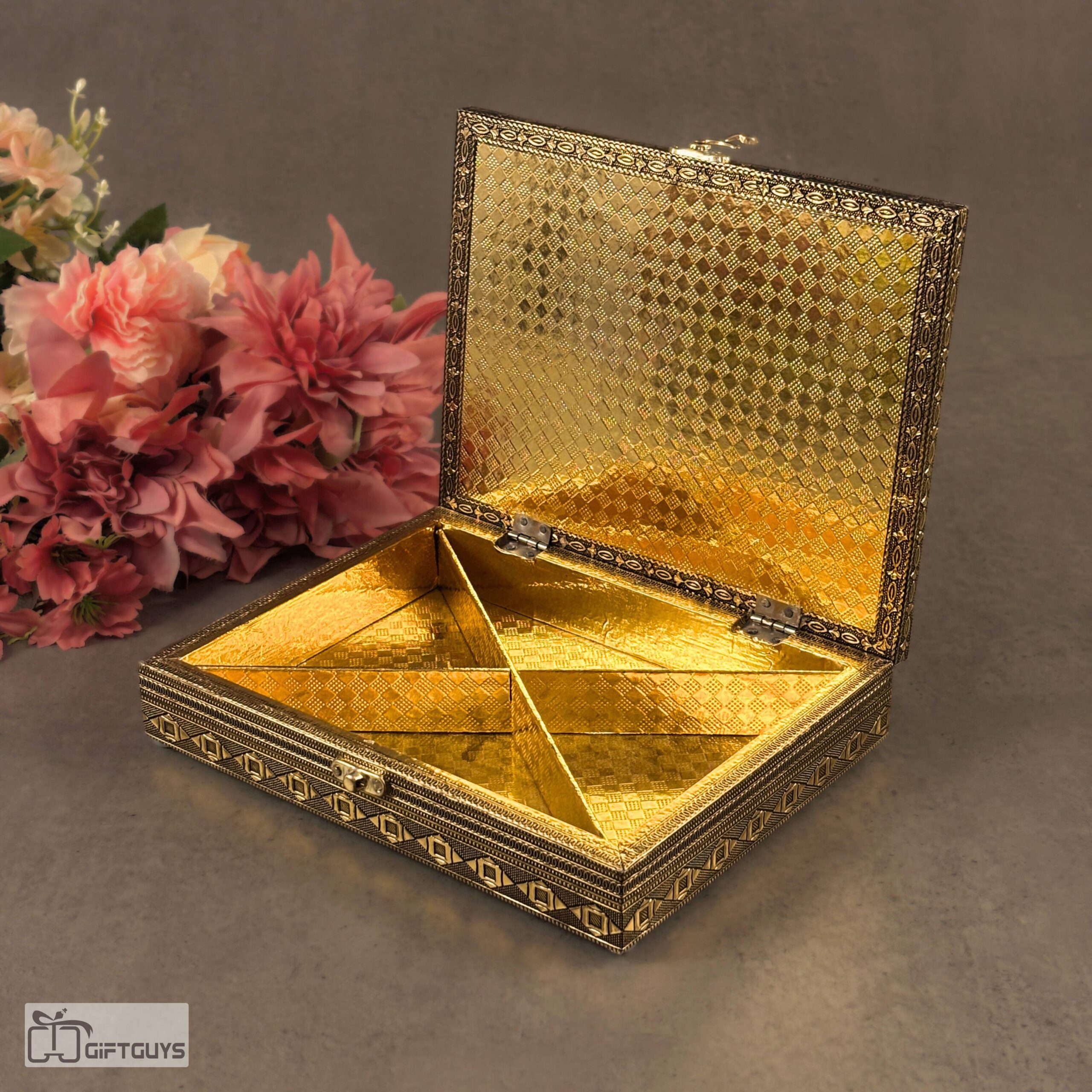 4 neatly divided compartments – perfect for dry fruits, sweets, or snacks
