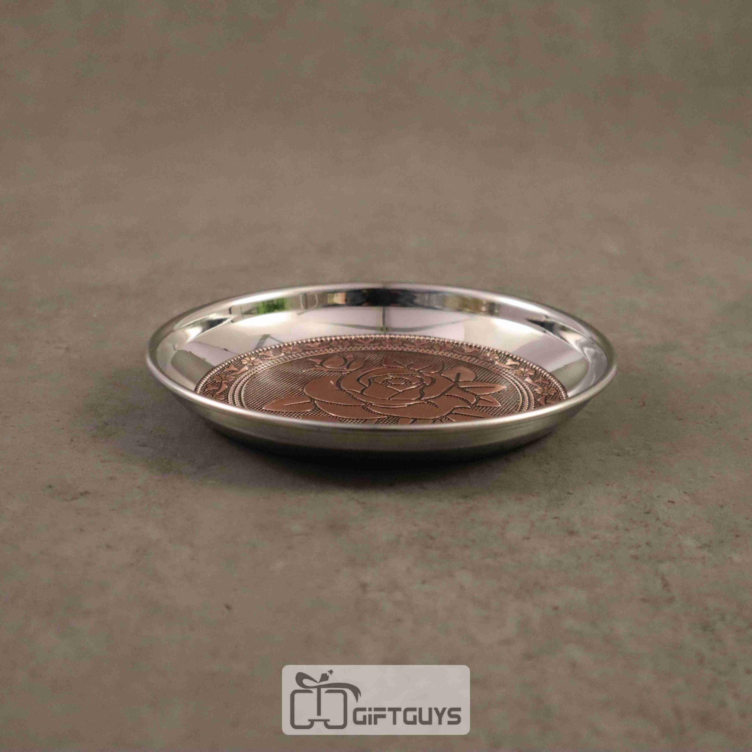 Copper oxidised floral designed steel plate 6 inch