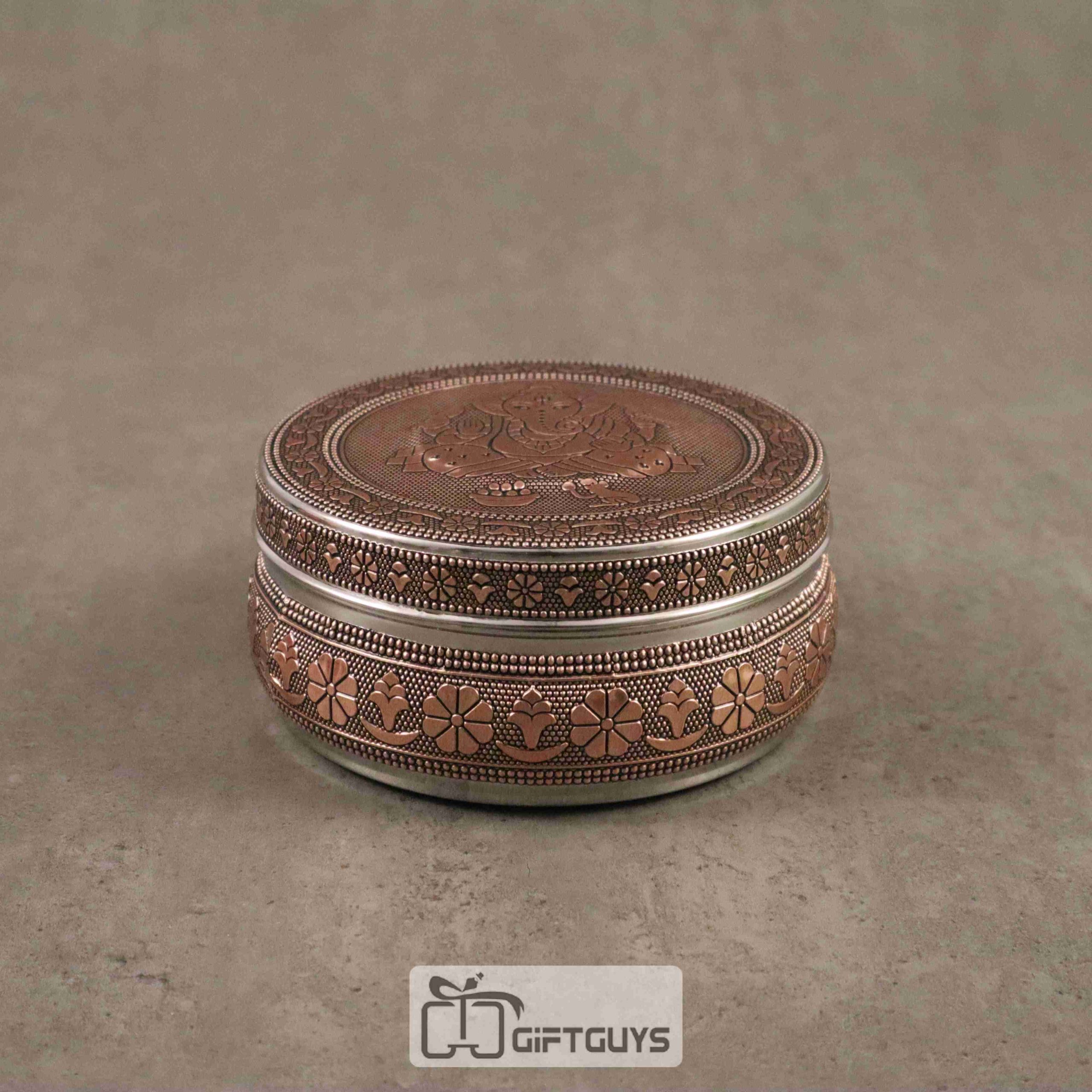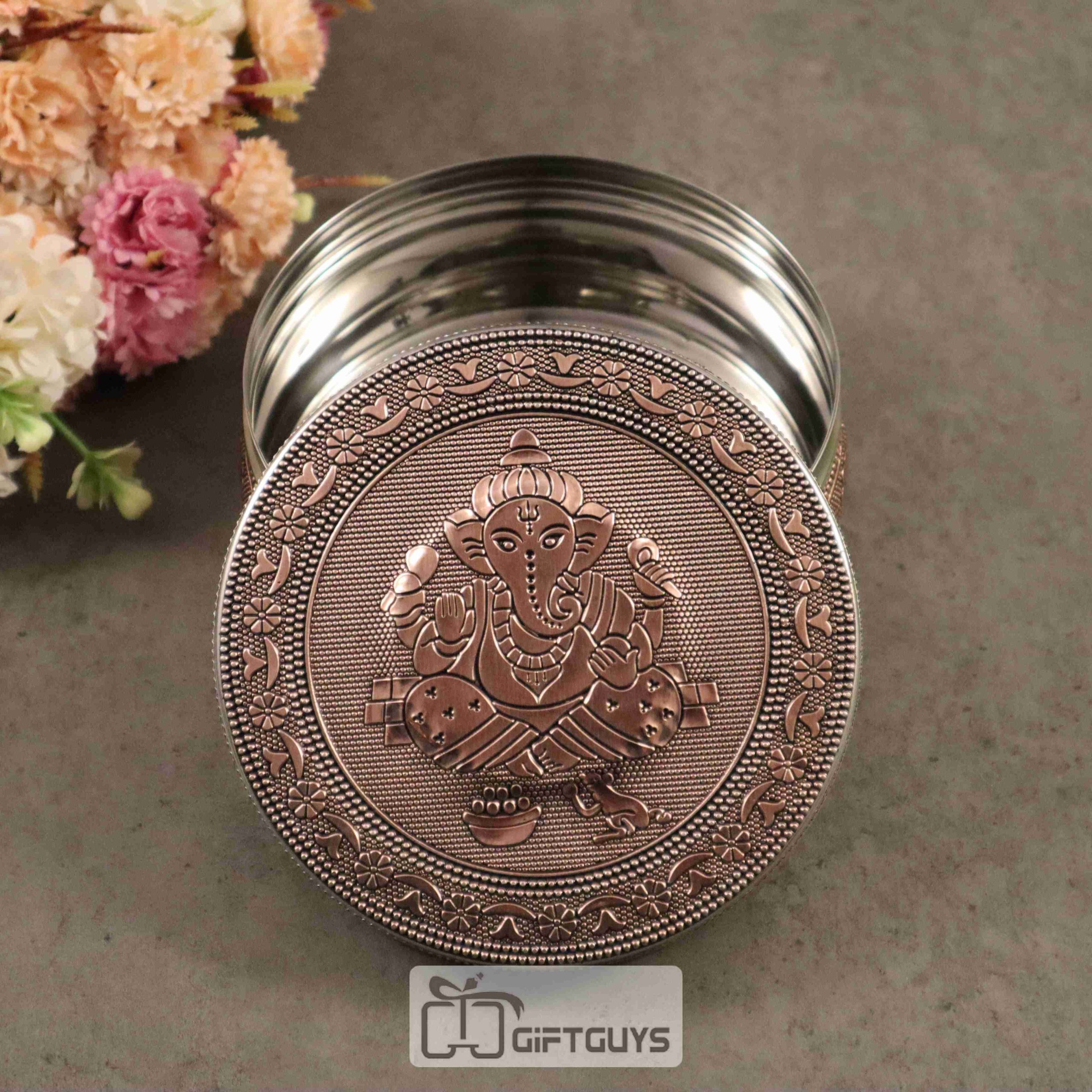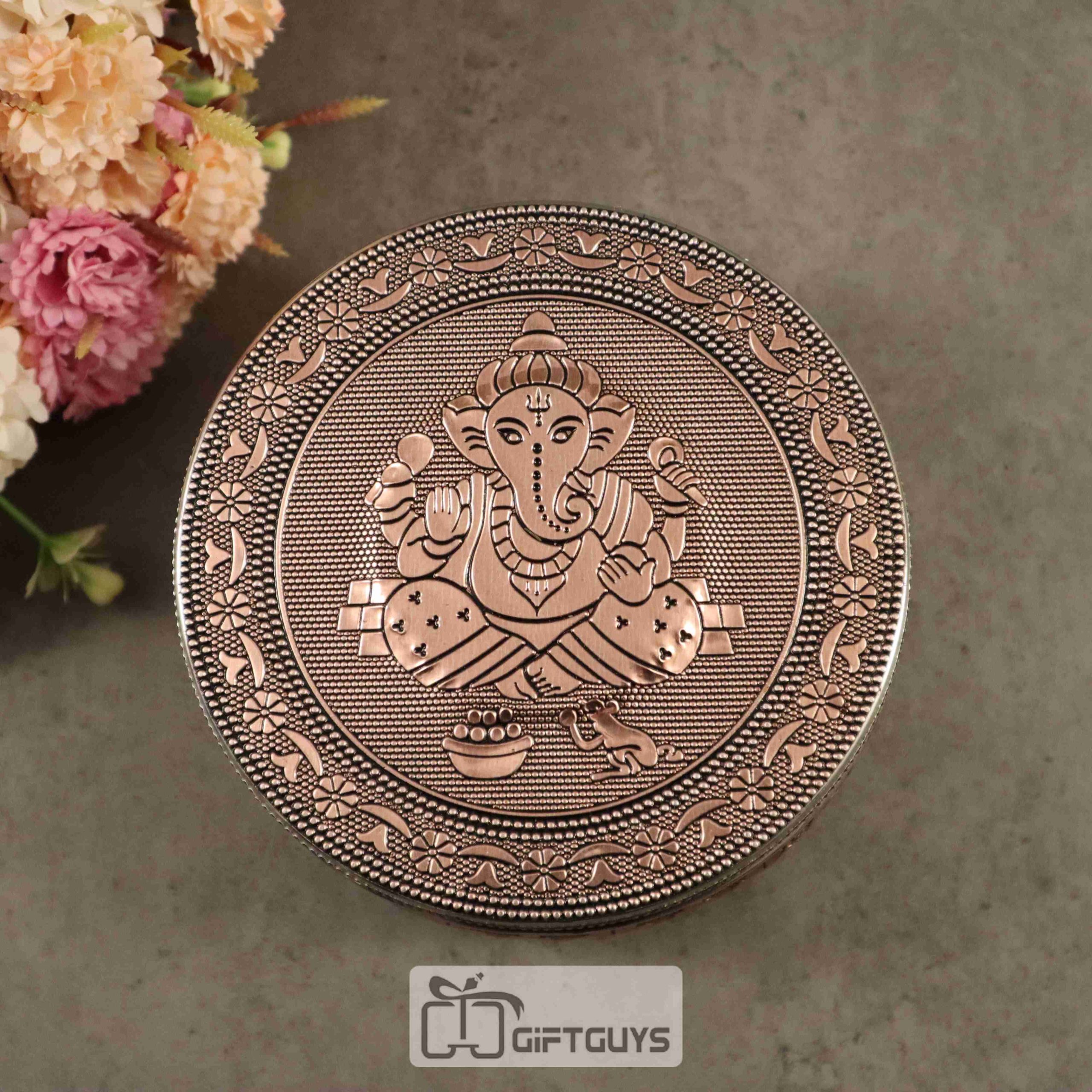 Copper Finish Ganesha Design Steel Box – Decorative Storage Container for Pooja & Gifts (5-Inch)