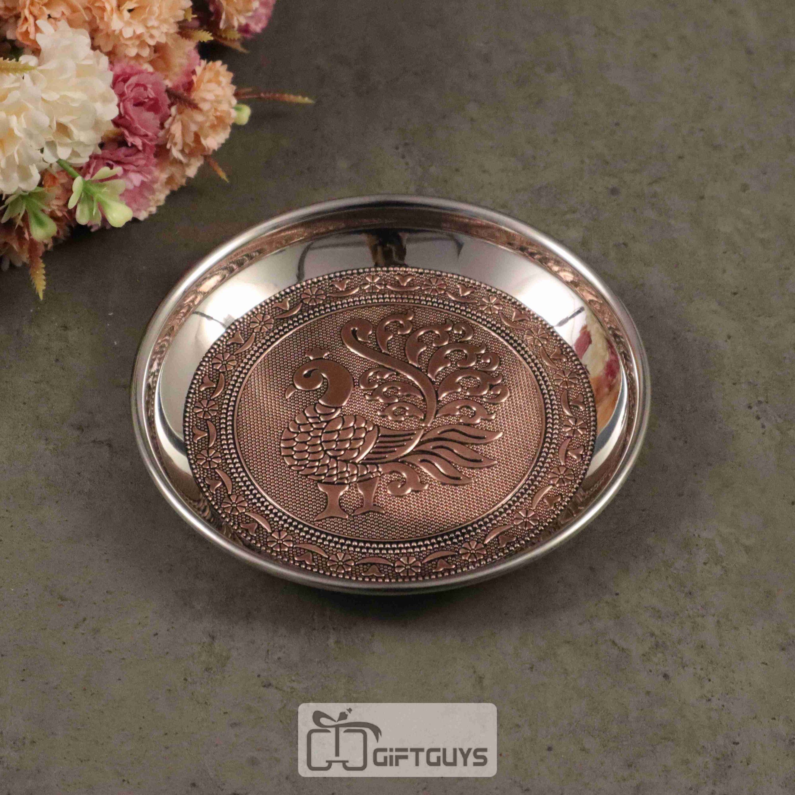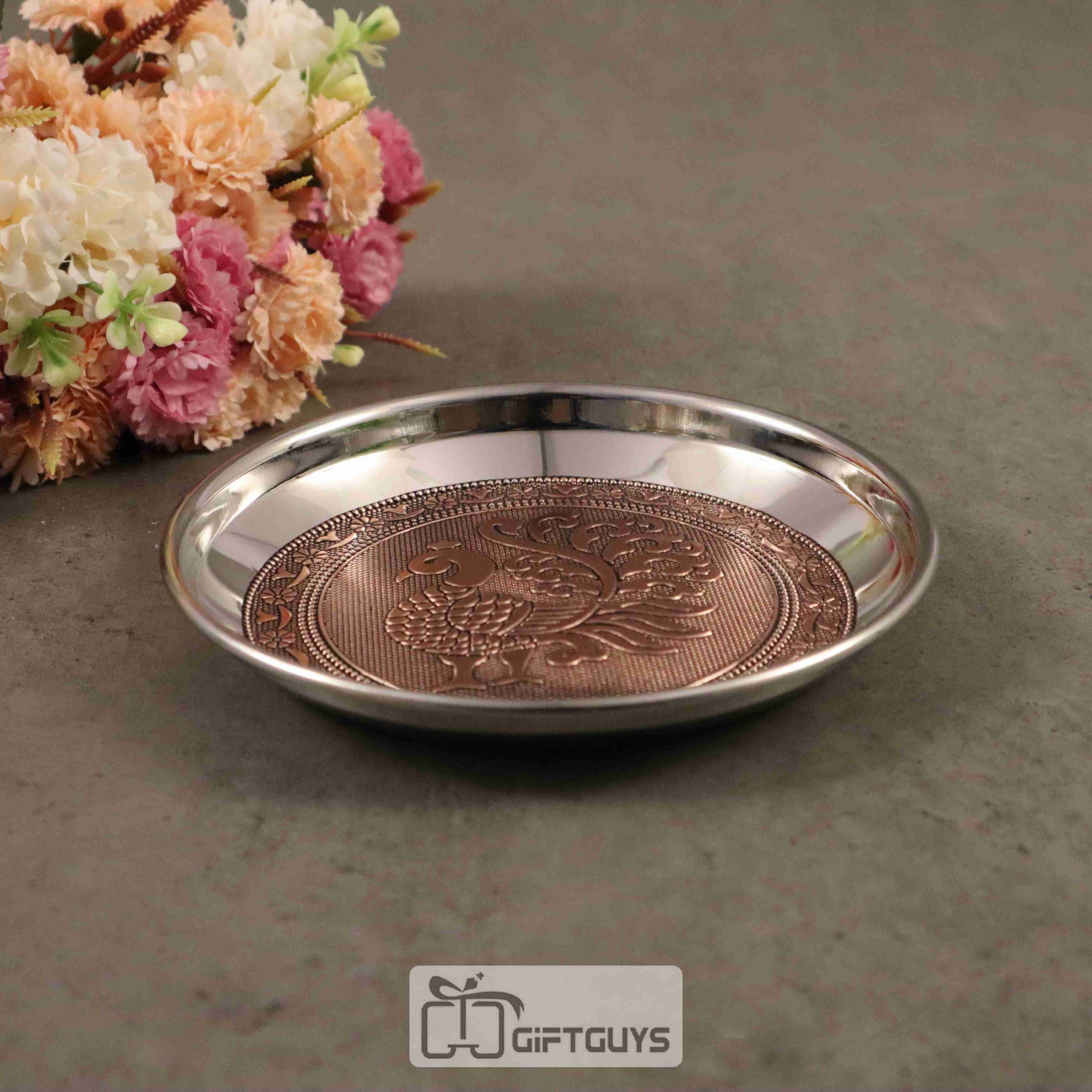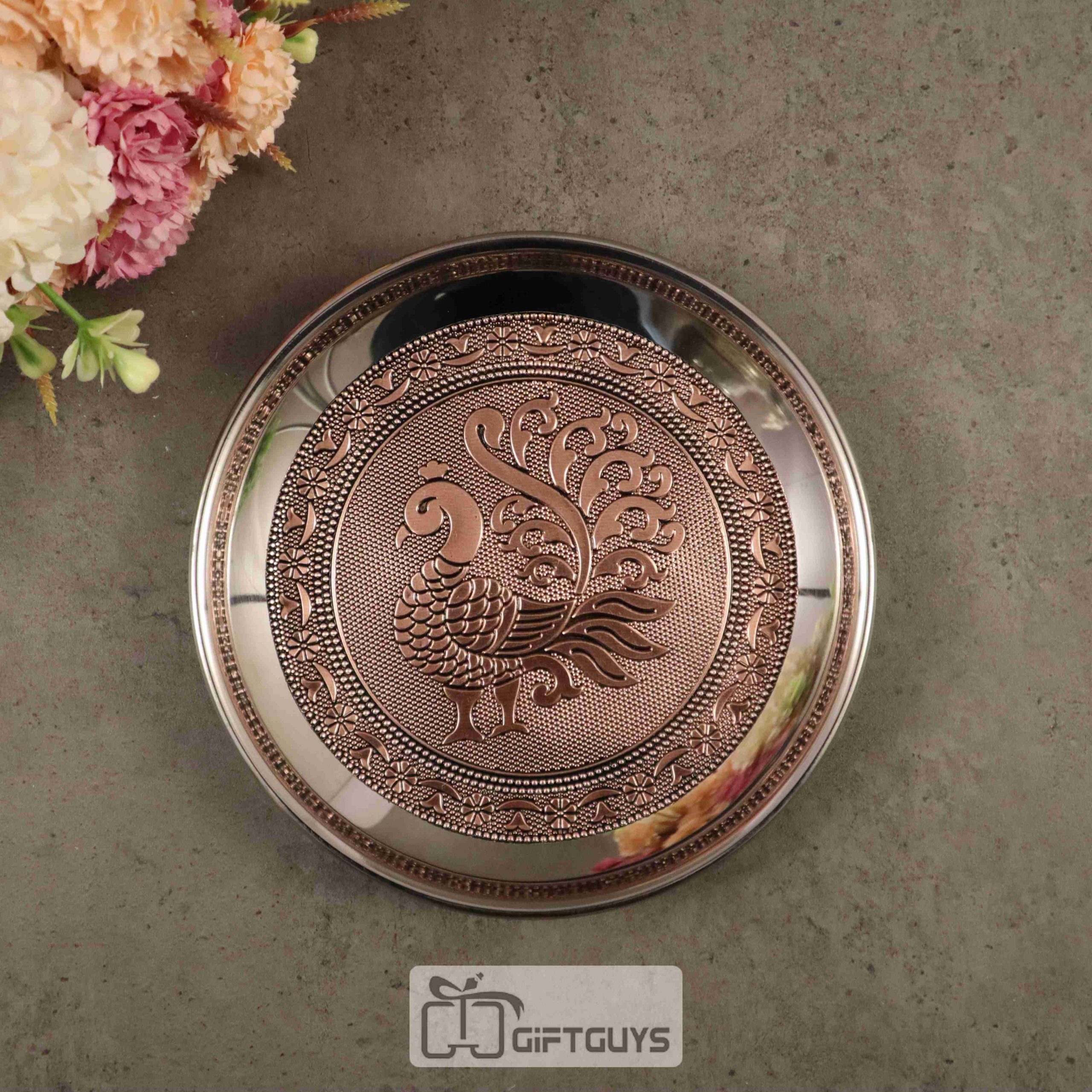 Copper oxidised Peacock designed steel plate 6 inch
