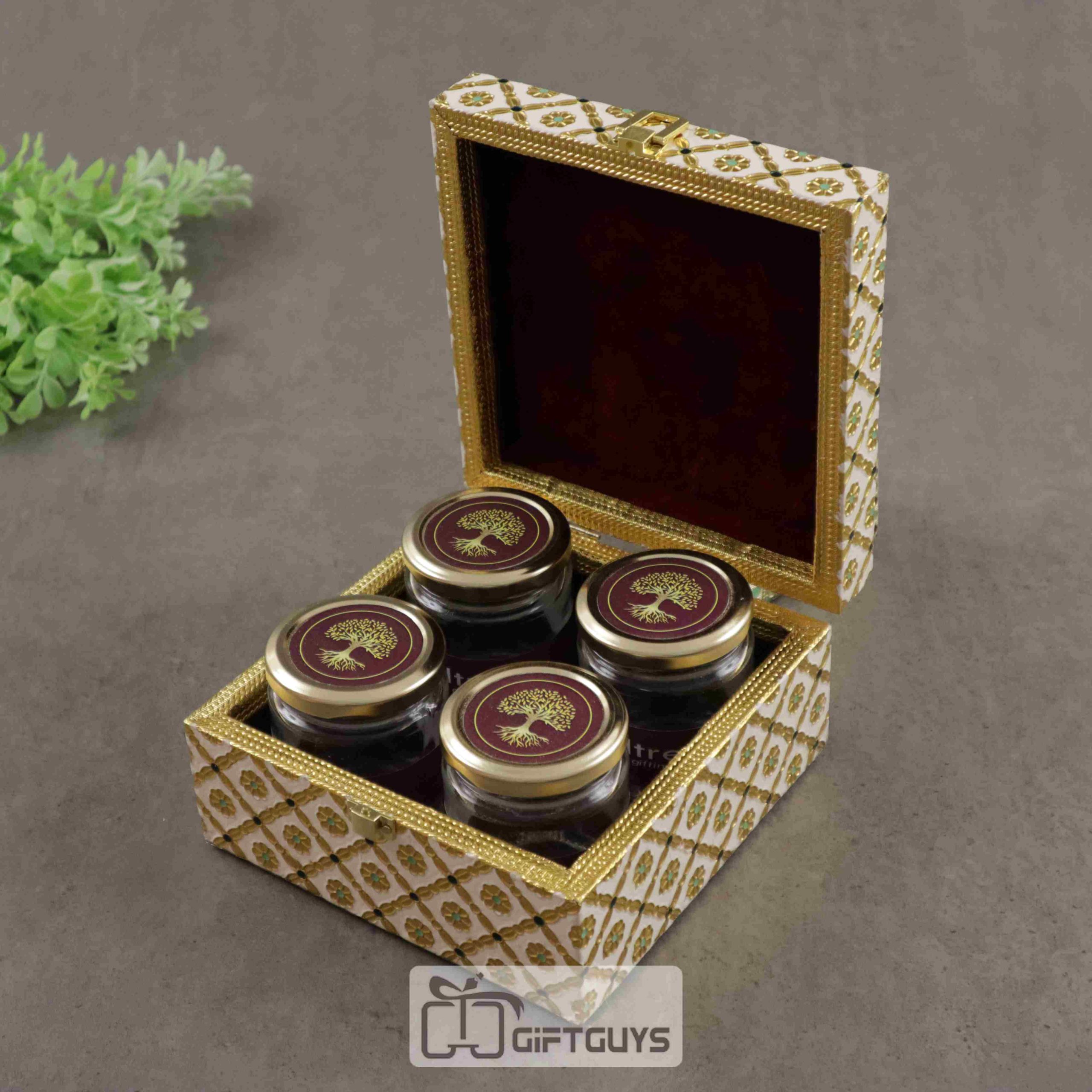Decorative White Meenakari 4 Jar Dryfruit Box