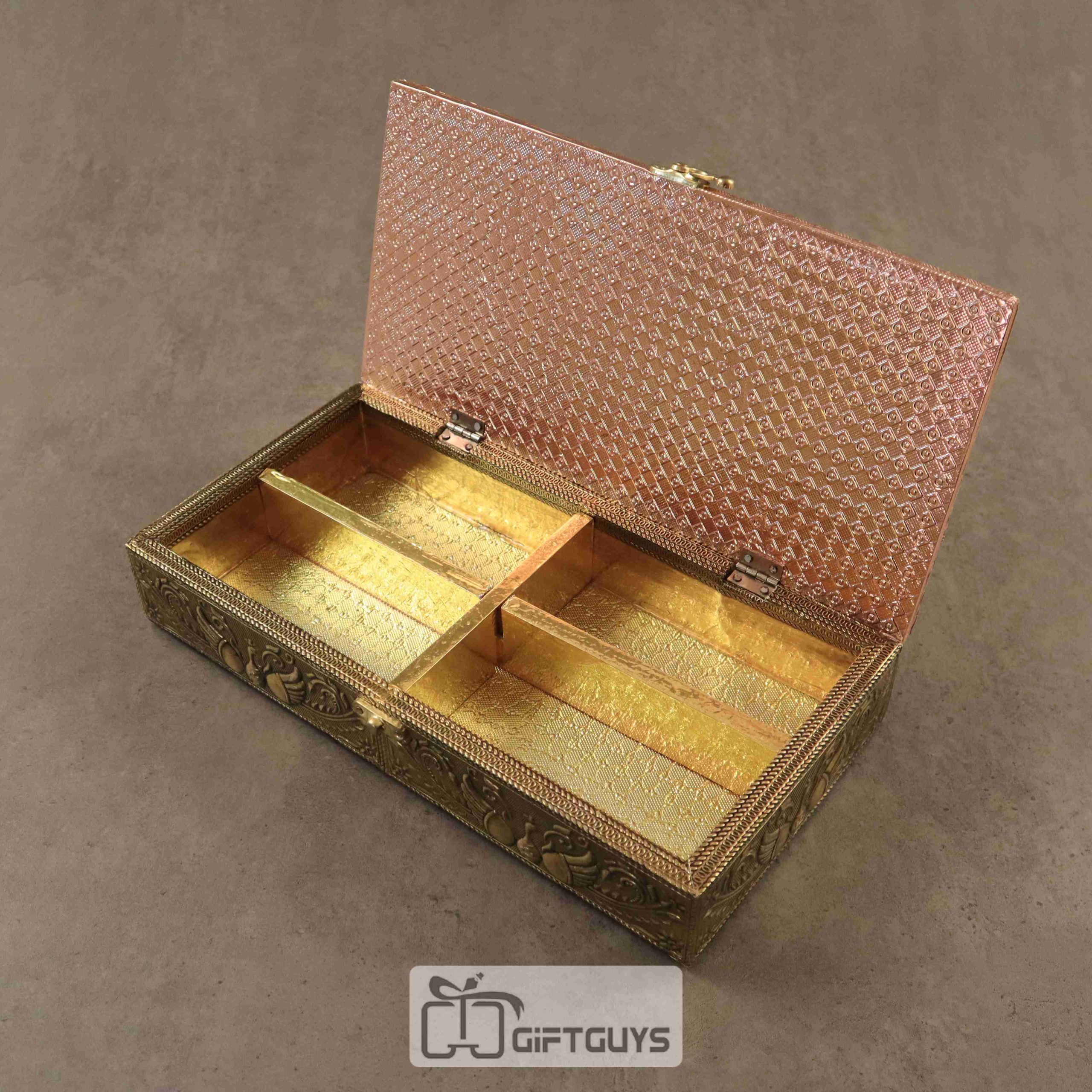Handcrafted Wooden Dry Fruit Box with Antique Finish & Golden Compartments – GiftGuys