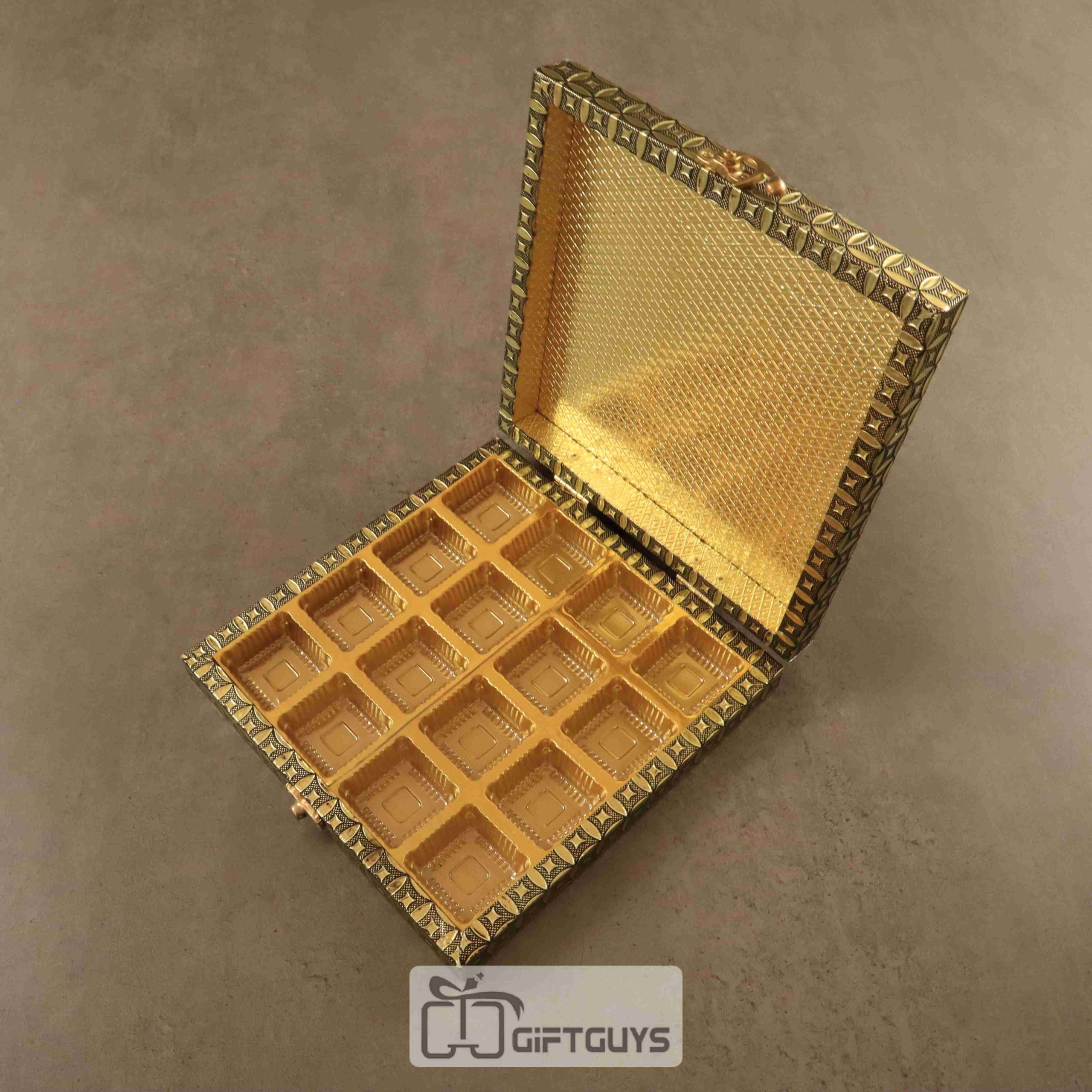 A Handcrafted Chocolate Box is a beautifully designed container made to hold chocolates, often created using traditional craft techniques. Typically made from wood, cardboard, or metal, these boxes are meticulously decorated with artistic details such as intricate carvings, painting, or embroidery. The craftsmanship often incorporates vibrant colors, patterns, or motifs like floral designs or geometric shapes, making each box unique. Some are further enhanced with materials like mirror work, metal accents, or fabric, adding a touch of luxury. Handcrafted chocolate boxes make perfect gifts for special occasions, offering both an elegant presentation and a personal, artisanal touch to the chocolates inside.