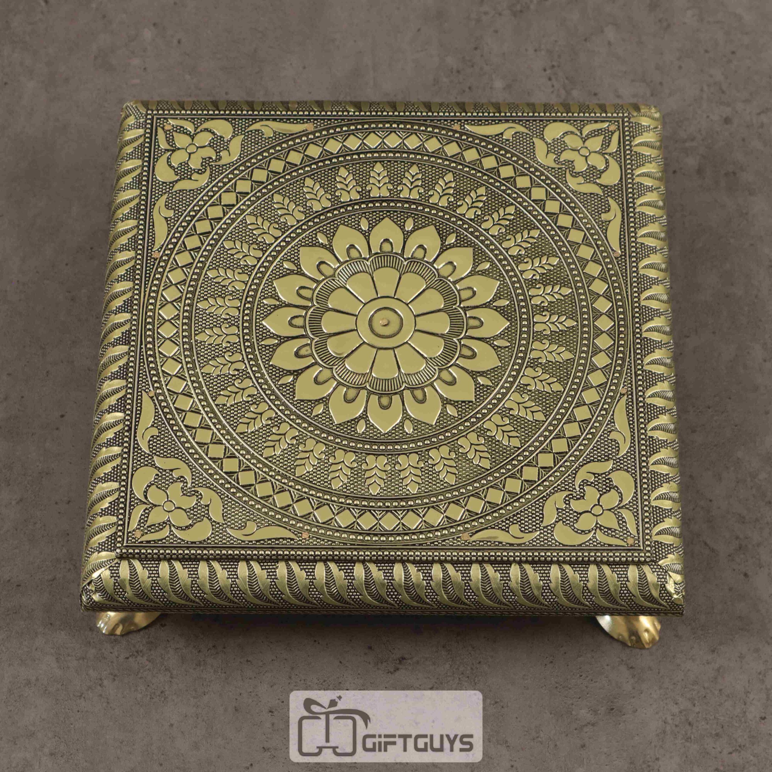 📏 Ideal Dimensions – 8 x 8 inch surface and 2 inch height, perfect for placing idols, diyas, or ritual items.