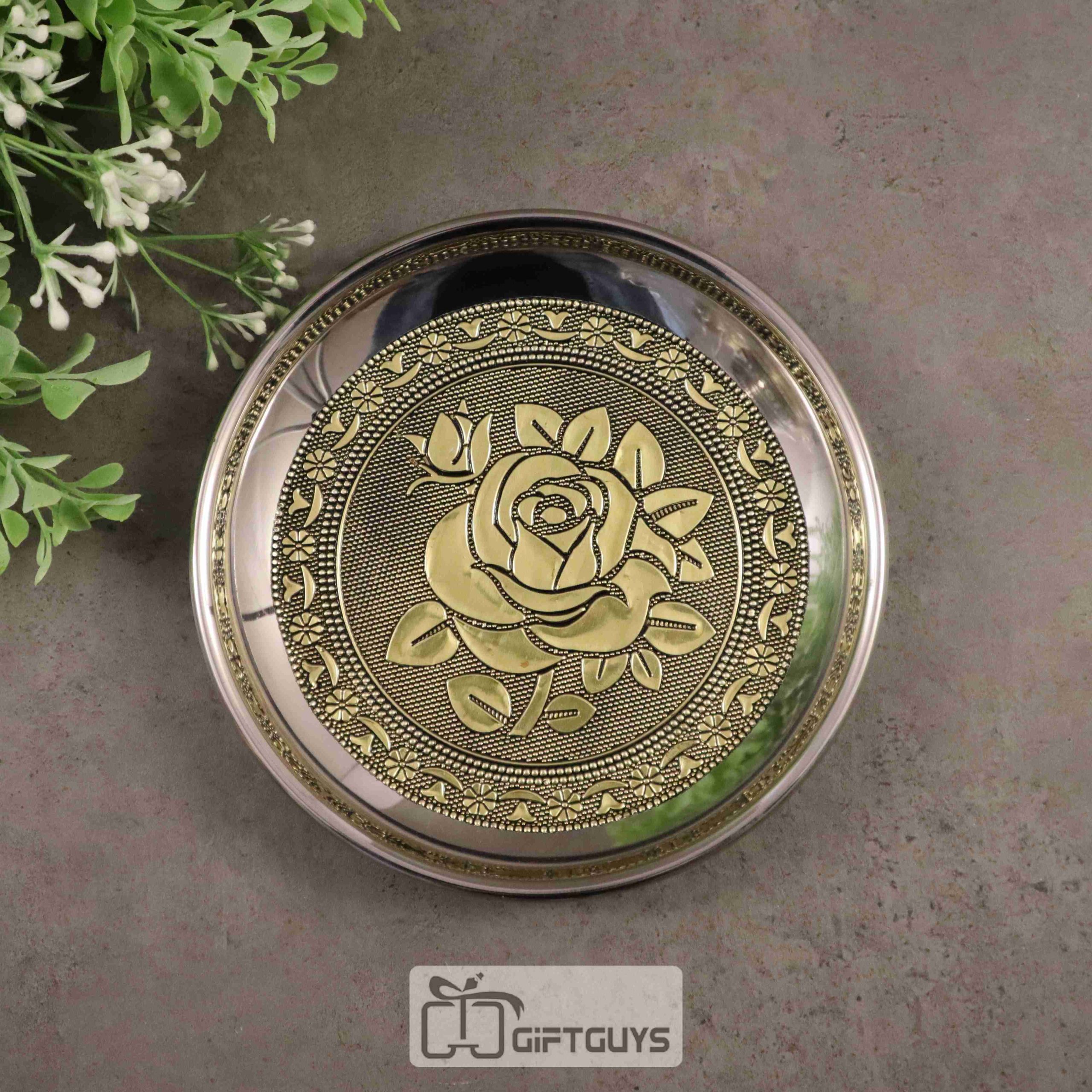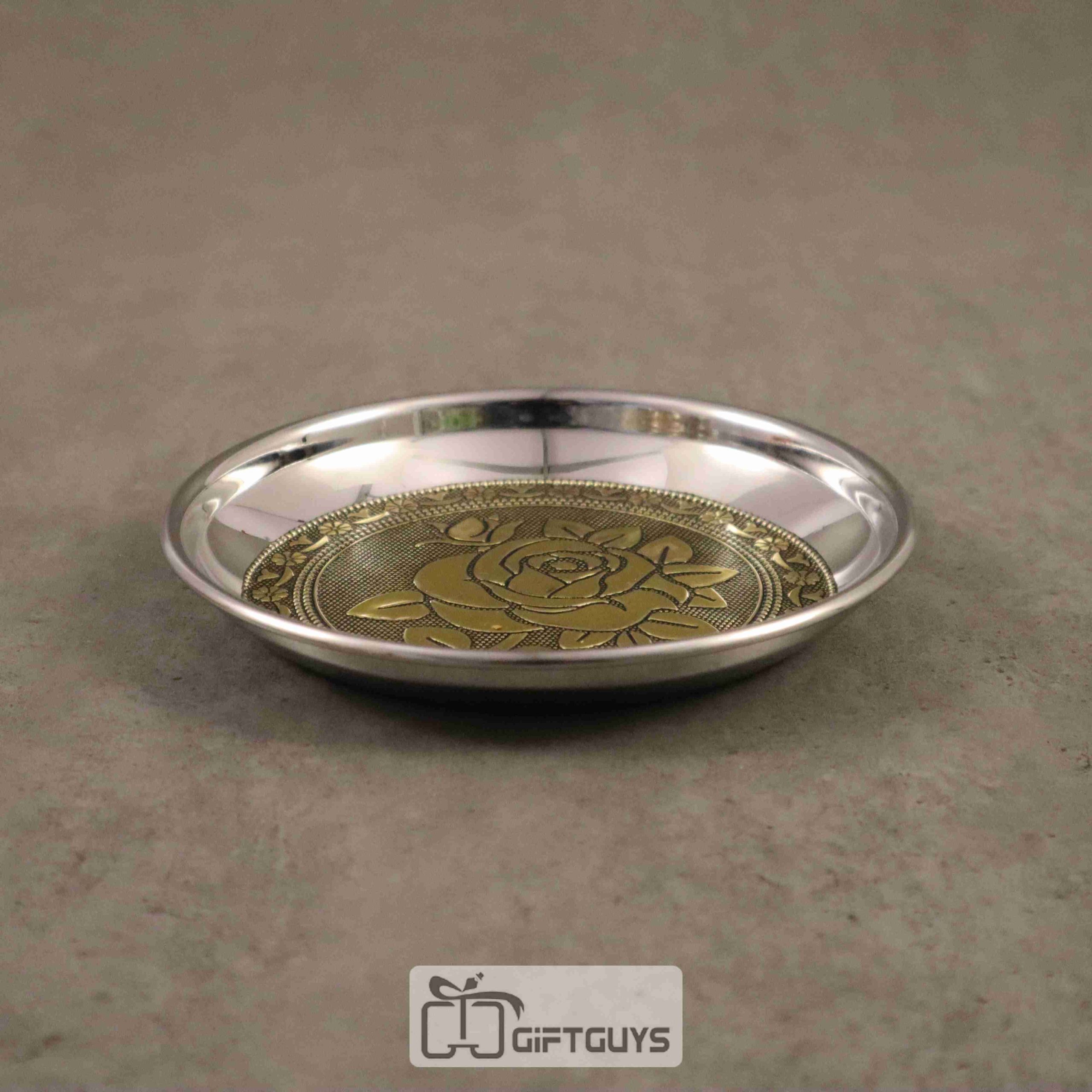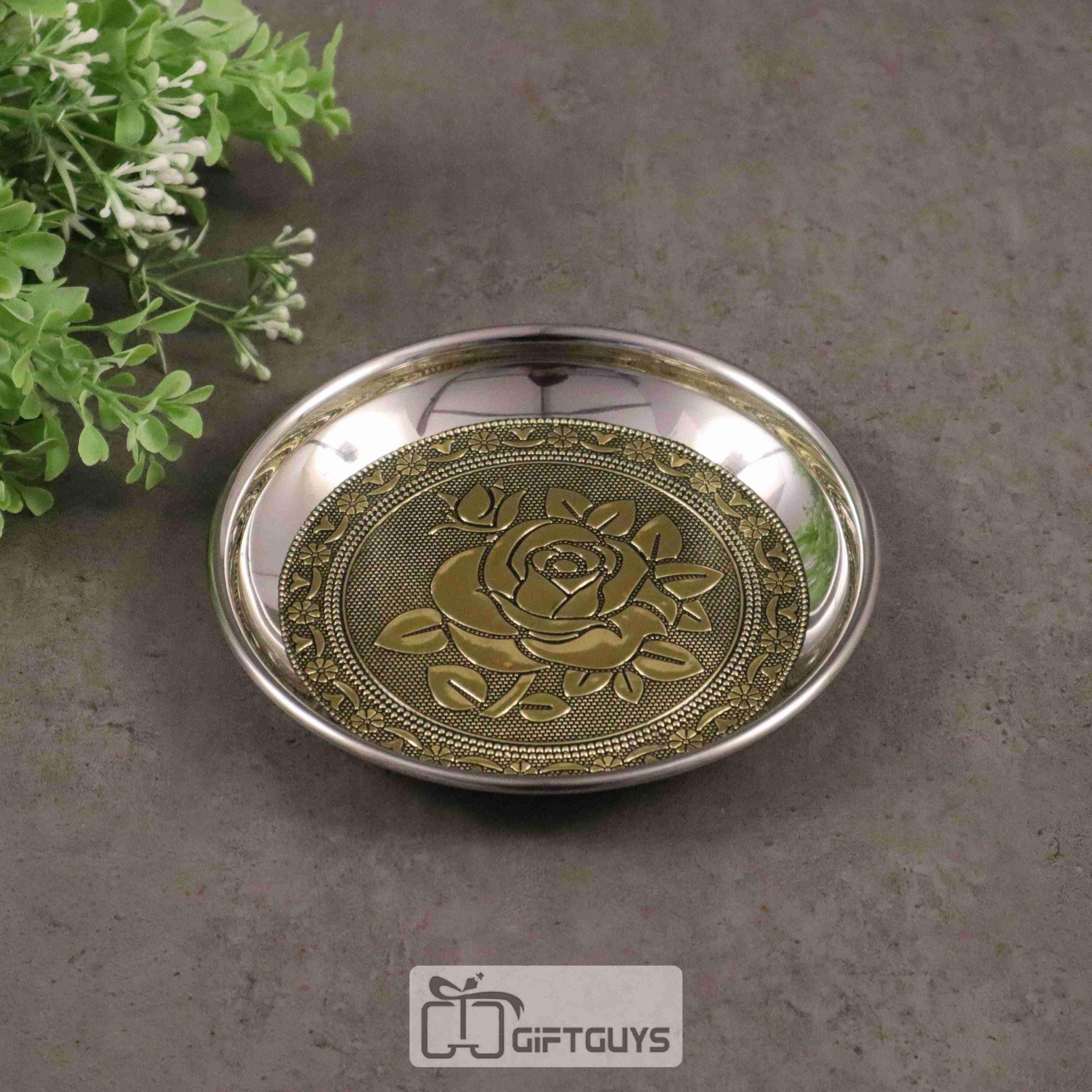 Golden oxidised floral designed plate 6 inch