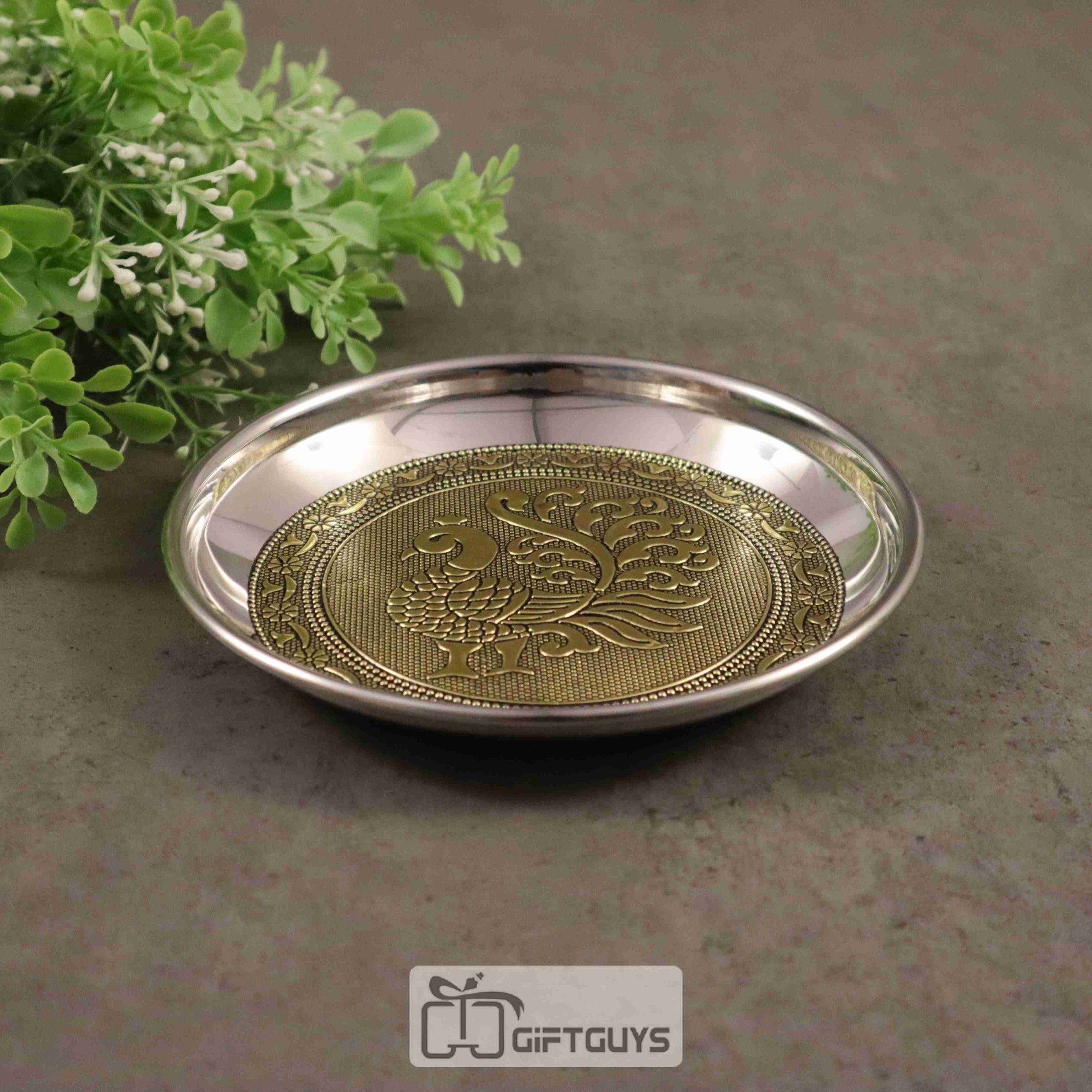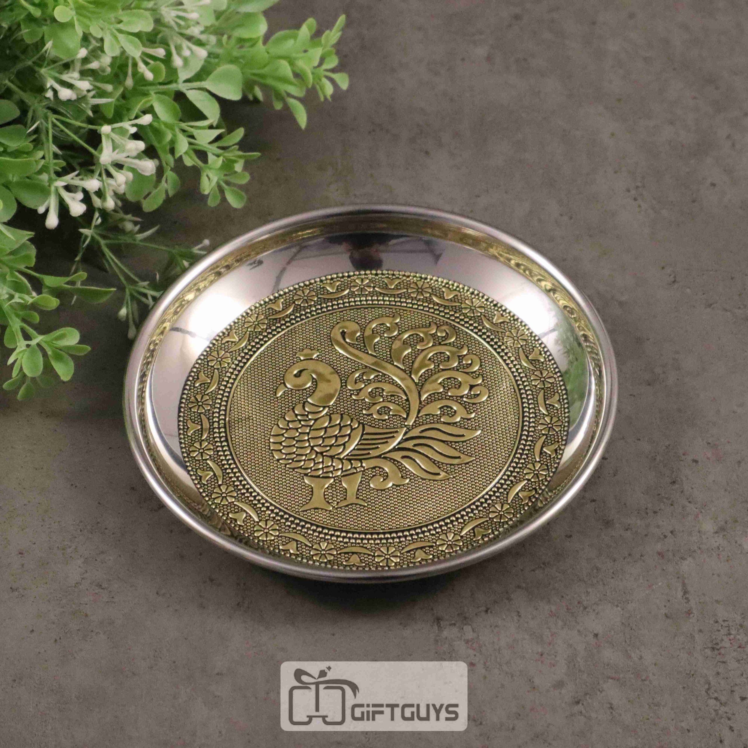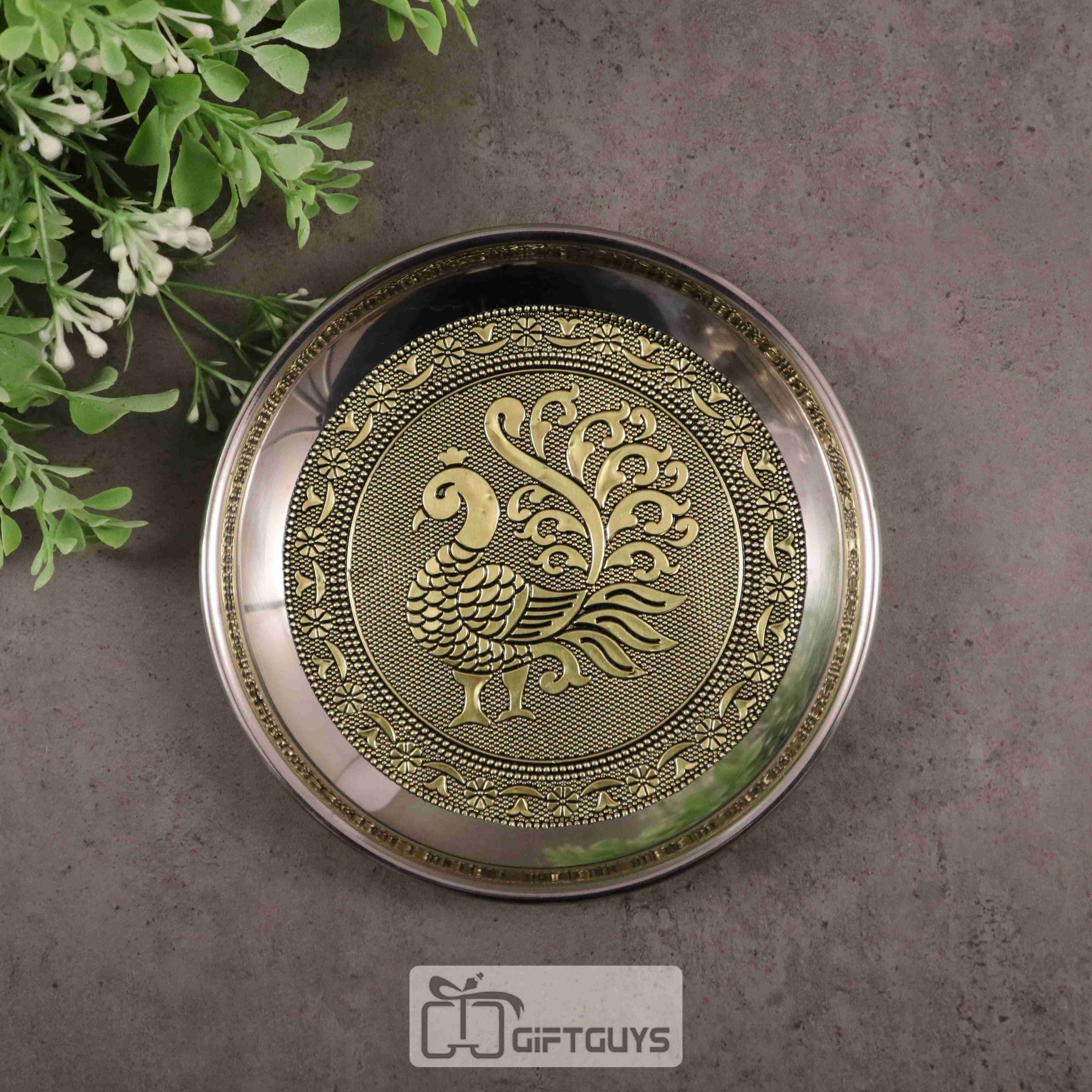 Golden oxidised Peacock designed steel box 6 inch