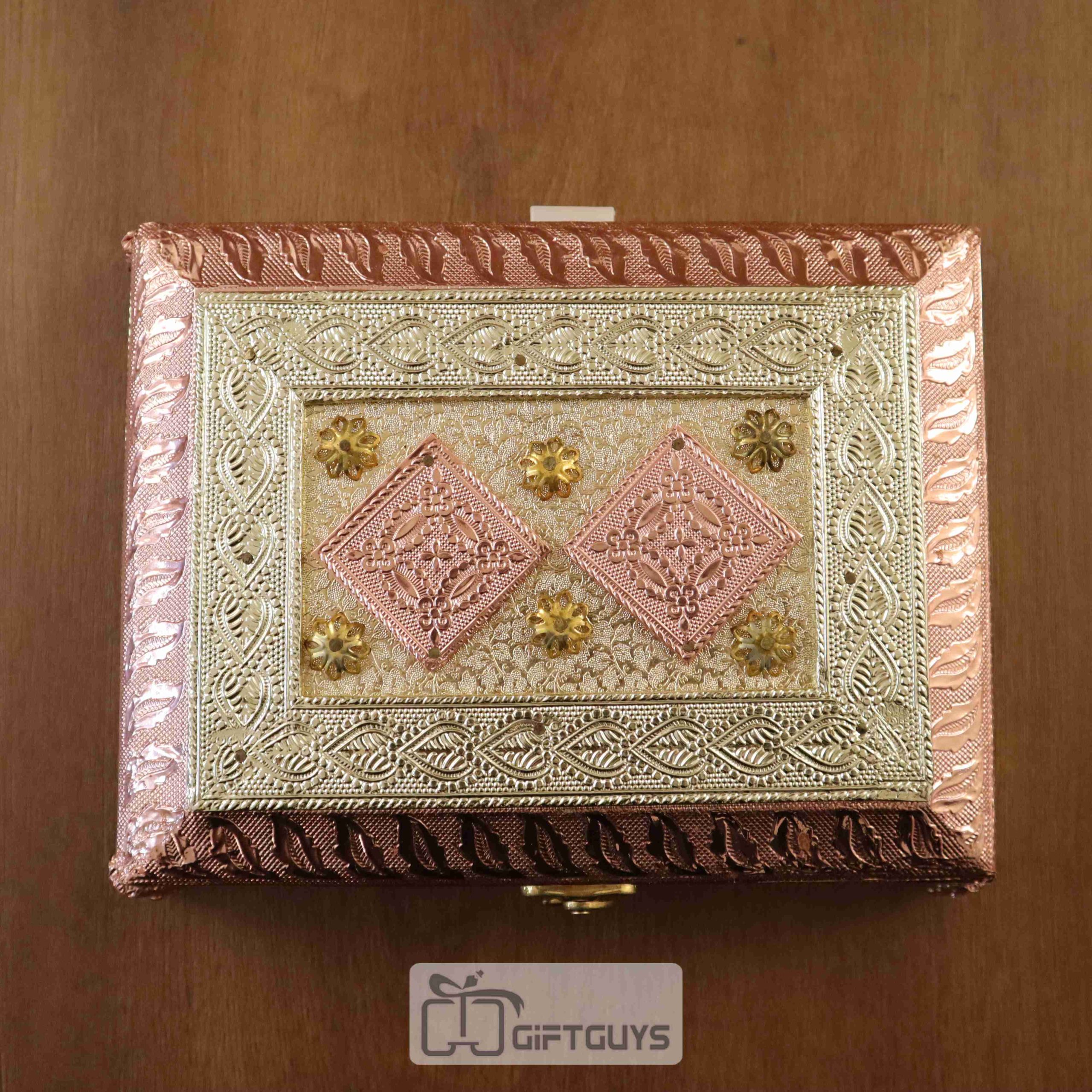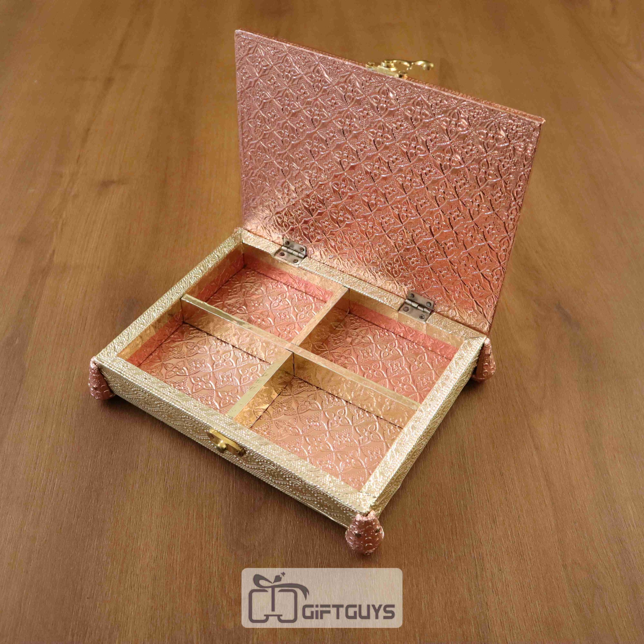 Embossed Rose Gold Dry Fruit Box with 4 Partitions & Legs – Decorative Gifting Box