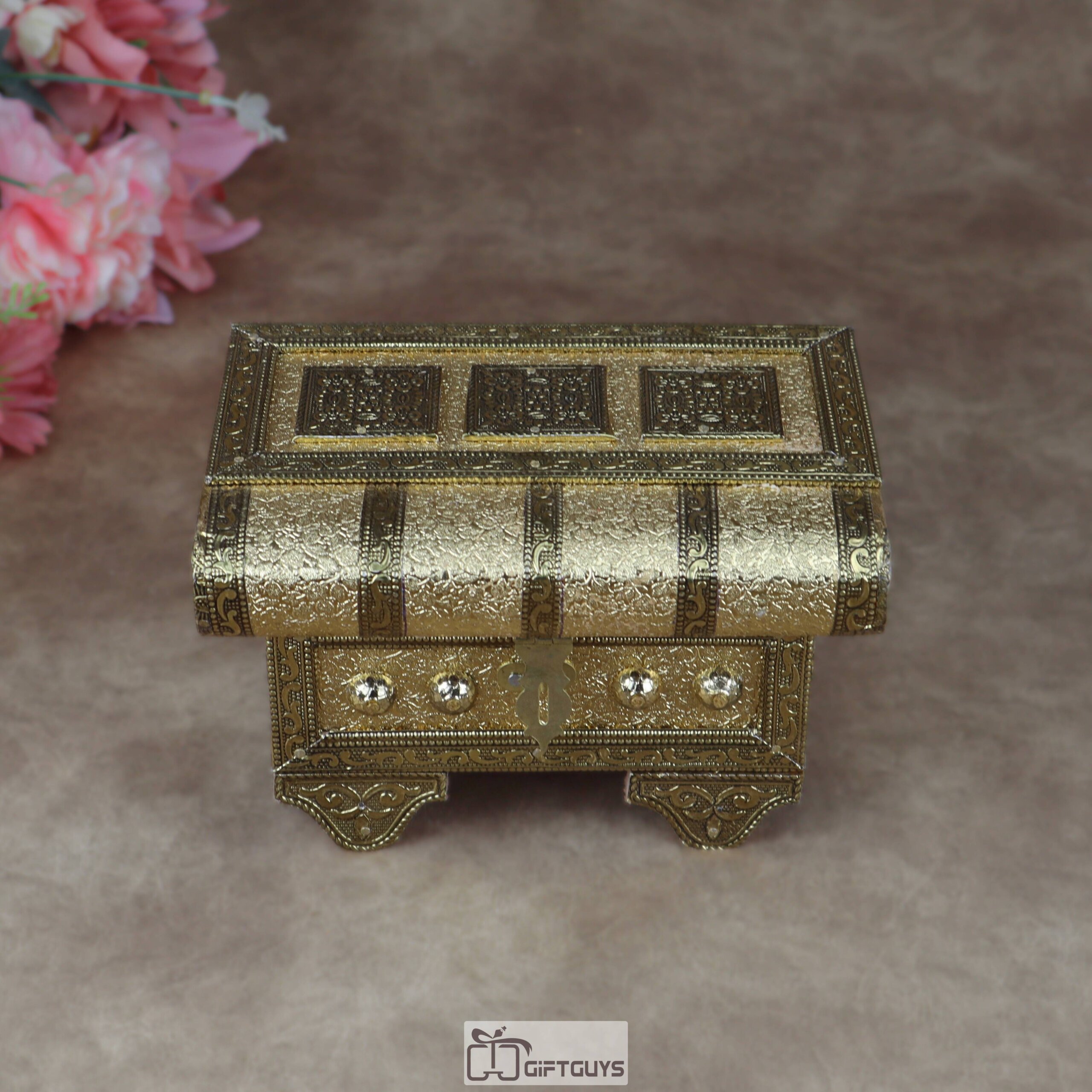 ✨ Regal Craftsmanship: Features intricate golden oxidized embossing with a classic “Sandook” (trunk) silhouette, adding a touch of royalty to your vanity.