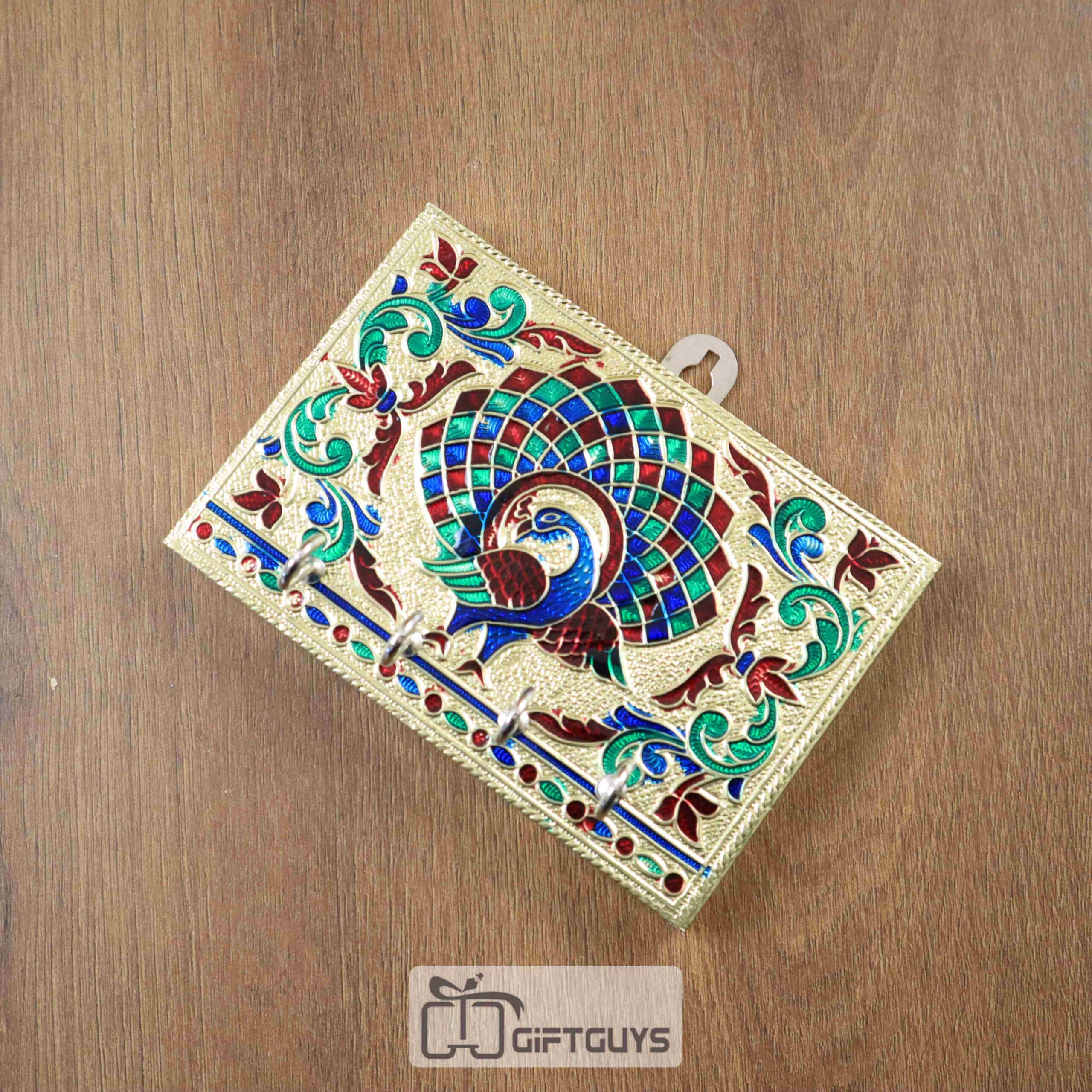 A Key Hanger with a Meenakari Peacock Design measuring 5 x 3.5 inches would be a beautiful and practical addition to your home decor.