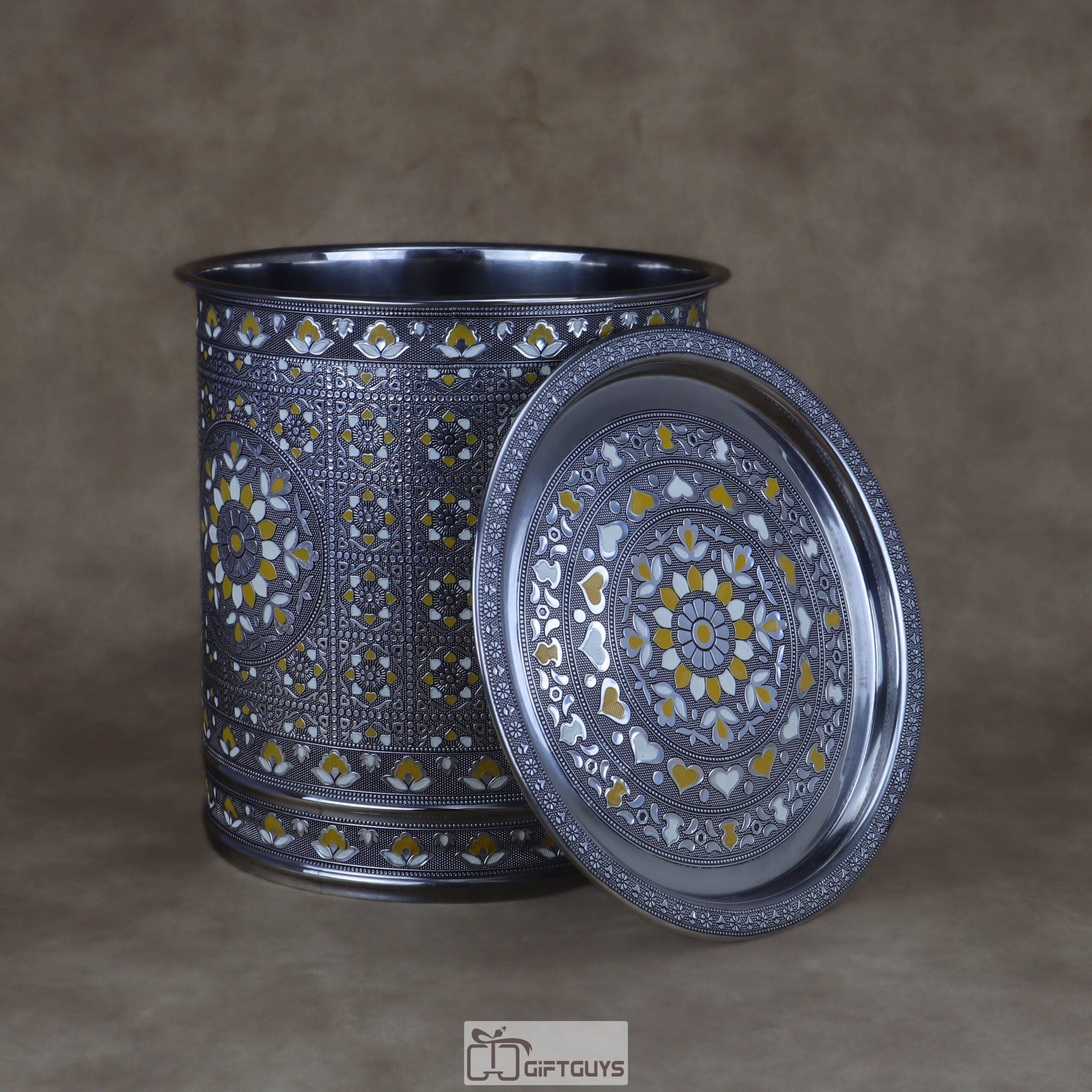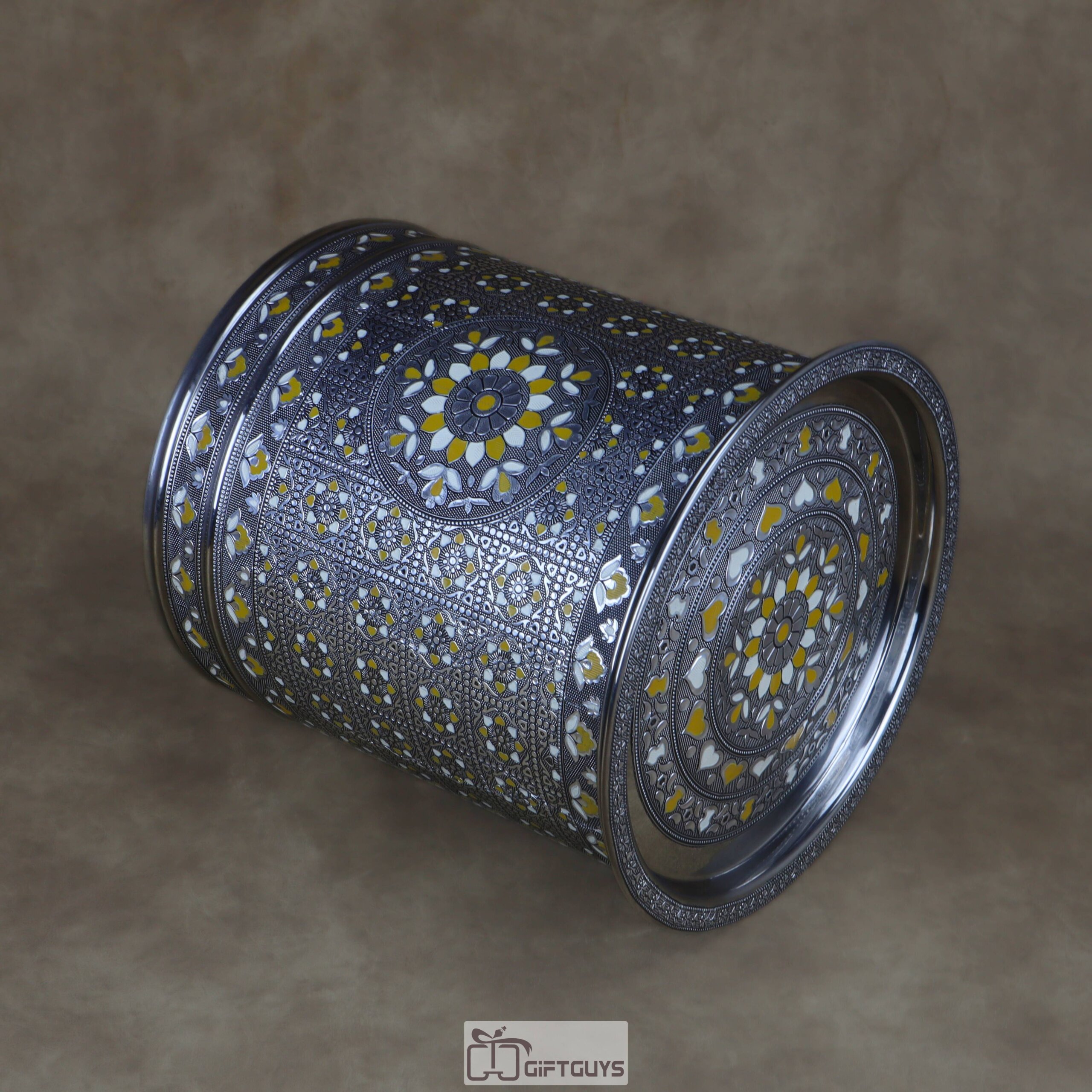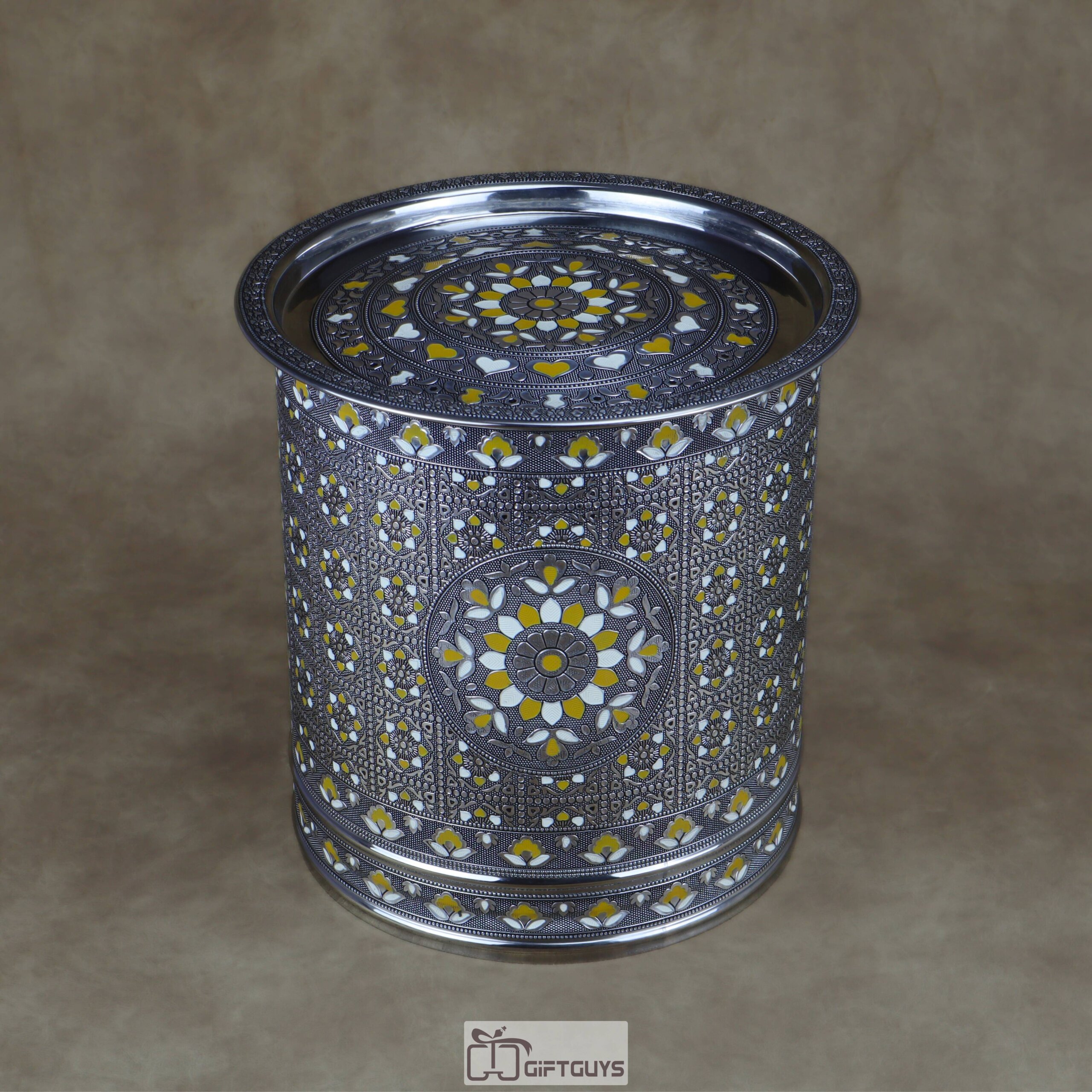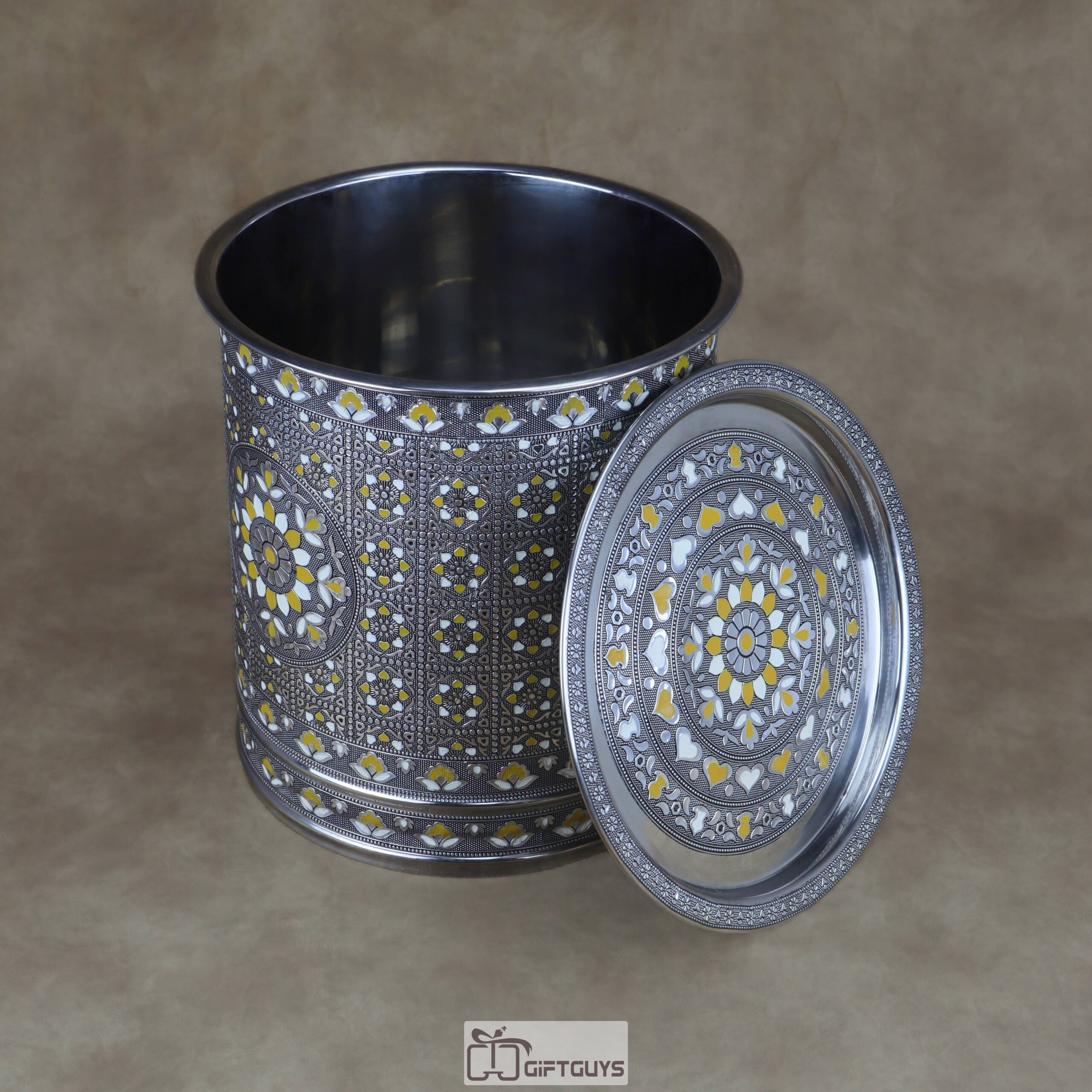 💛 Large Meenakari Steel Storage Container (Yellow/White)