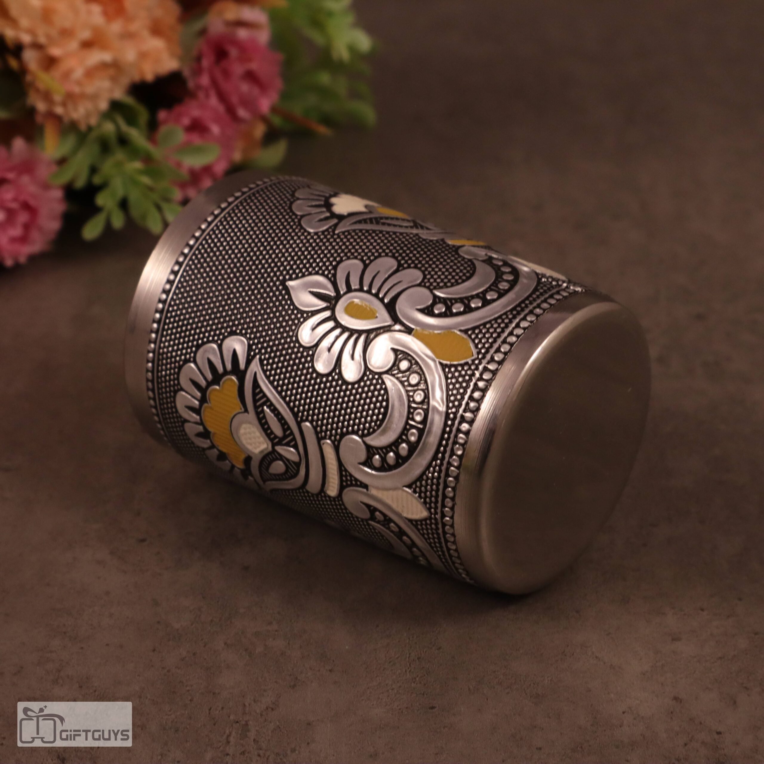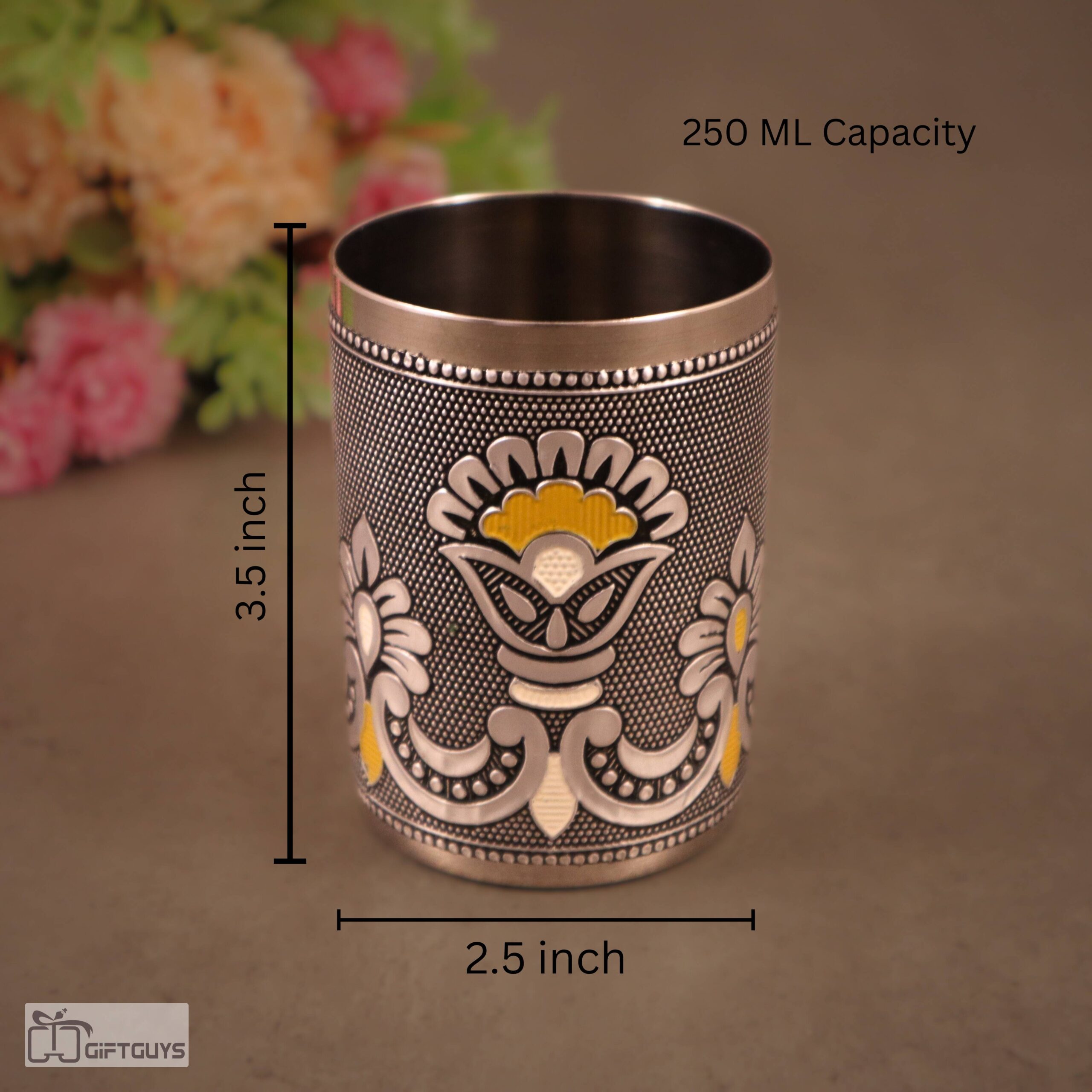 Meenakari Stainless Steel Glass – 250 ml Traditional Floral Design Tumblers for Kitchen & Gifting