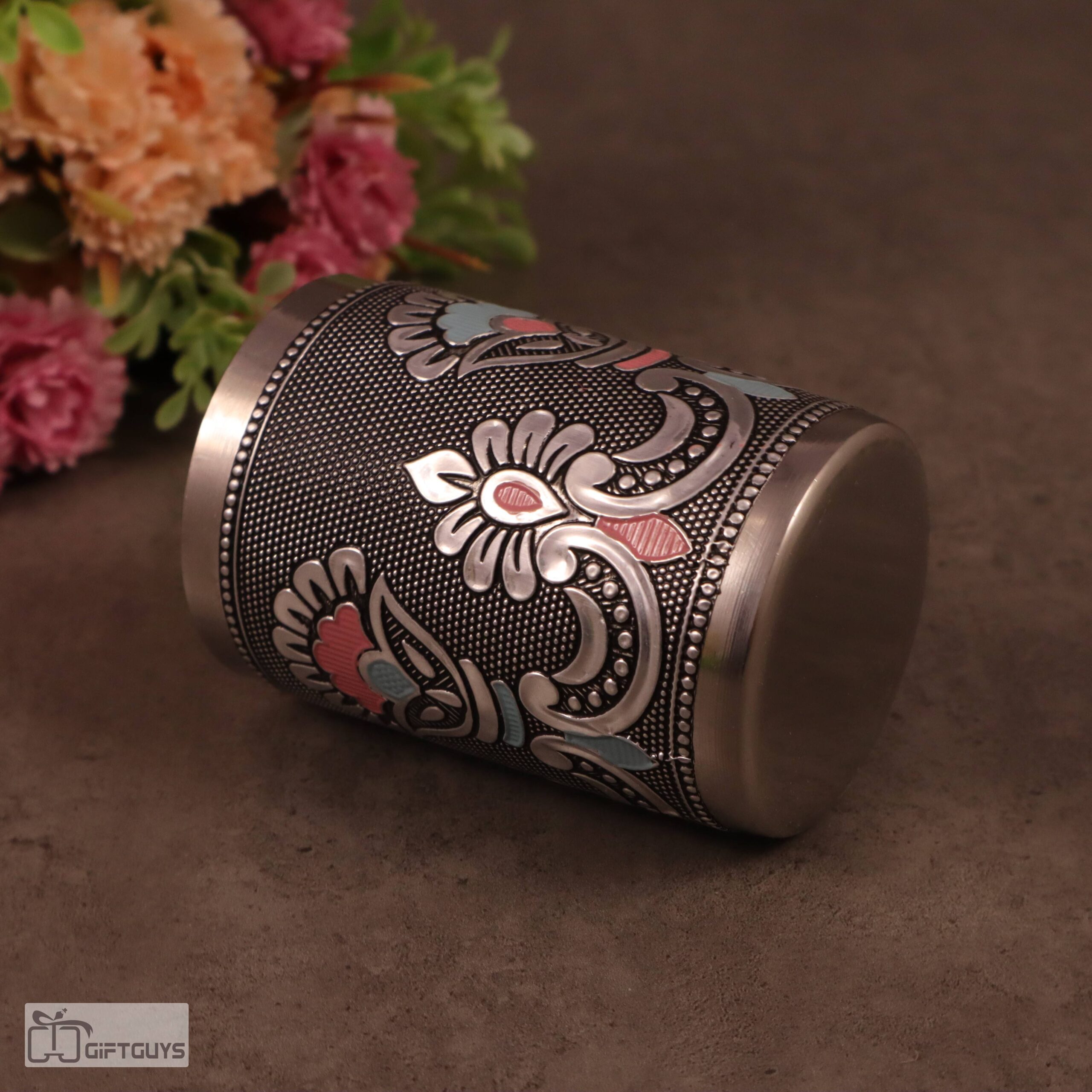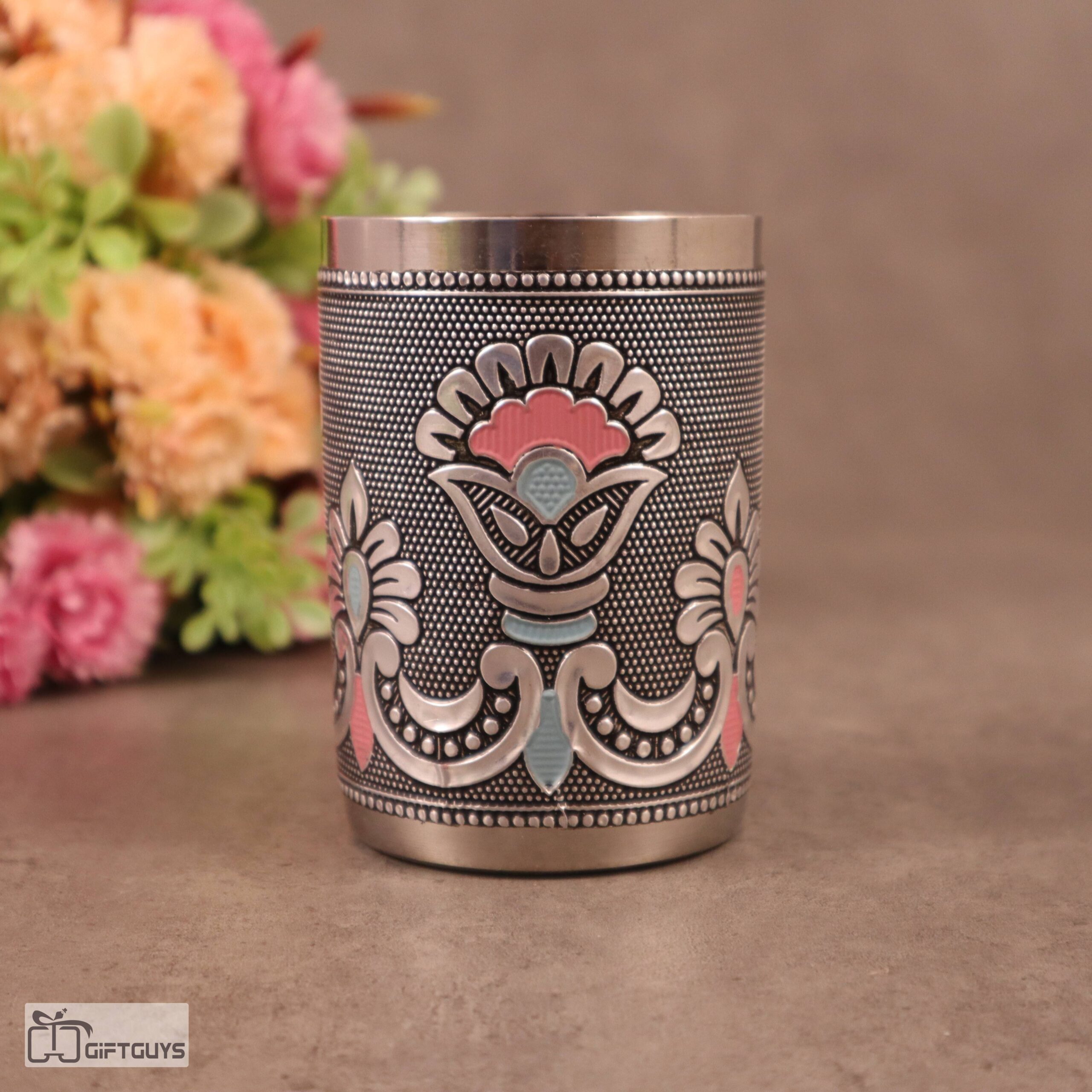 Meenakari Stainless Steel Glasses – 250 ml Traditional Floral Design Tumblers for Kitchen & Gifting