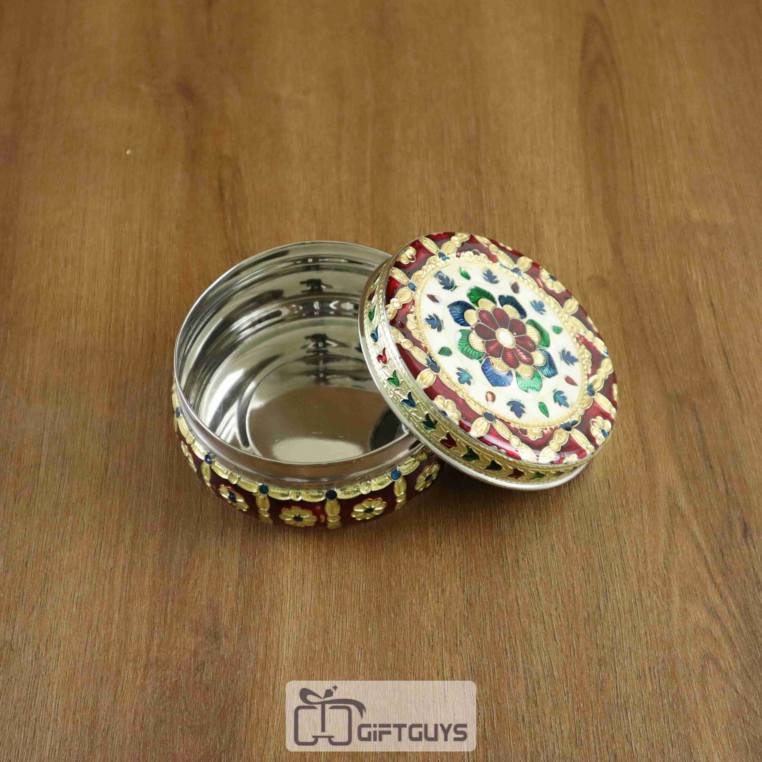 Royal Red Meenakari Steel Box – 4 Inch Handcrafted Heritage Storage