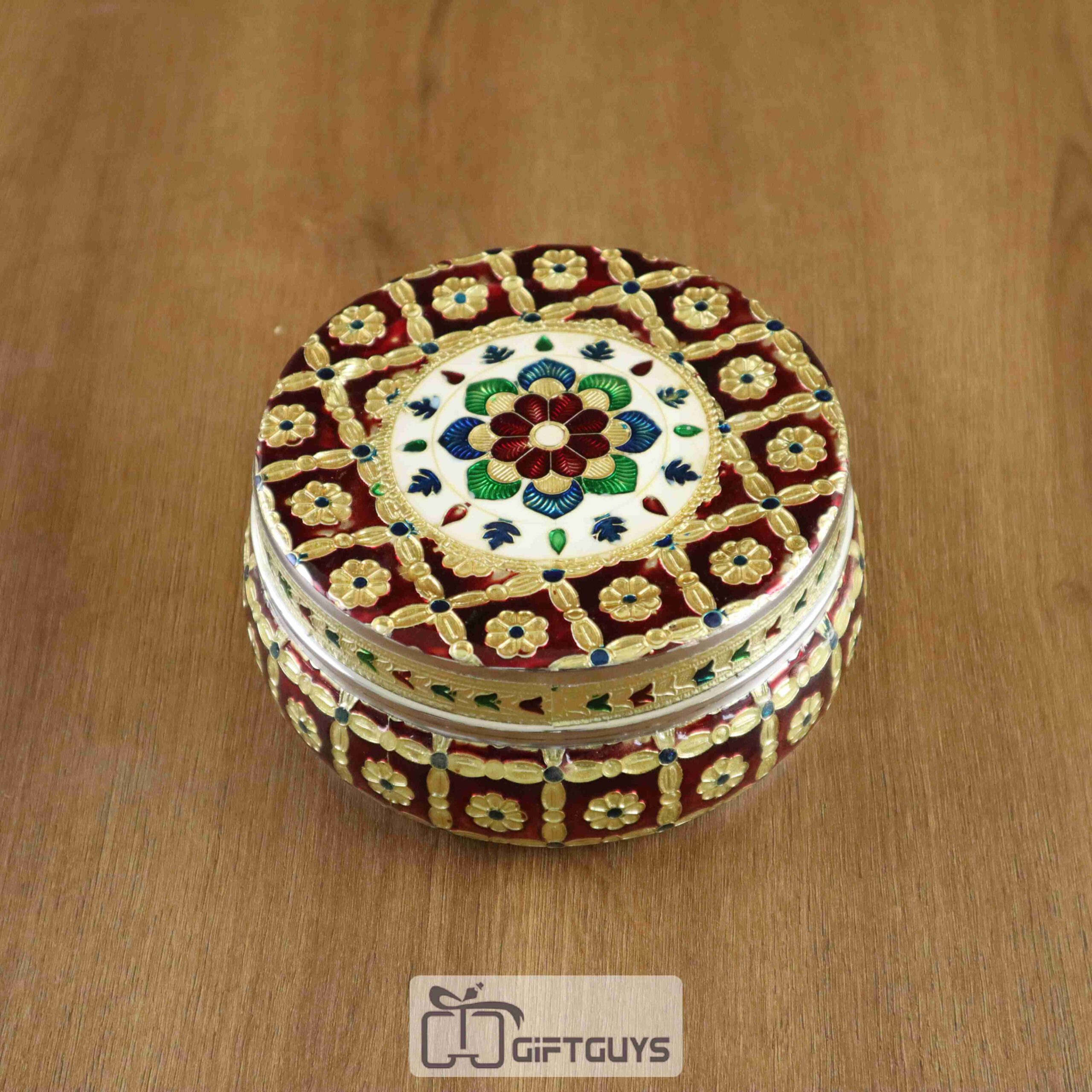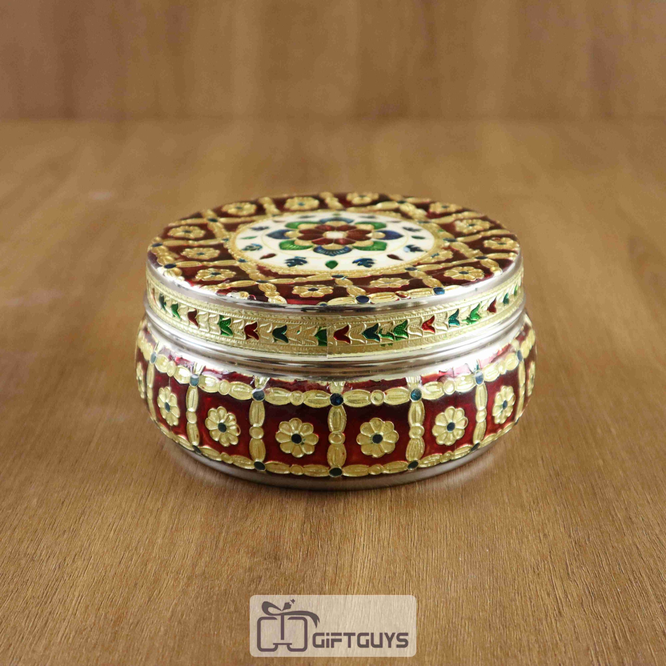 Royal Red Meenakari Steel Box – 5 Inch Handcrafted Heritage Storage