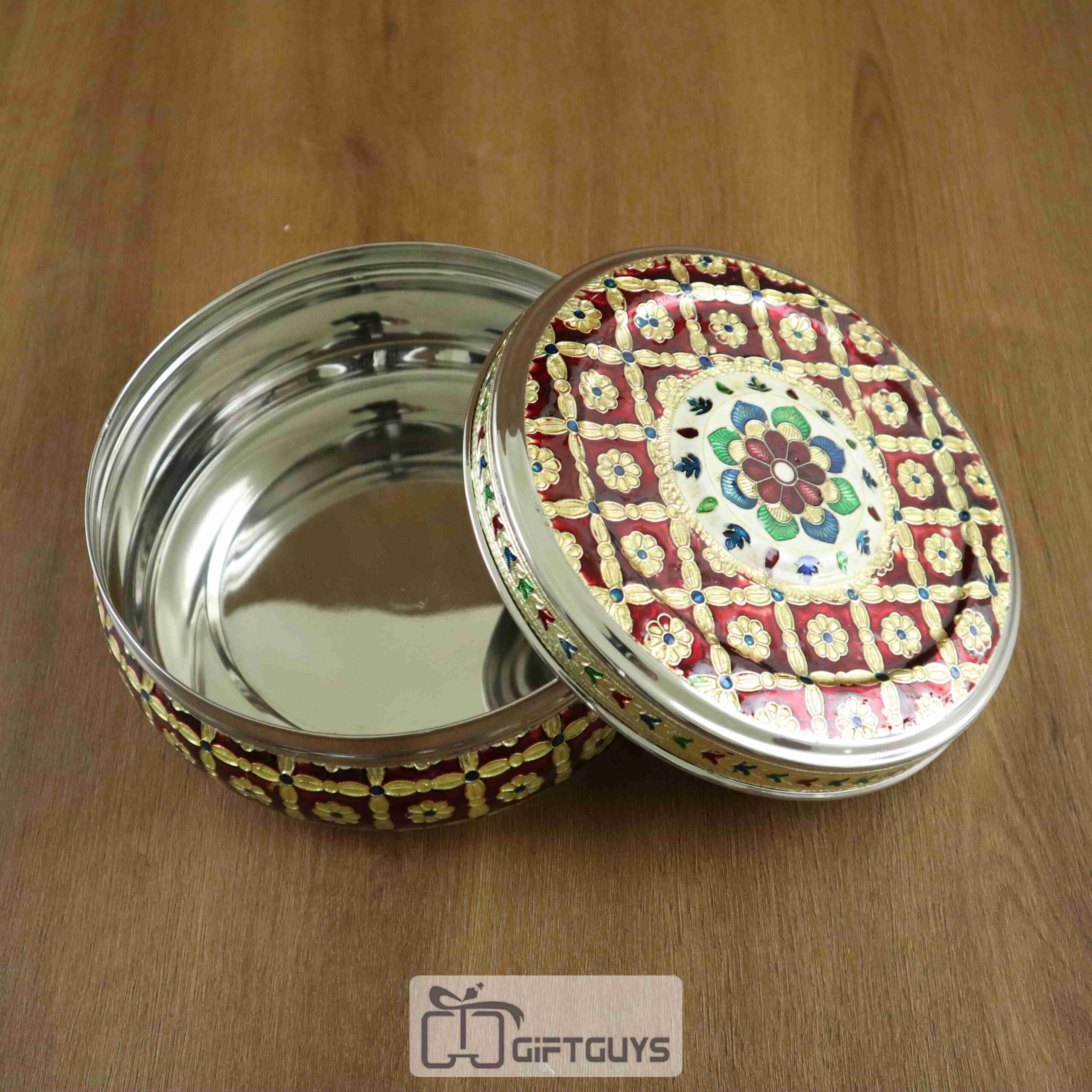 Royal Red Meenakari Steel Box – 6.5 Inch Handcrafted Heritage Storage