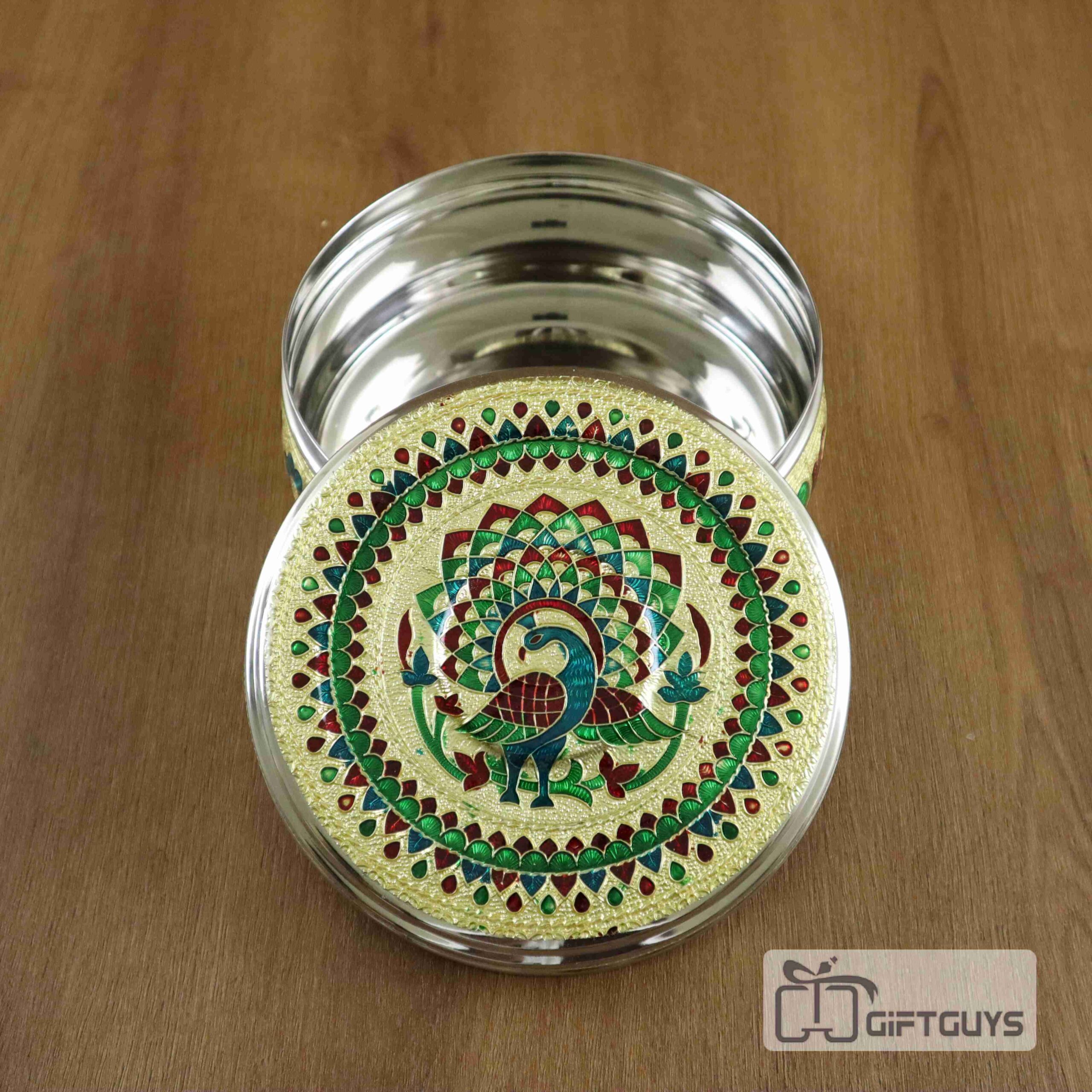 Peacock Design Meenakari Steel Box – 6 Inch Decorative Storage Container for Gifts & Home Use