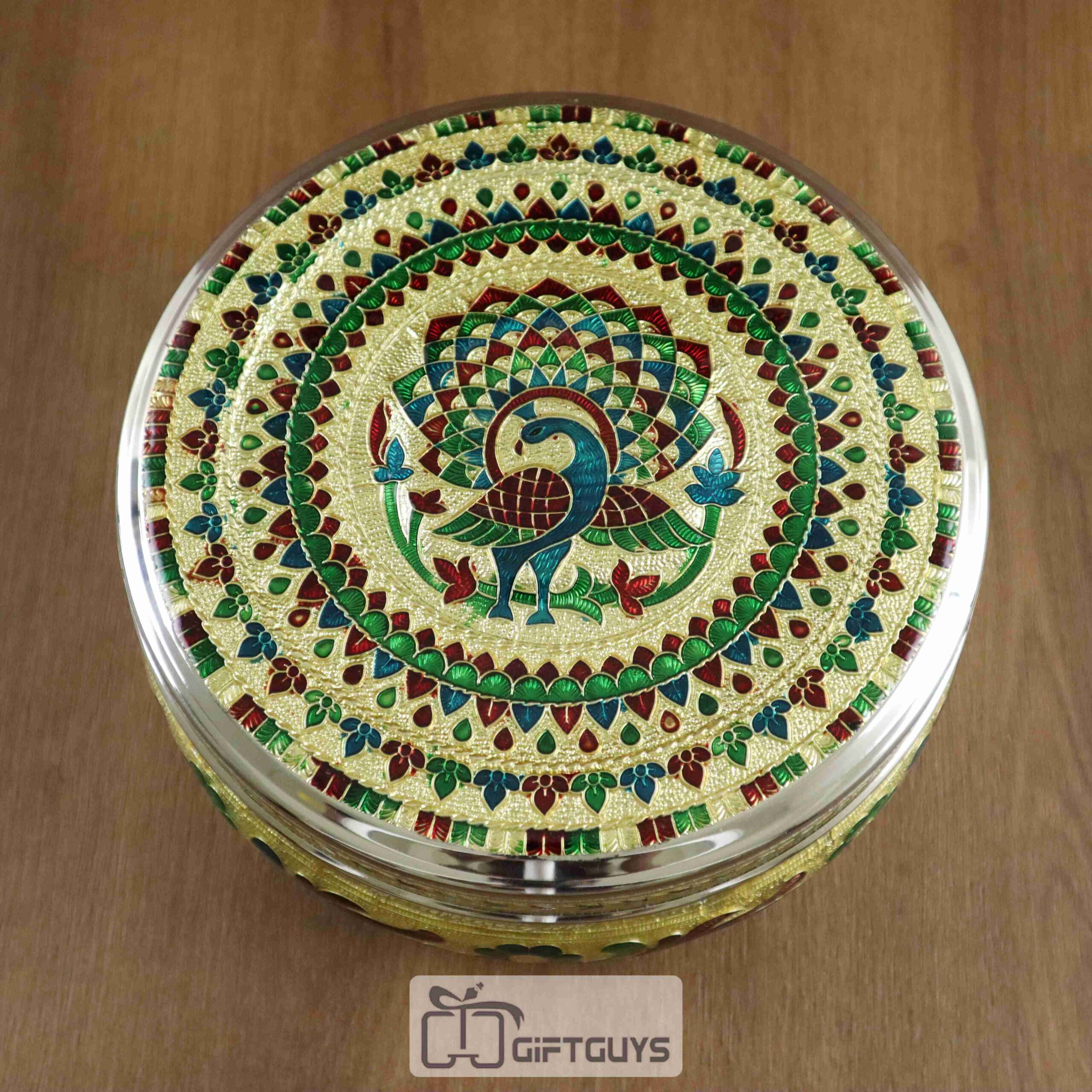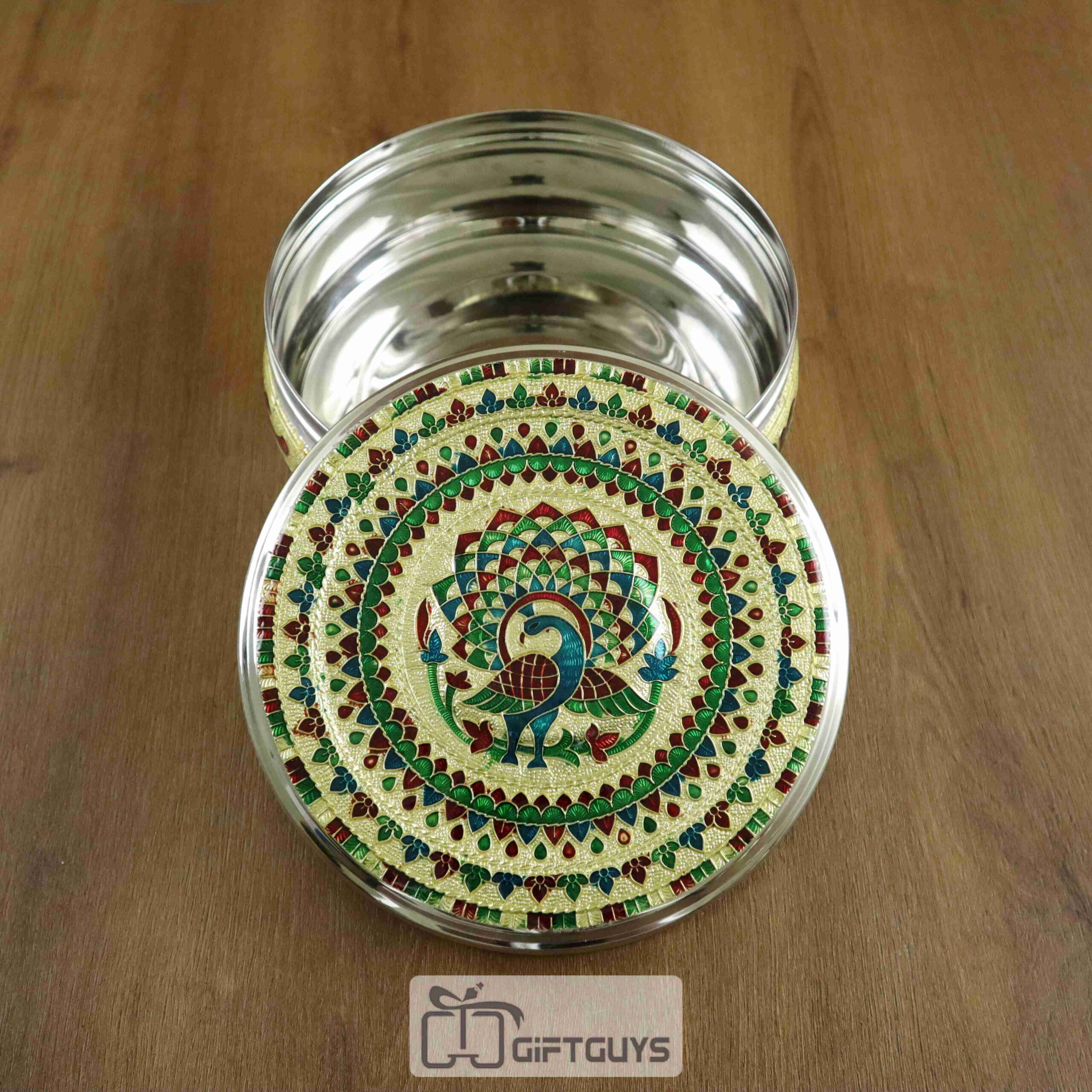 Peacock Design Meenakari Steel Box – 7 Inch Decorative Storage Container for Gifts & Home Use