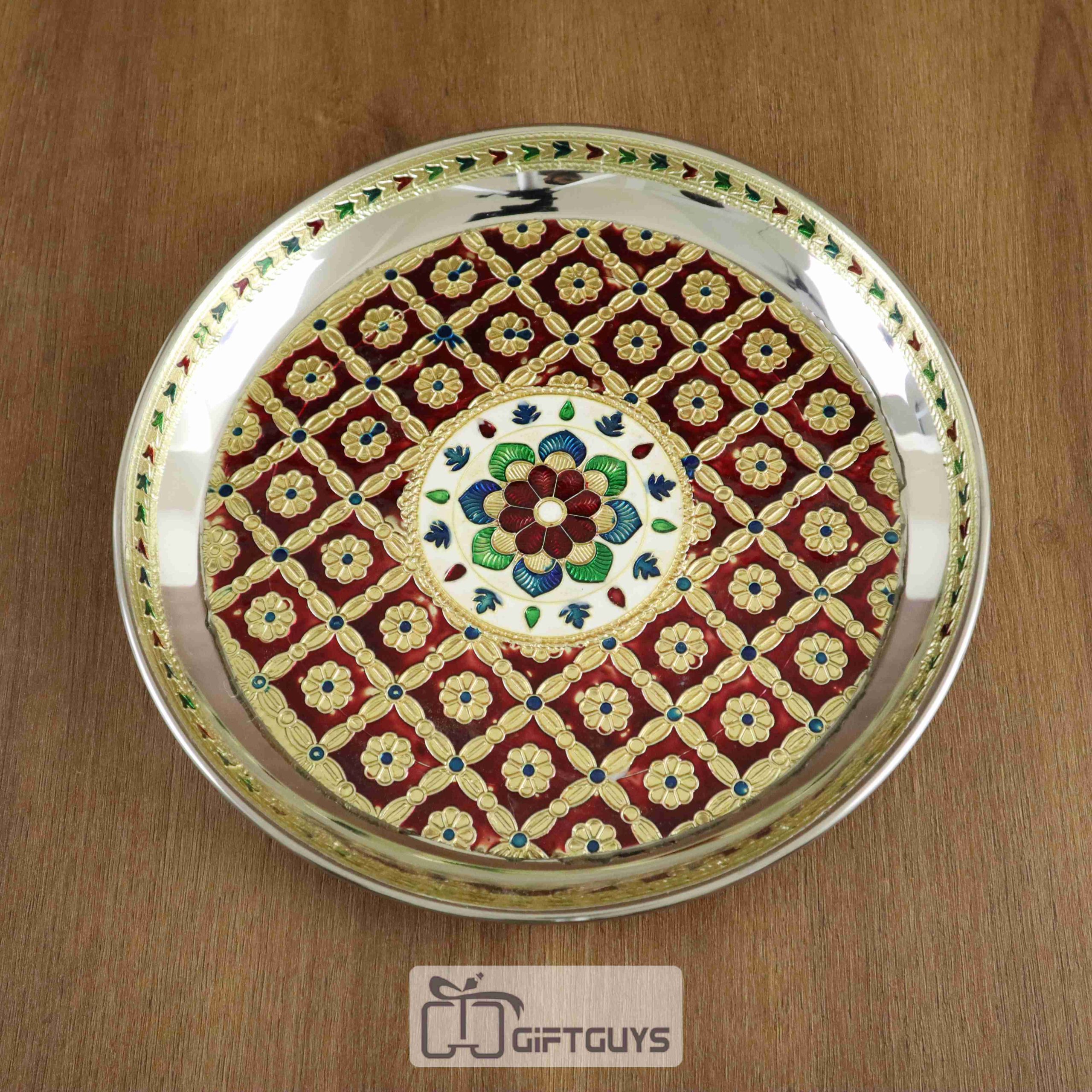 Meenakari Pooja Thali – 9 Inch Handcrafted Steel Plate with Traditional Floral Design