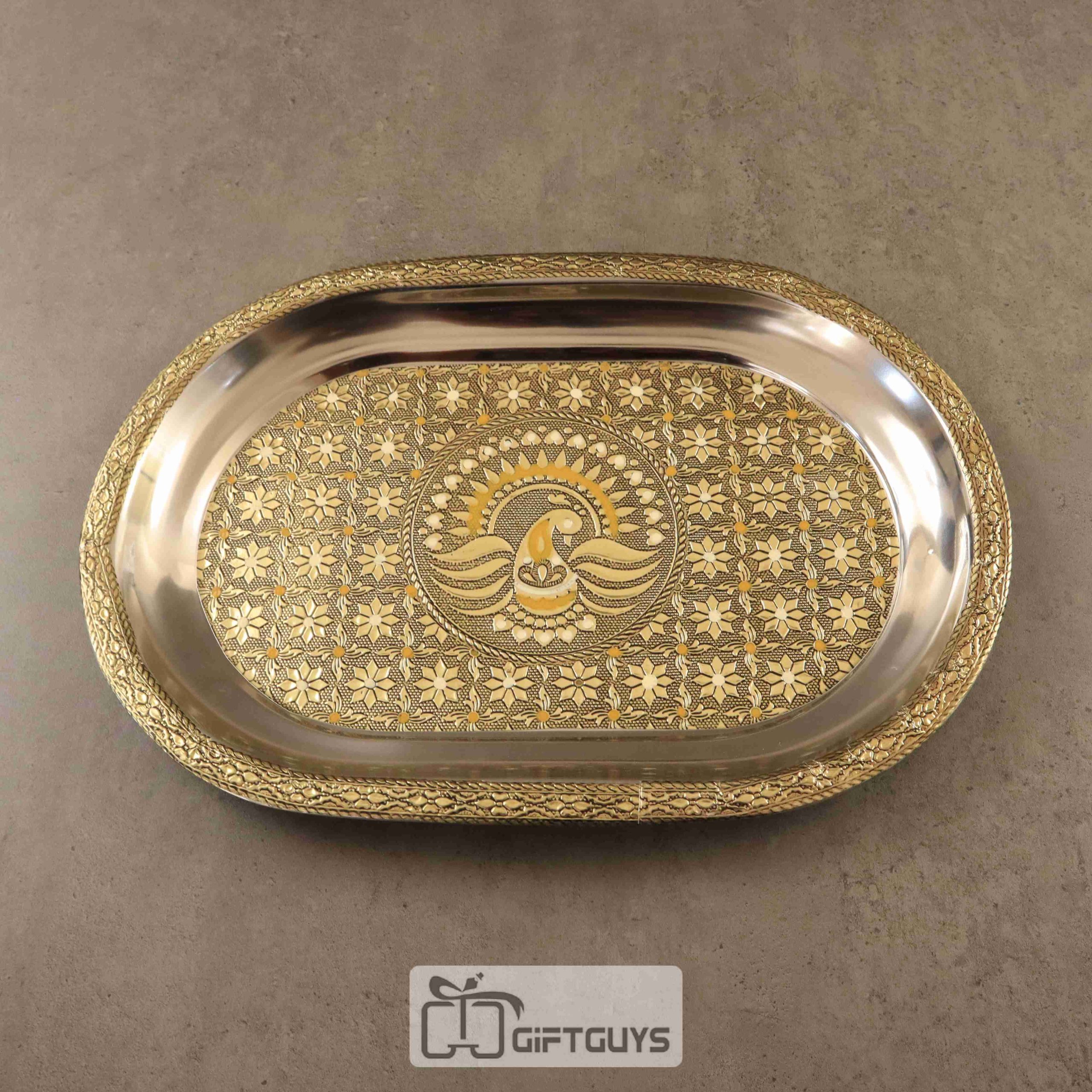 Oxidised Meenakari SS Tray 12 X 8.5 inch
