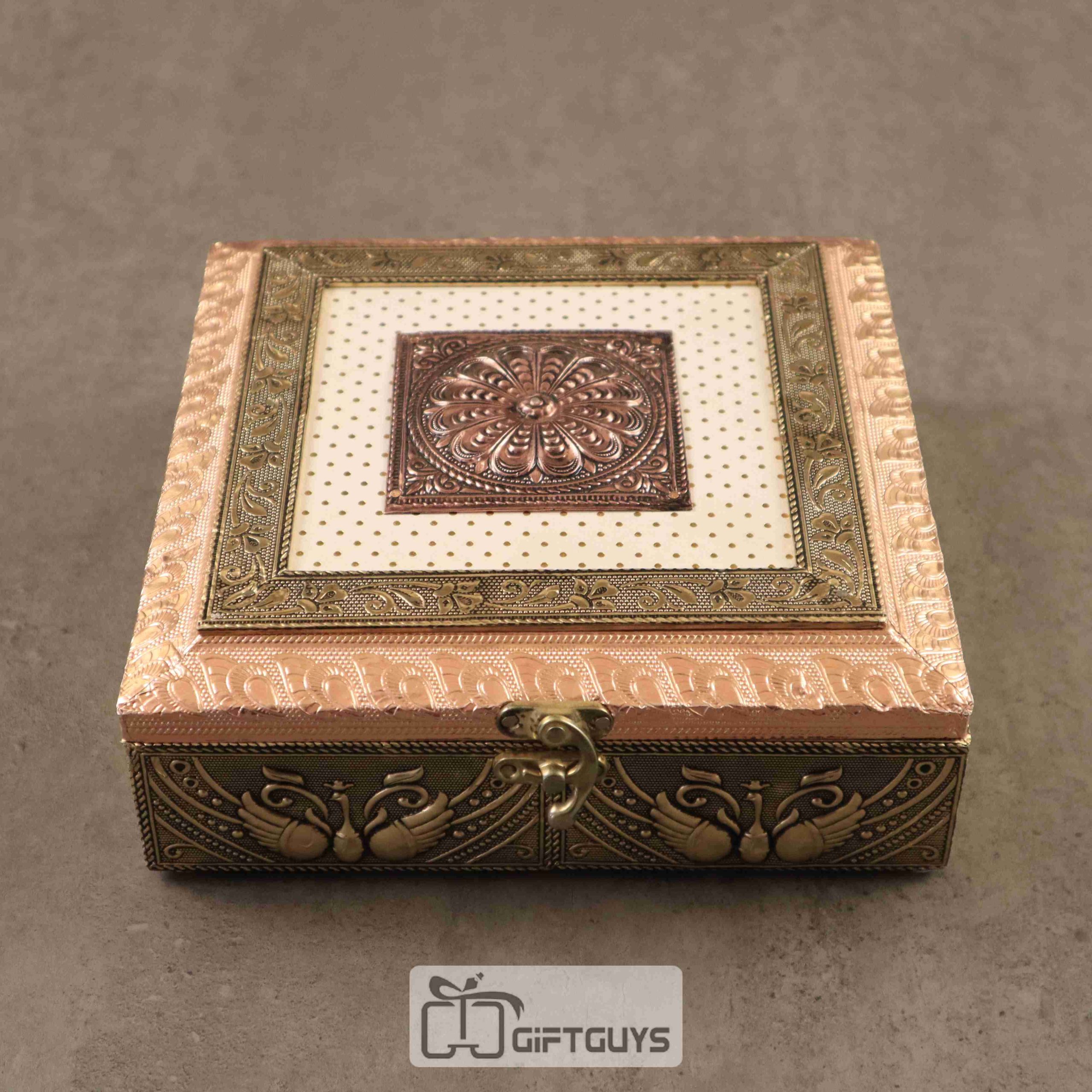 Antique Floral Embossed Dry Fruit Box – Premium Rosegold-Gold Finish