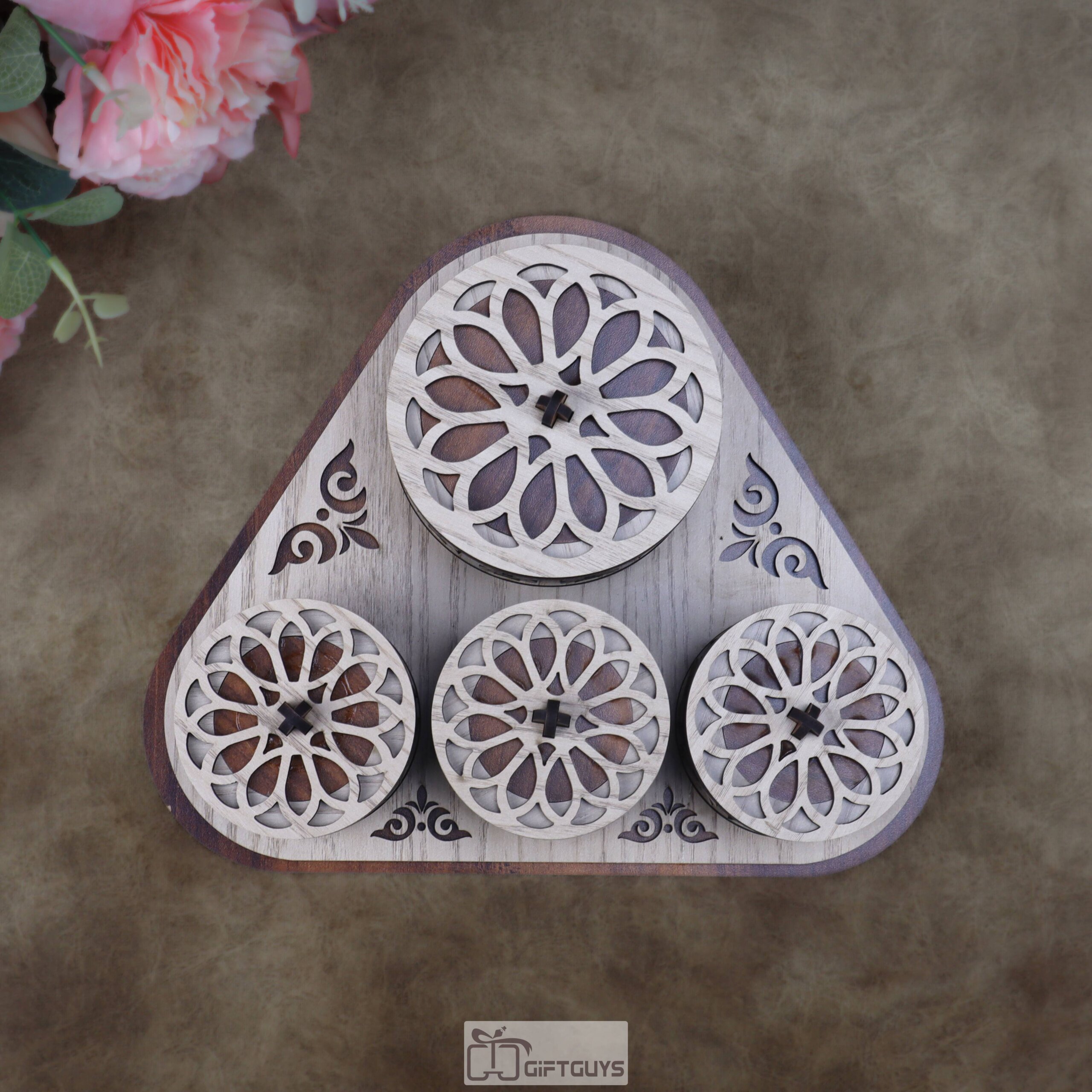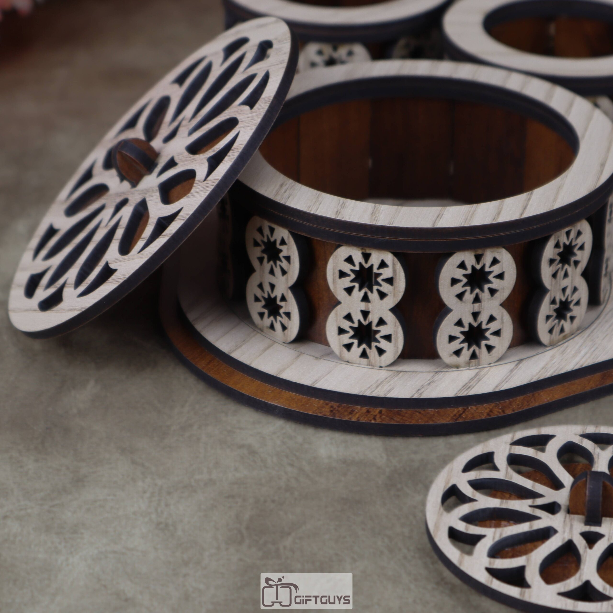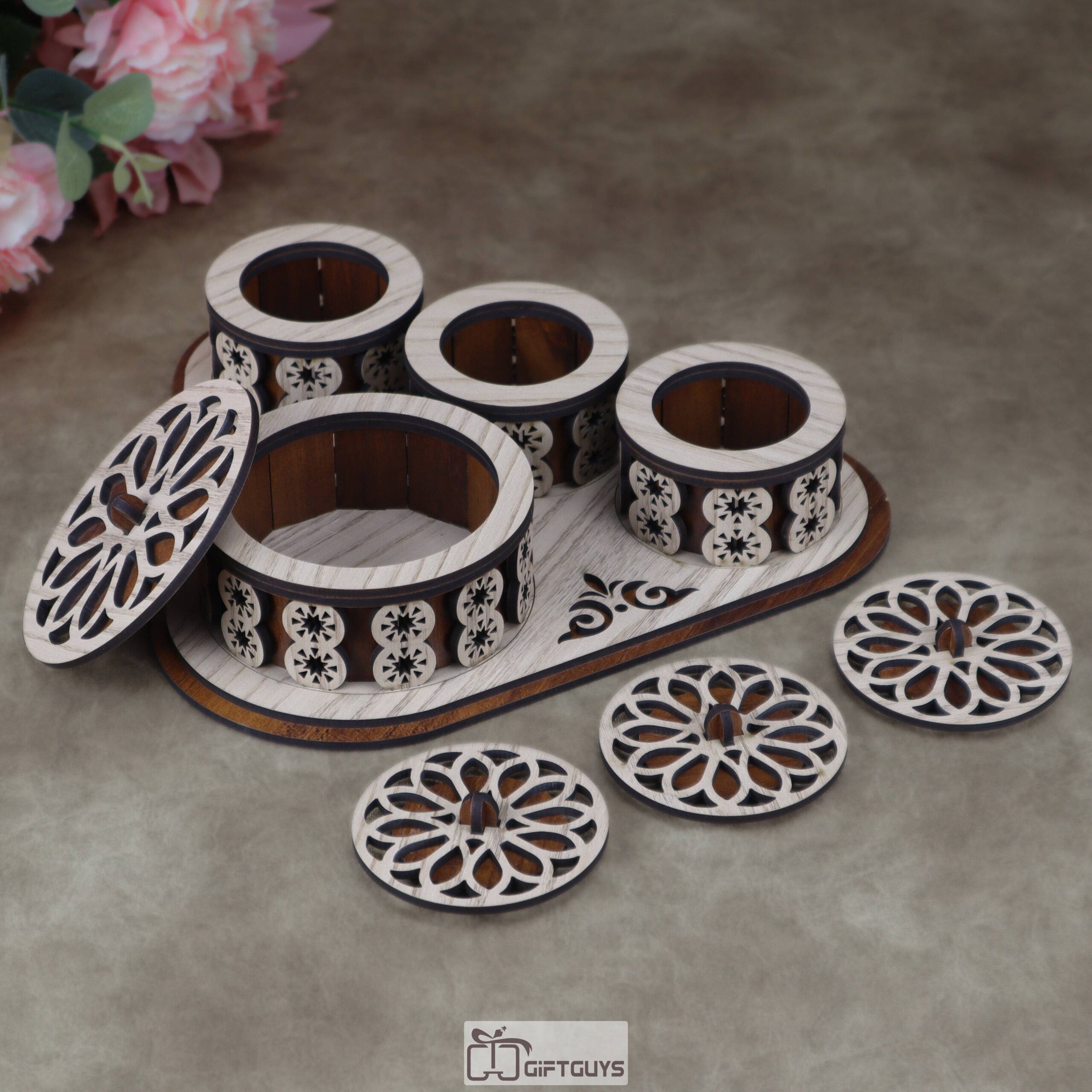 Intricate Laser-Cut Artistry: Features four individual containers adorned with delicate floral filigree and geometric patterns for a truly premium look.