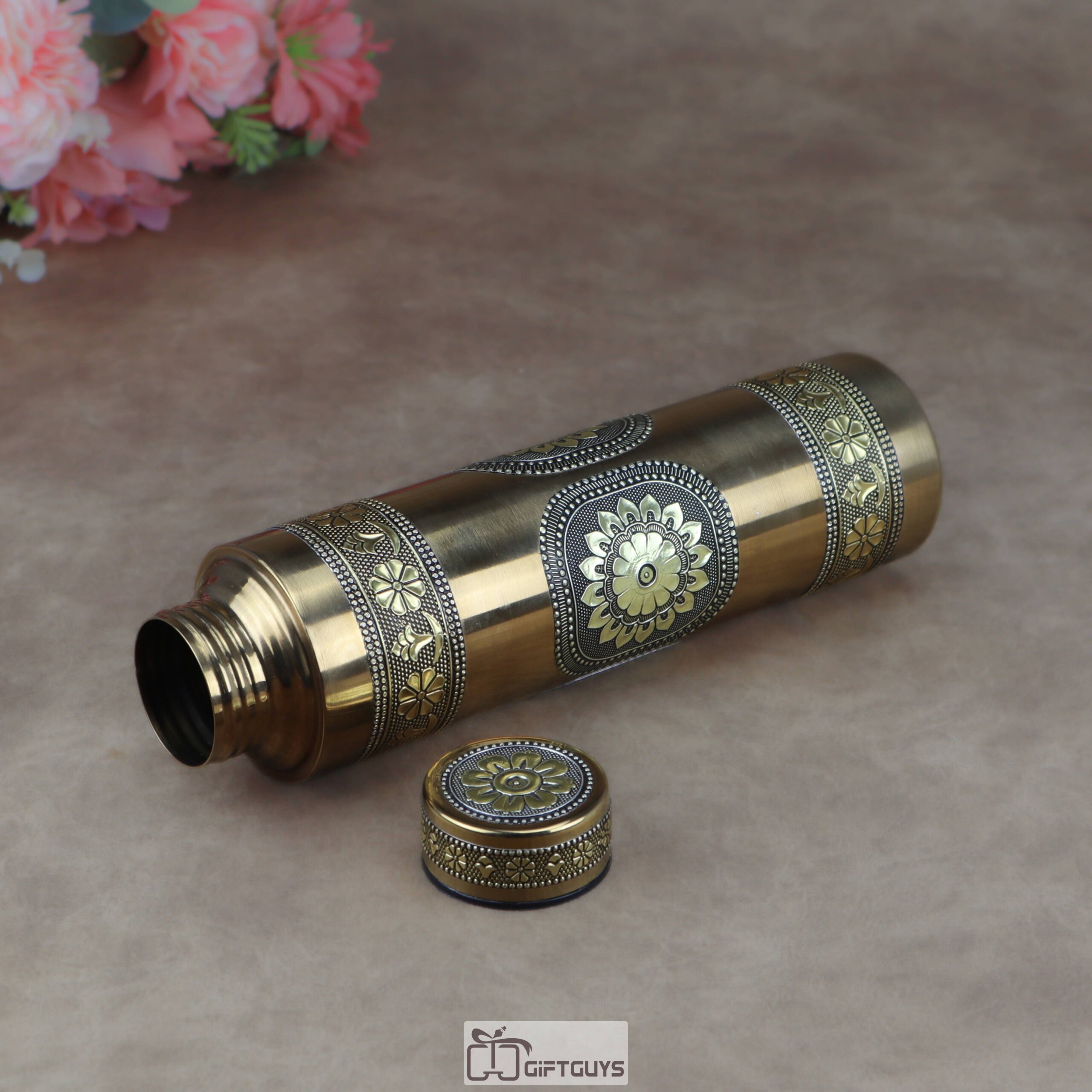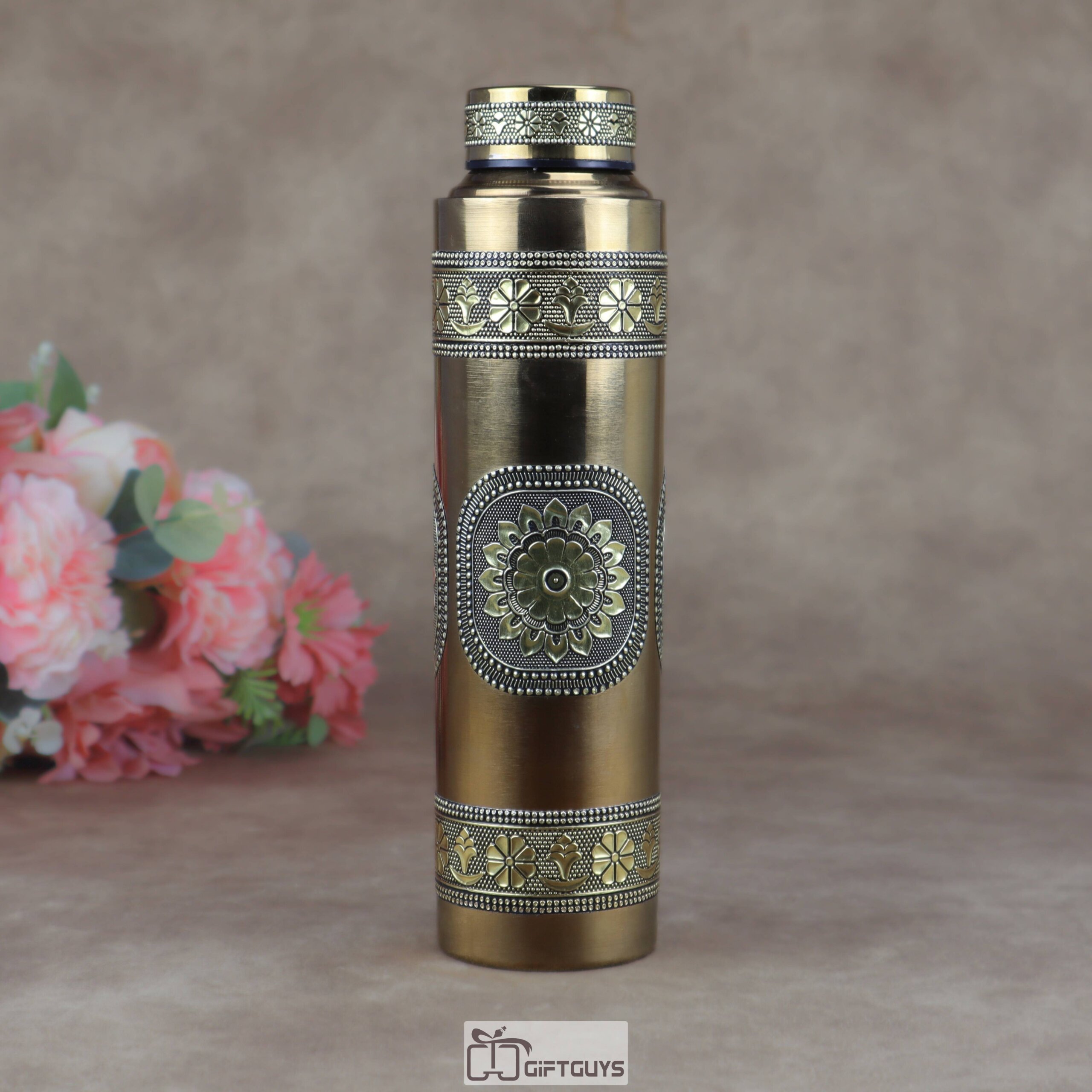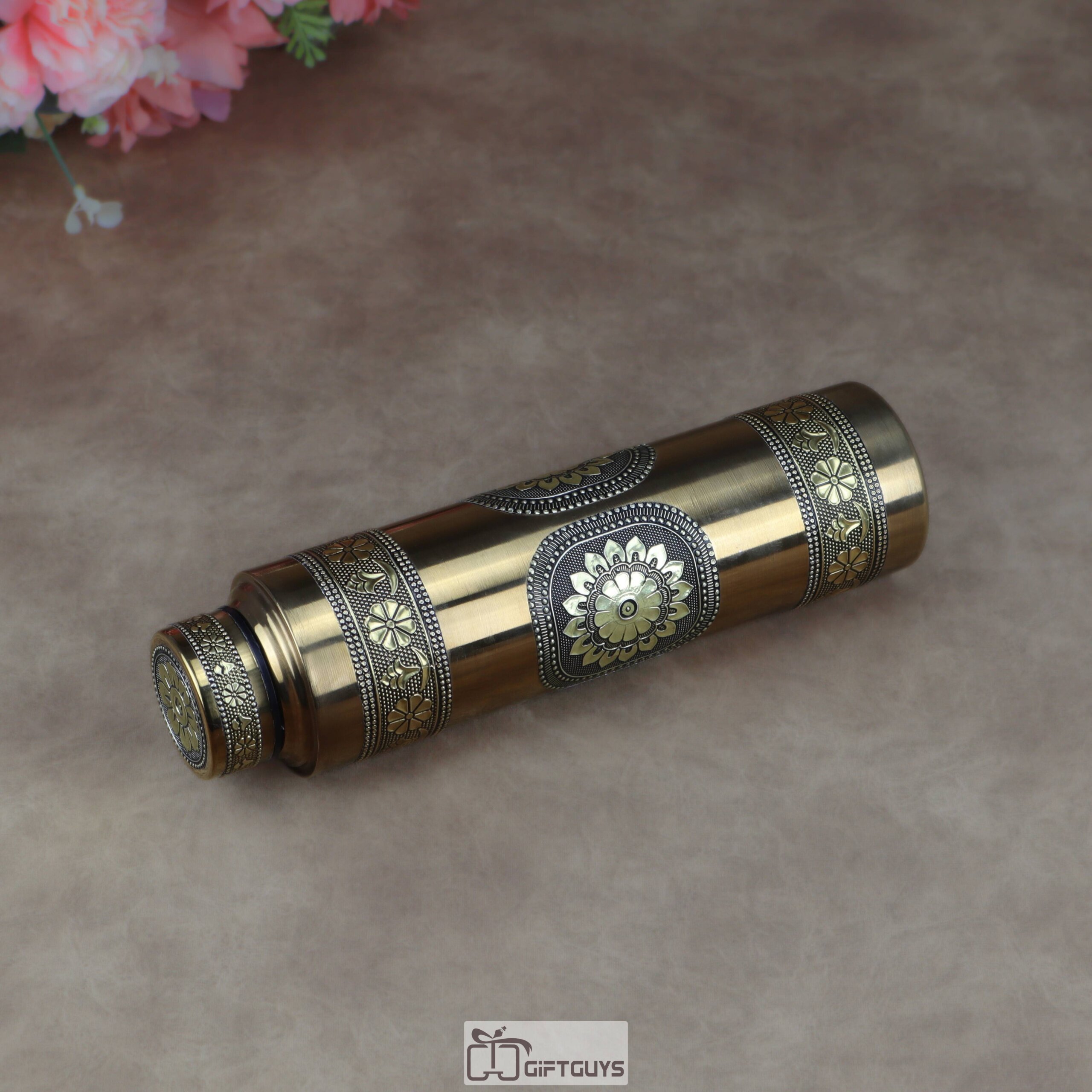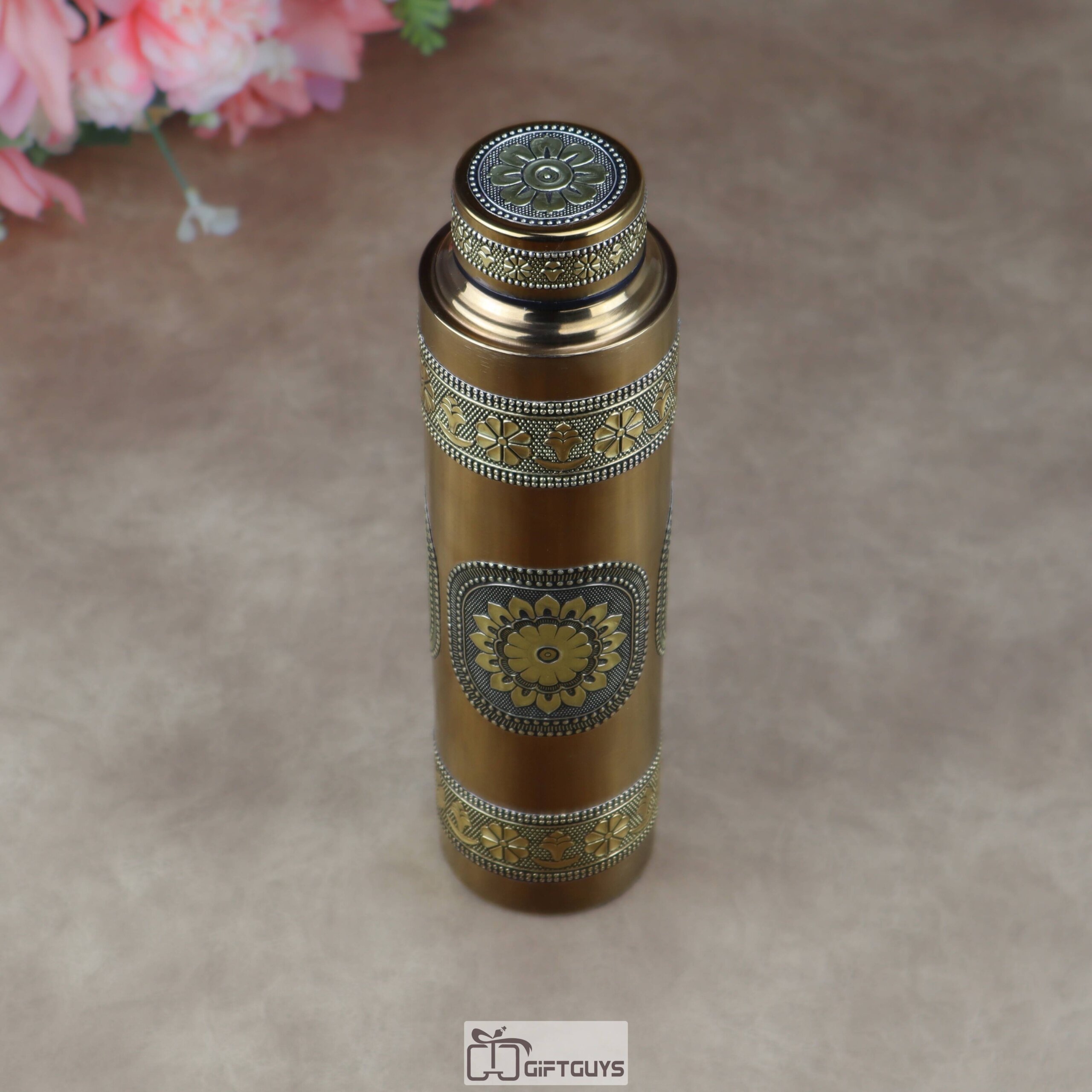 Premium Lightweight Oxidized Gold Steel Bottle – 900ml Leak-Proof Single Wall Designer Water Bottle for Home & Office