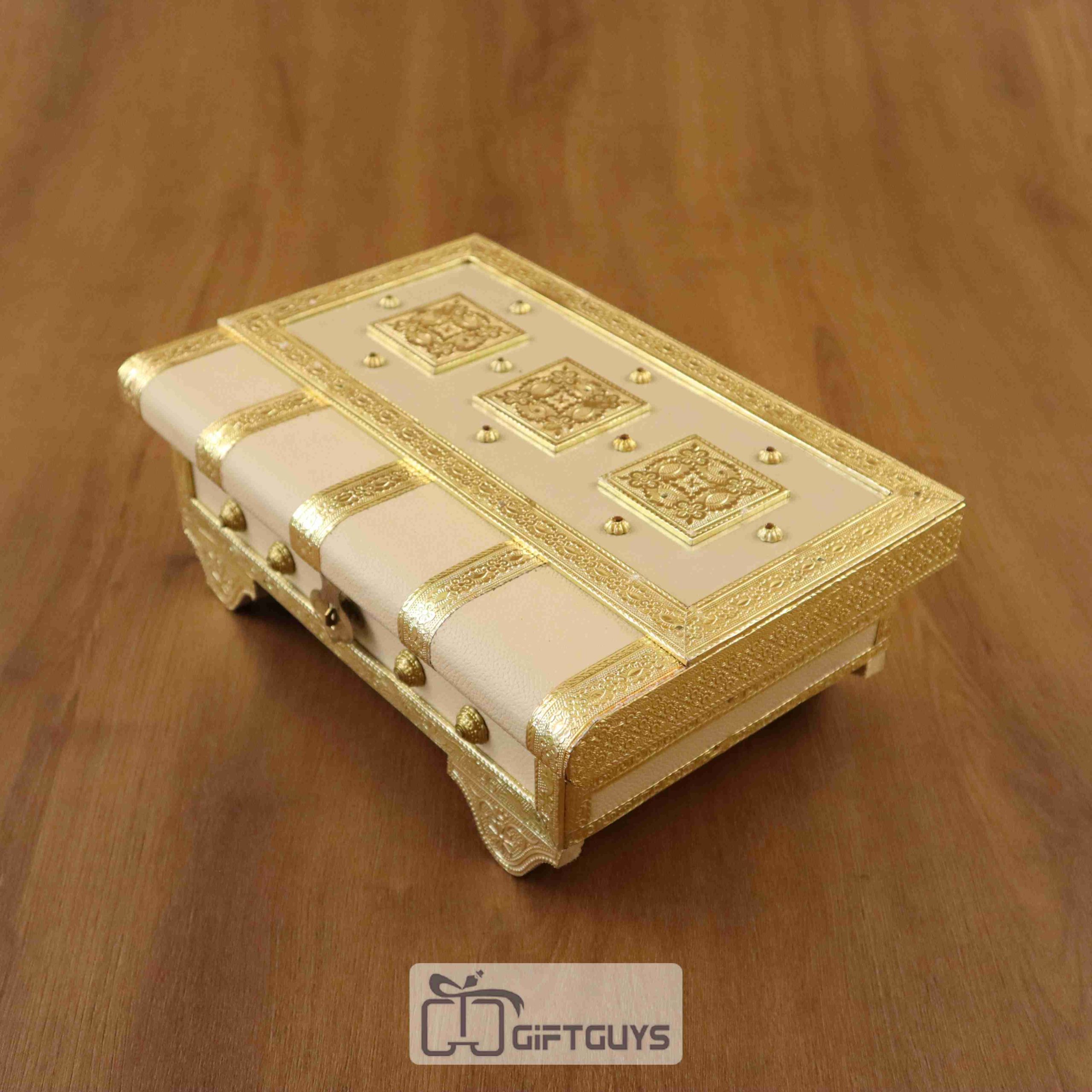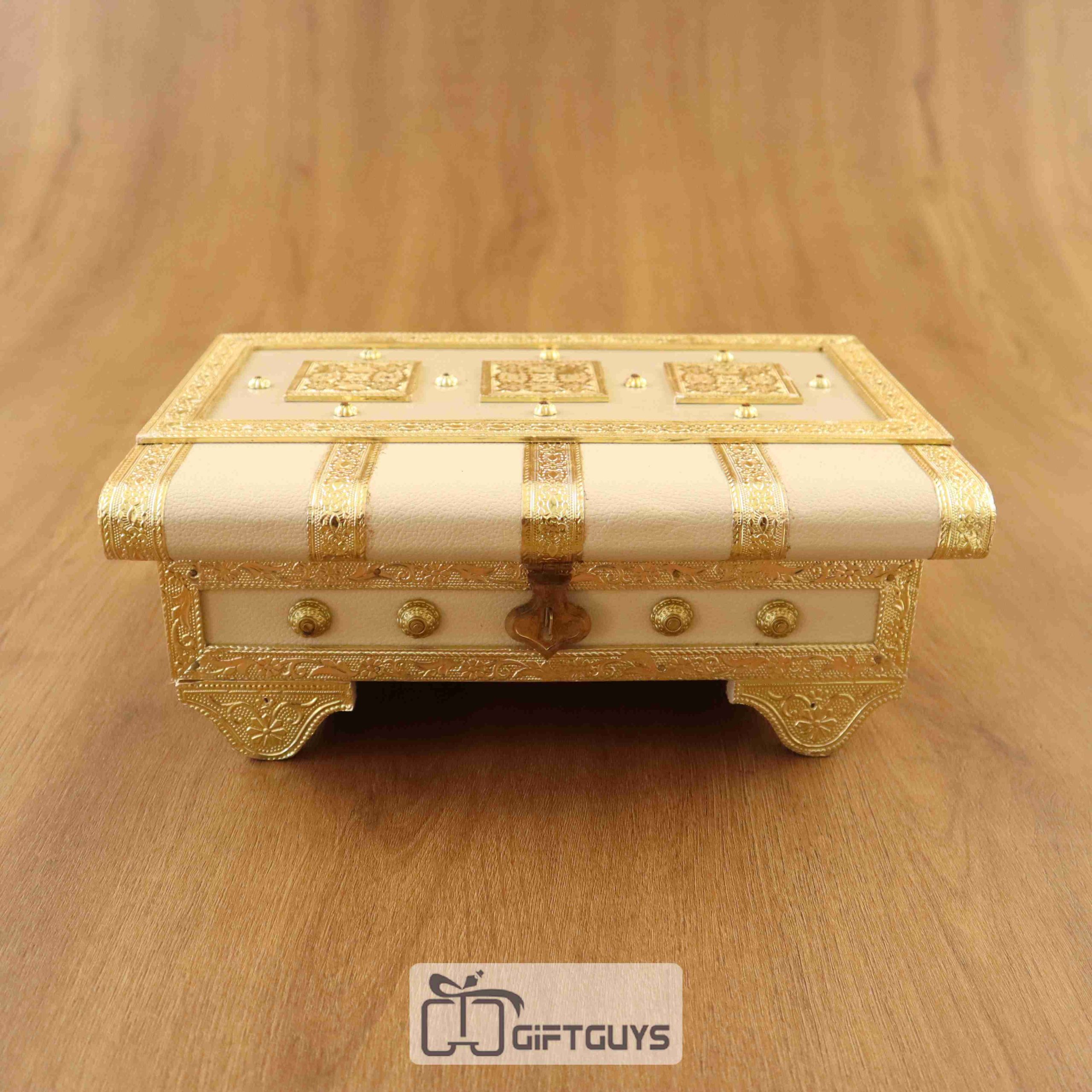 🪙 Traditional Appeal: Inspired by classic treasure chests, this wooden sandook features embossed golden patterns for a regal look.