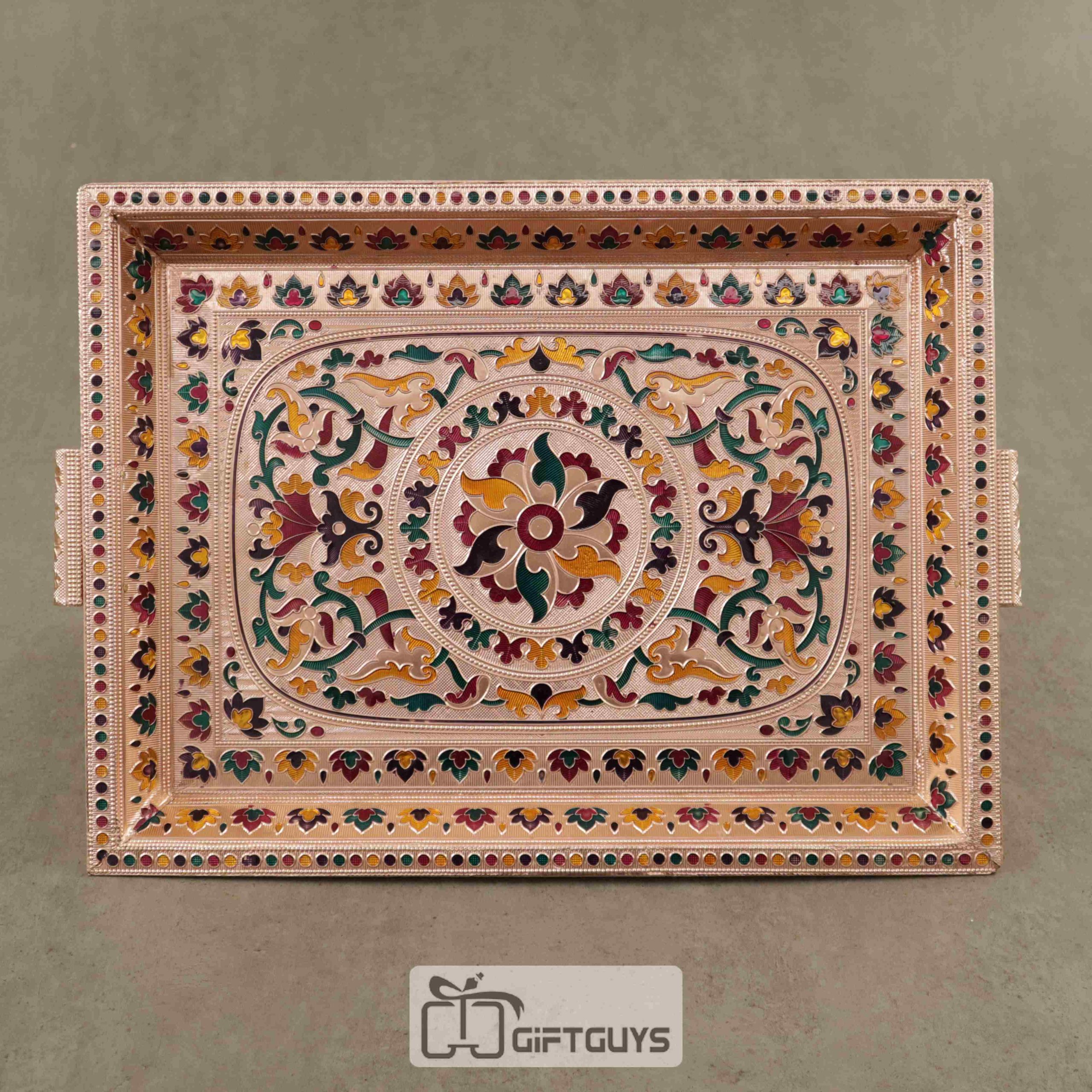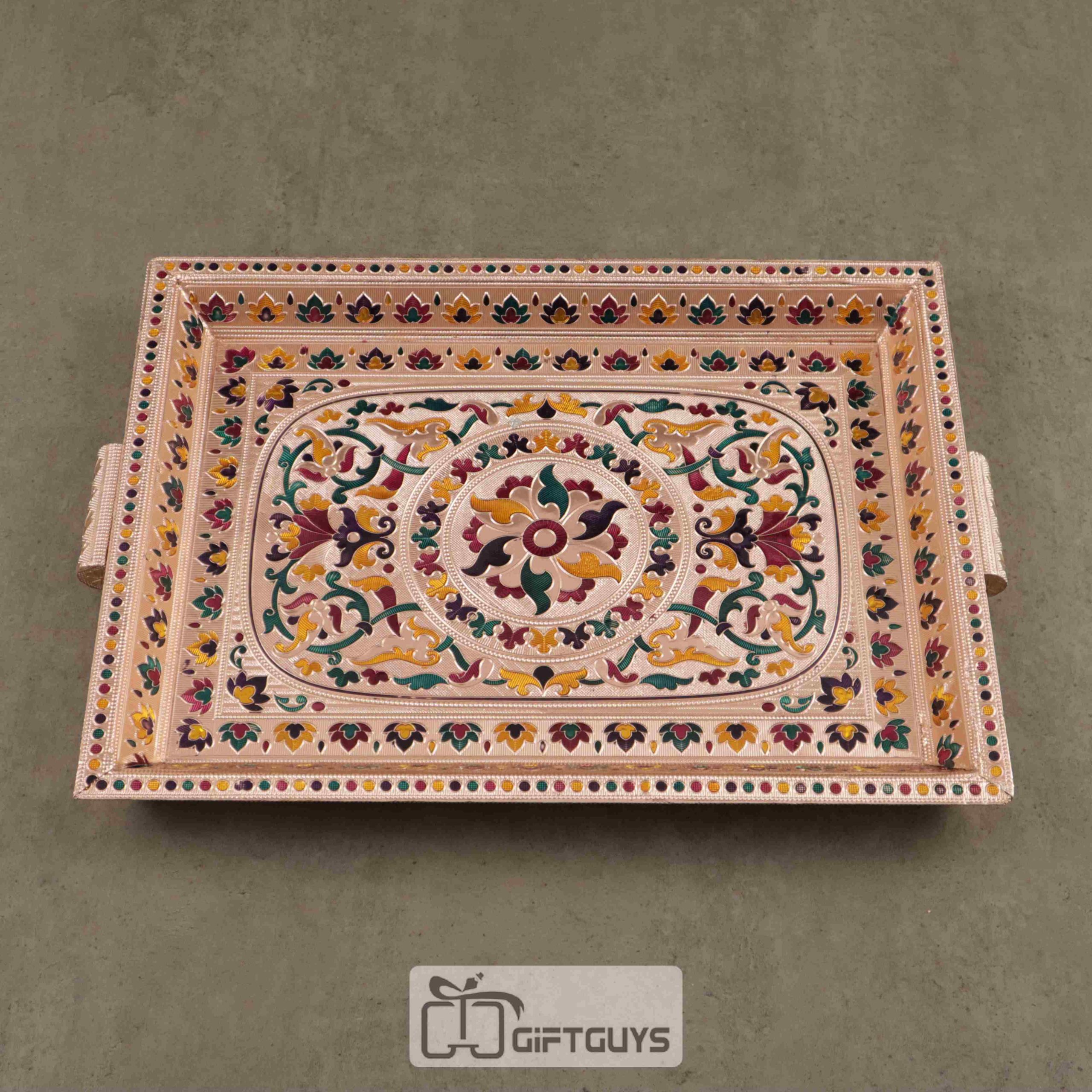 Handcrafted Meenakari Wooden Tray – 16×12 Inch Royal Embossed Serving Tray