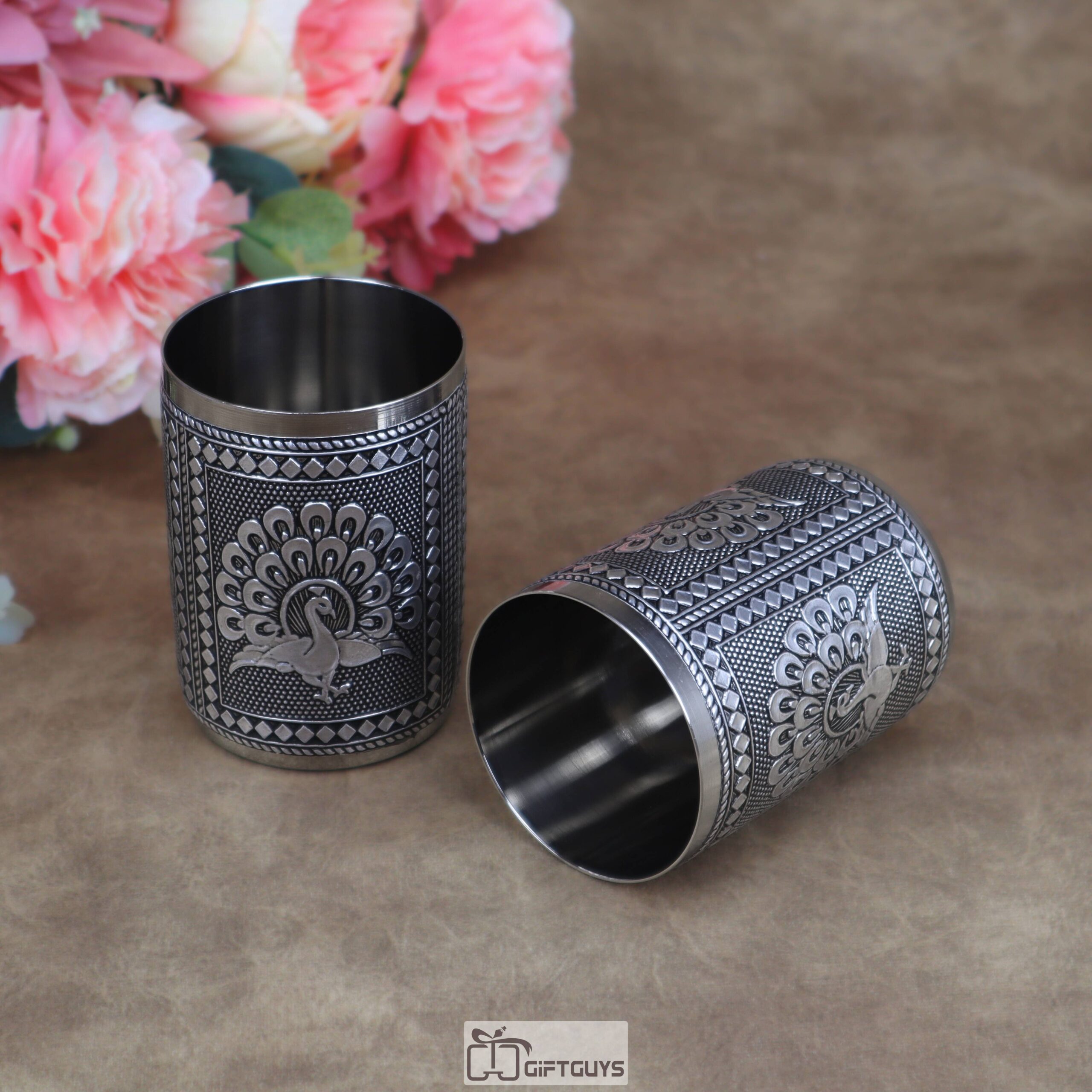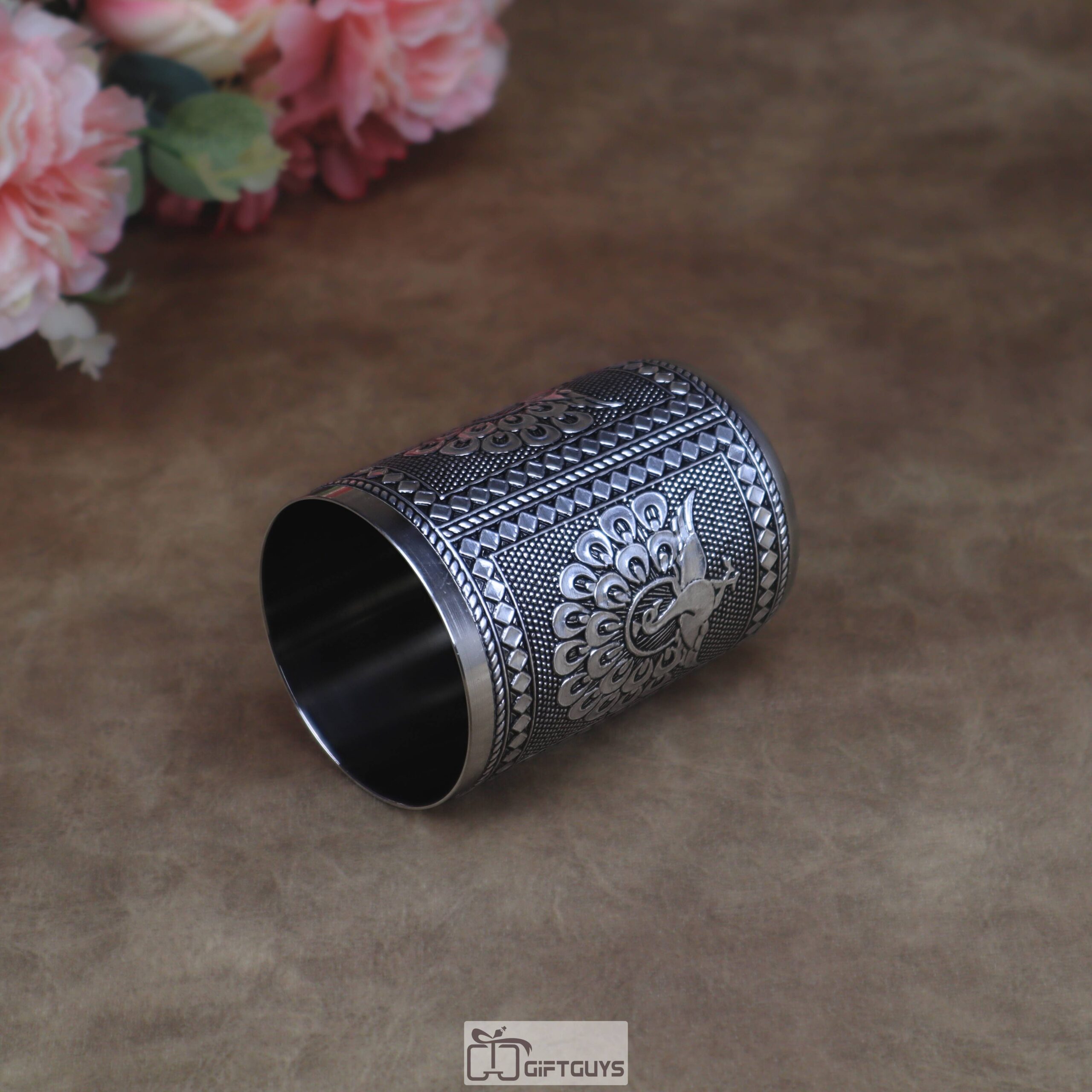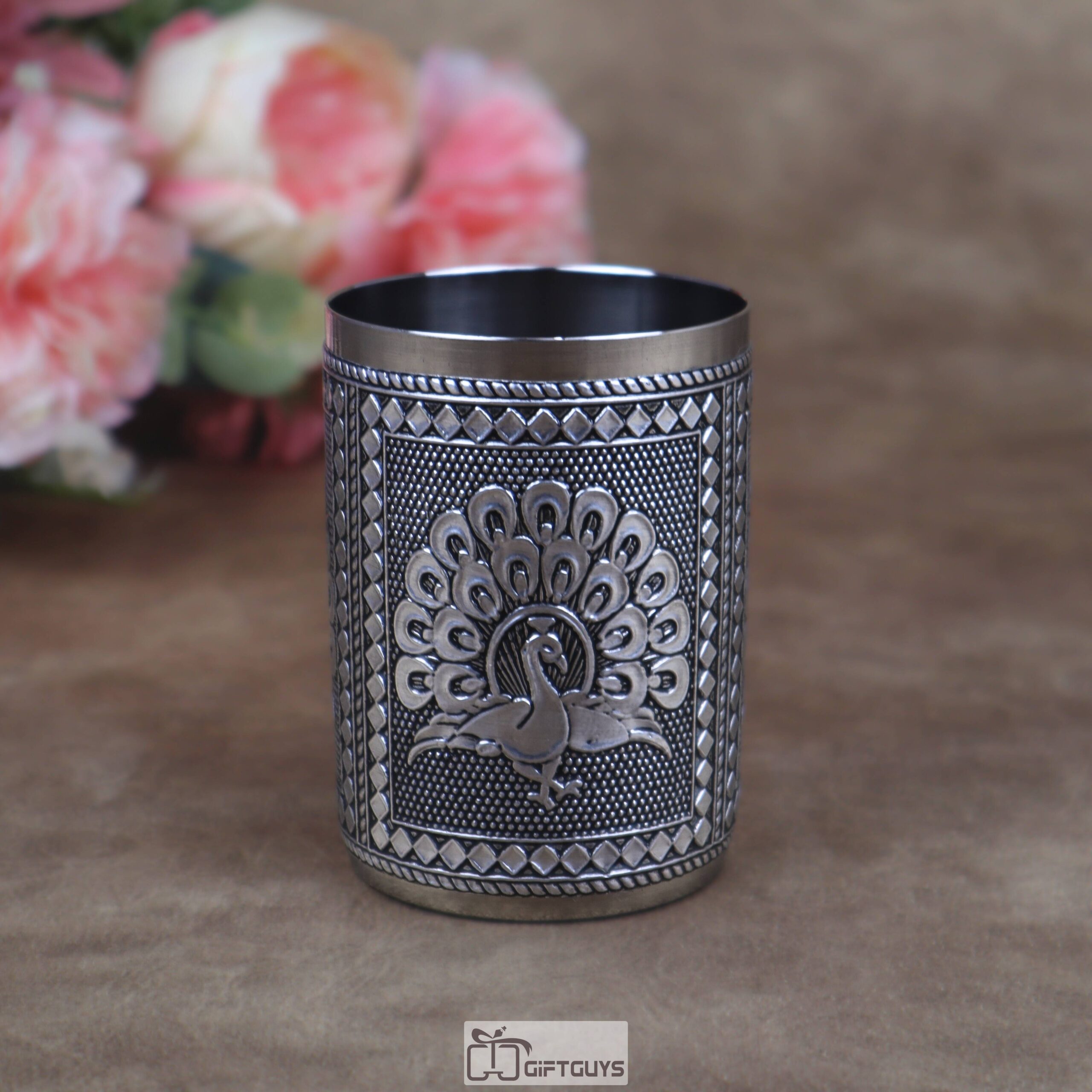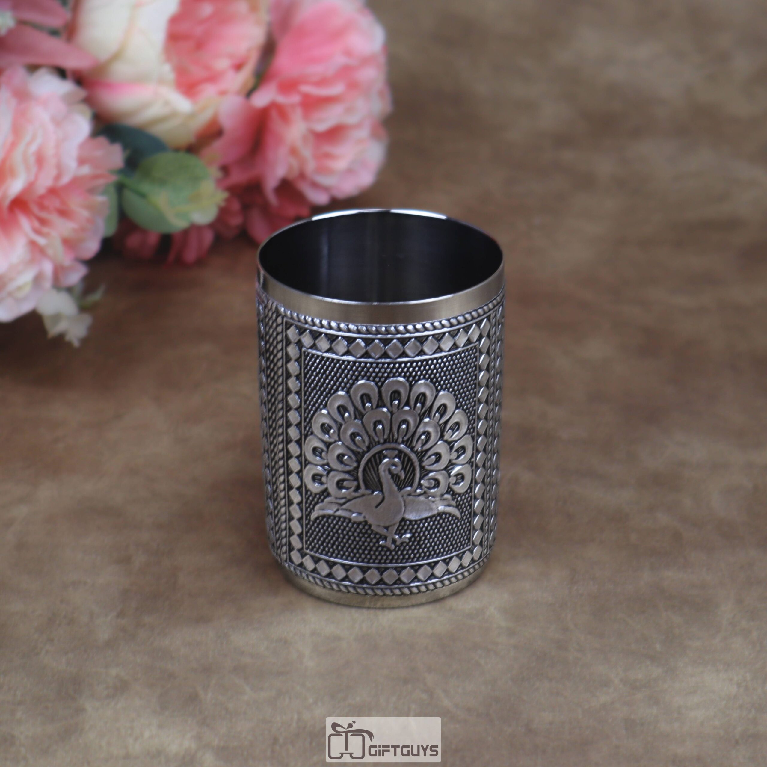 Stunning stainless steel glass with an Oxidised peacock motif. With a 250 ml capacity and compact build (2.5″ diameter, 3.5″ height), it’s perfect for daily use or traditional gifting.