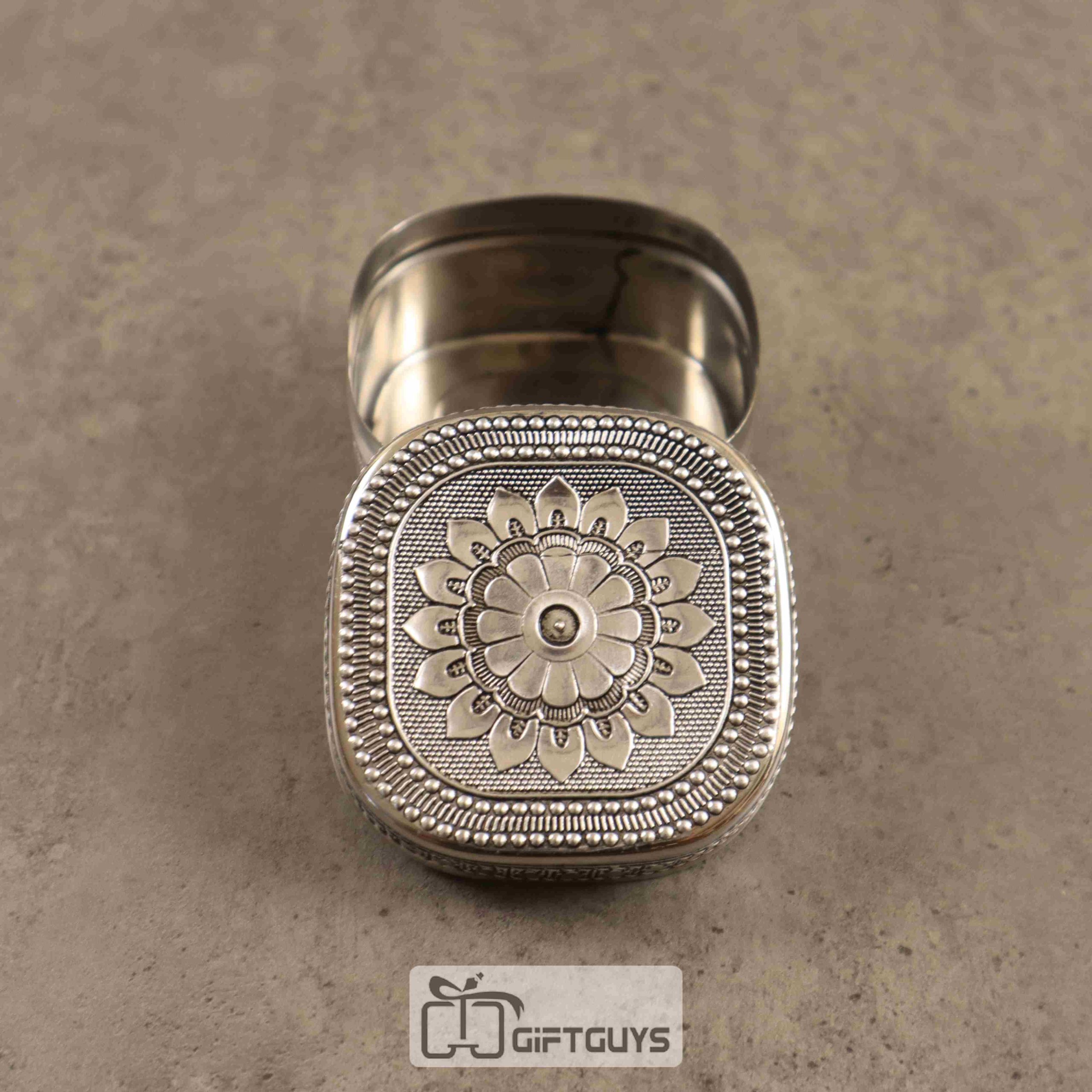 A small-size oxidized stainless steel (SS) storage box combines functionality with style, making it a perfect storage solution for organizing small items like jewelry, coins, or stationery. The oxidized finish gives the box a unique, vintage appearance, adding a rustic charm that complements both modern and traditional decor. Made from durable stainless steel, it offers excellent resistance to corrosion and wear, ensuring long-lasting use. Its compact size makes it versatile for home, office, or travel use. The box often features a secure lid, keeping contents safe while adding an elegant touch to any space. Perfect for those seeking both beauty and utility.