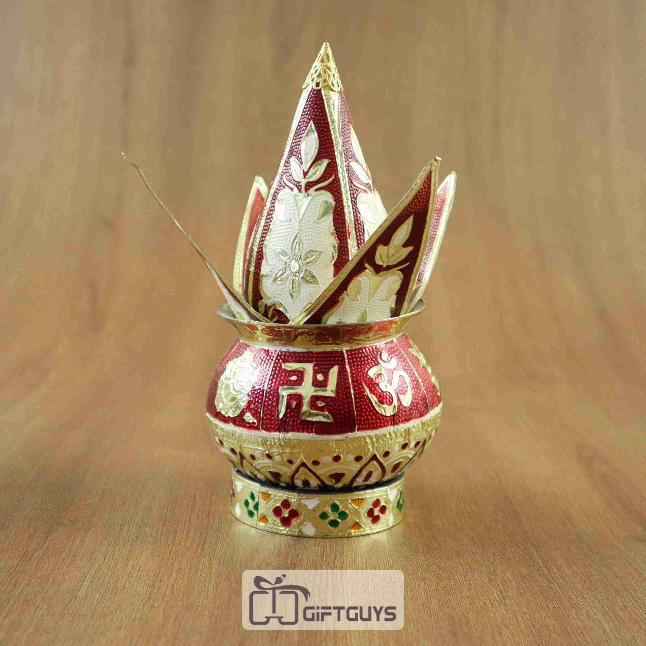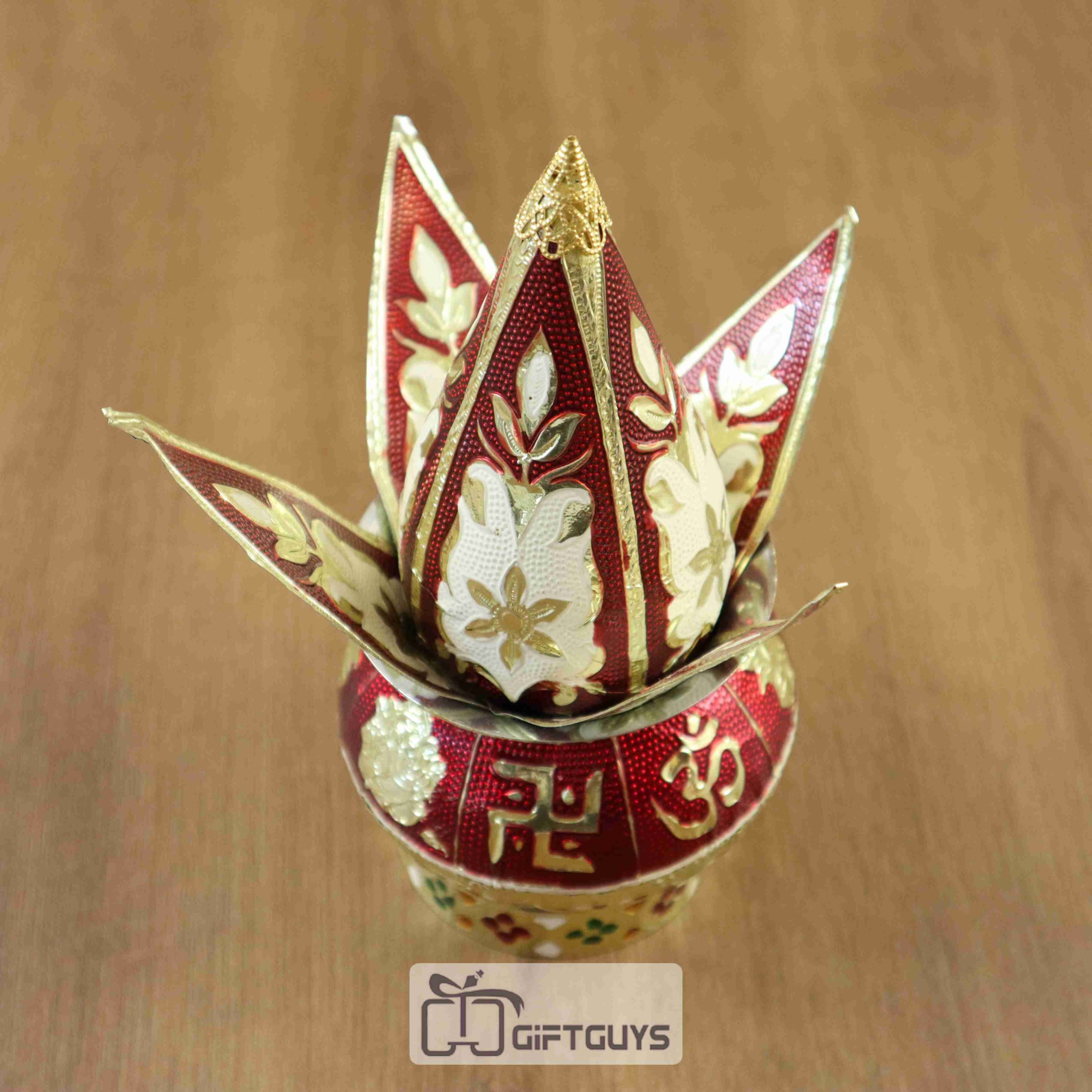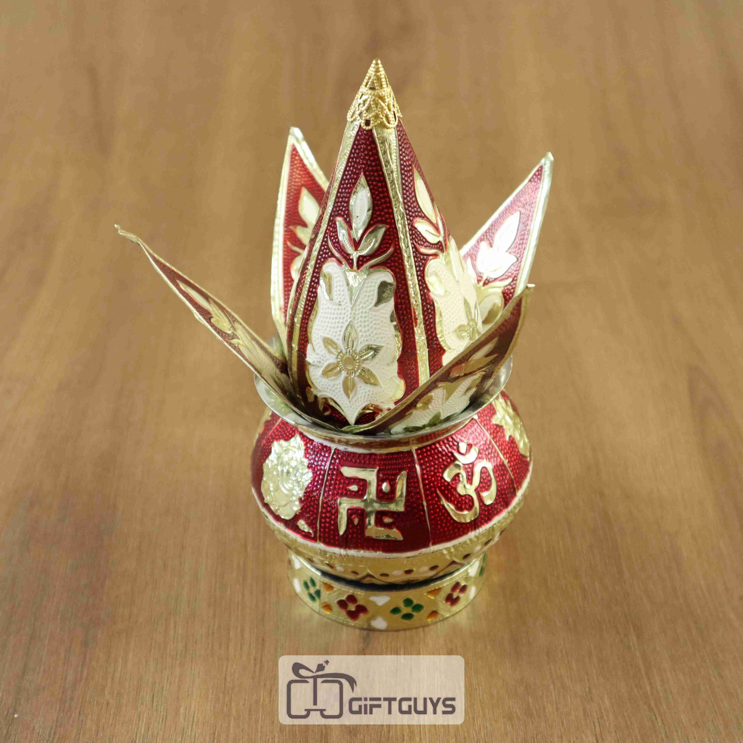 🌸 Beautiful Design – Features a coconut-like top with petals spreading like a lotus, all in Meenakari red & golden detailing.