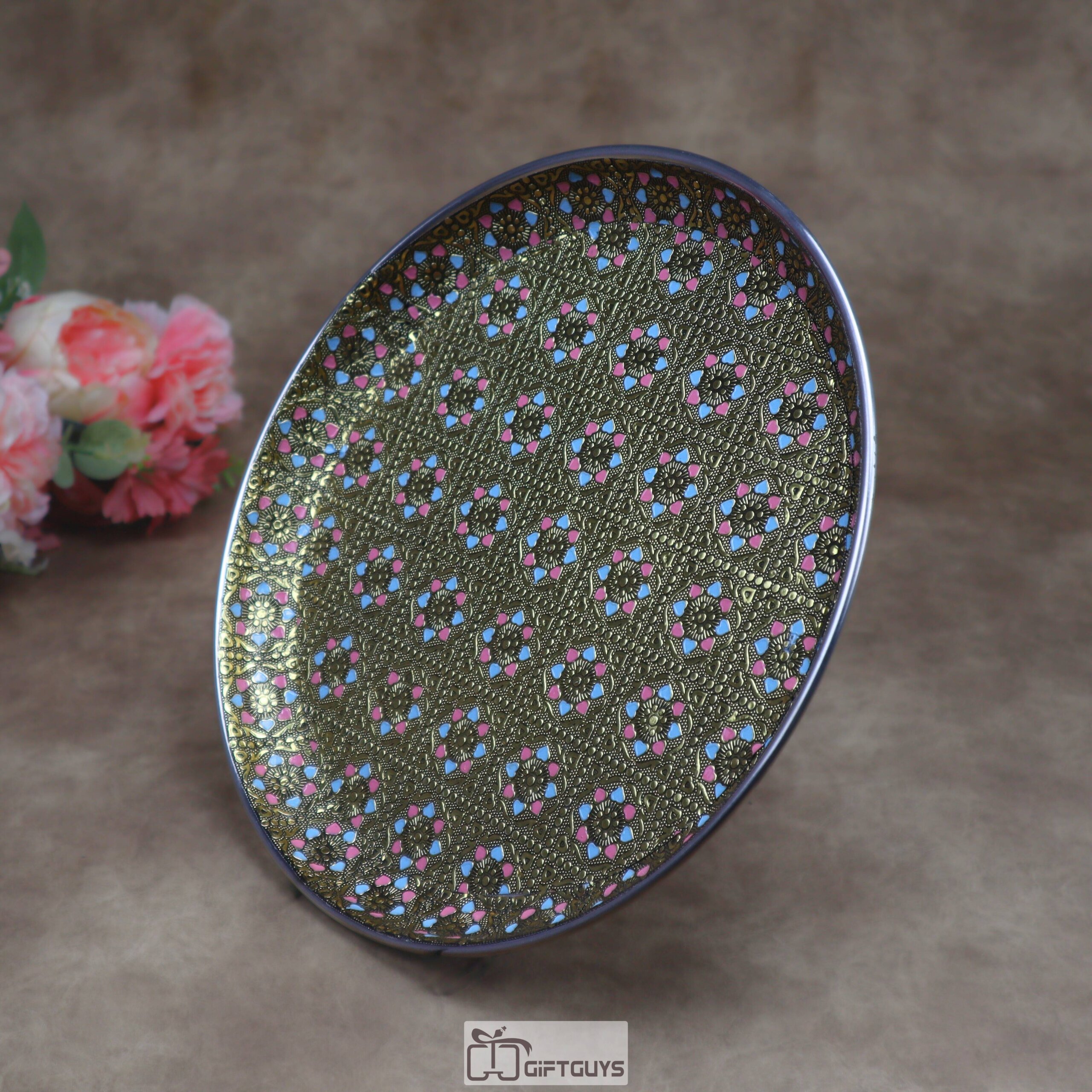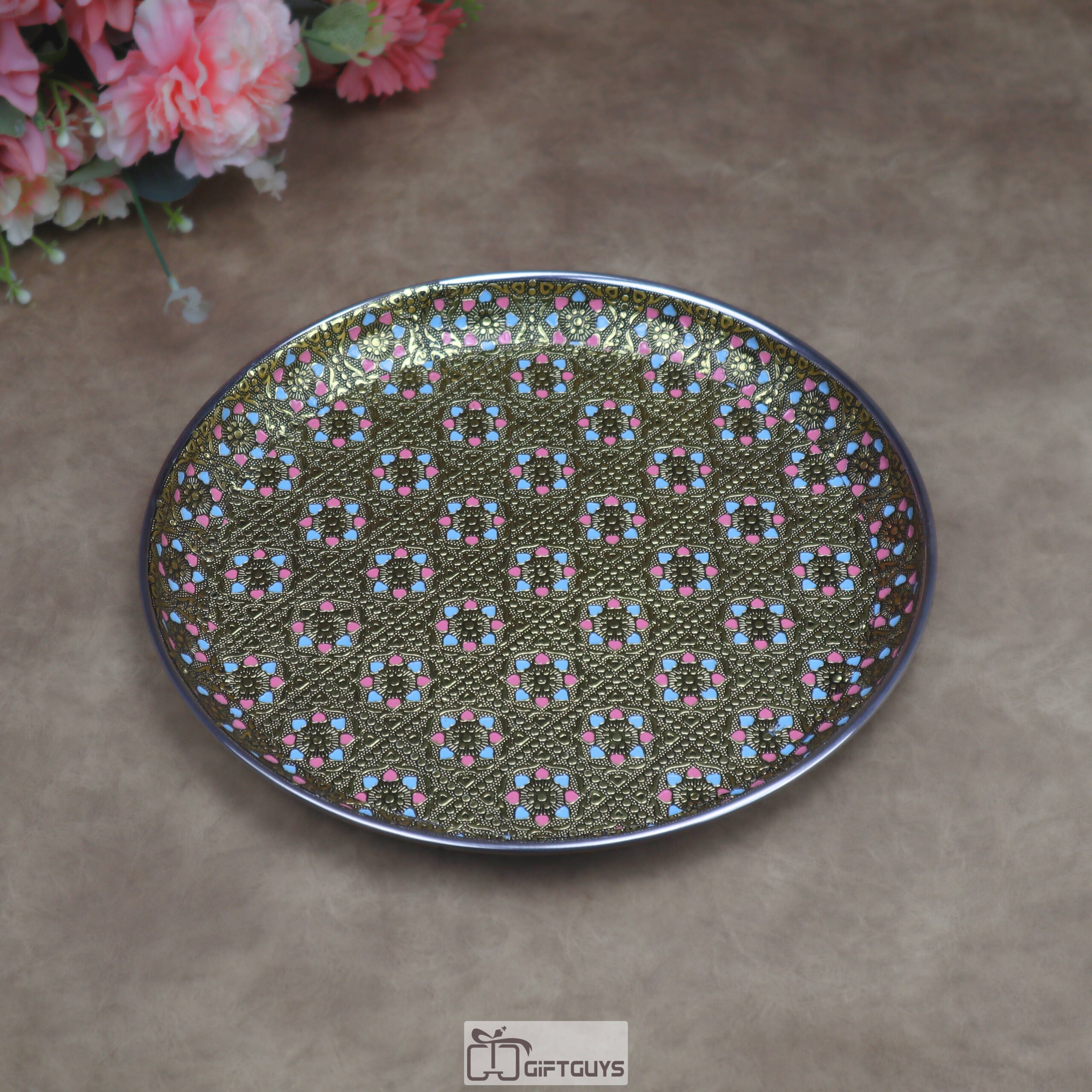 Traditional Meenakari Steel Plate | Oxidised Thali for Pooja & Gifts (12 Inch)