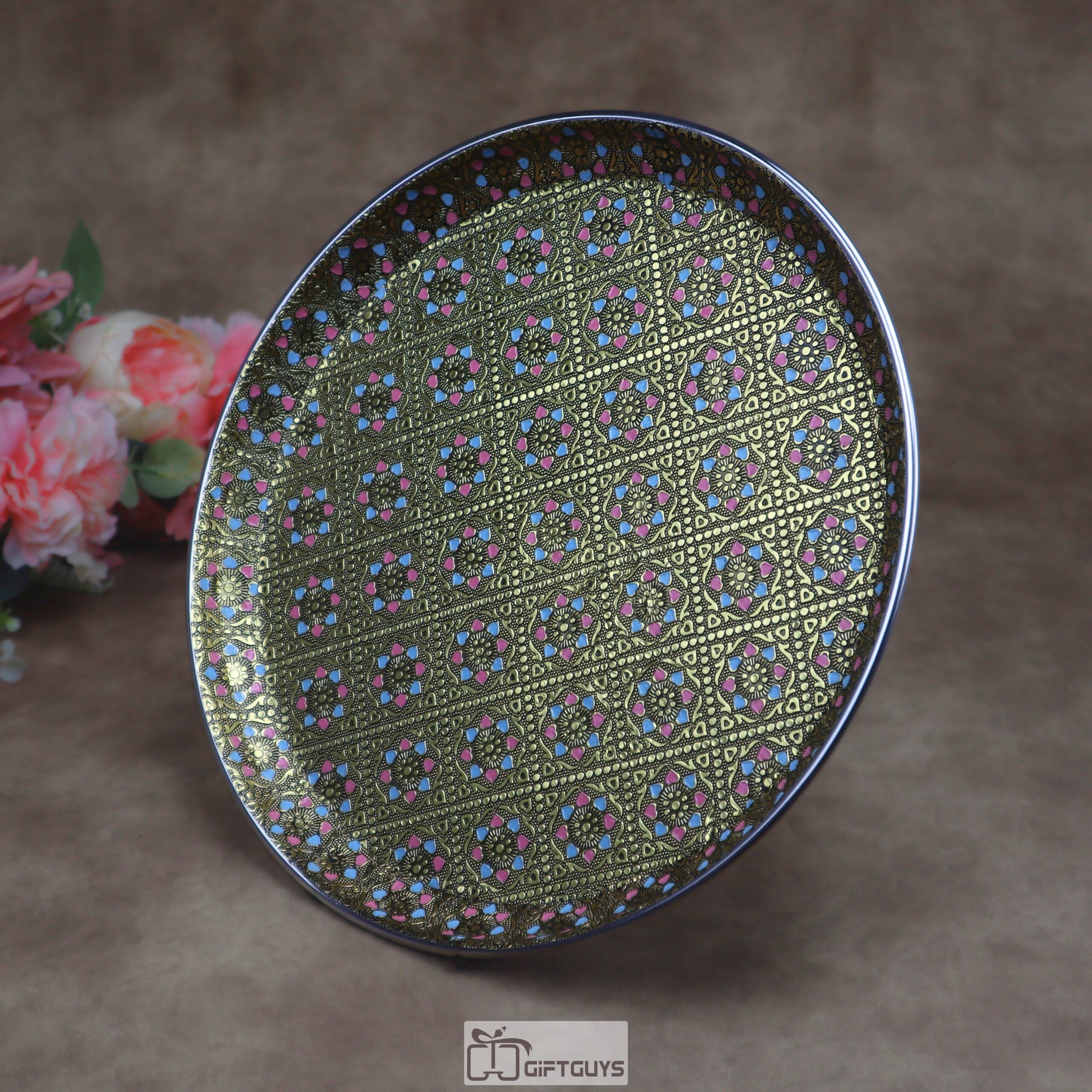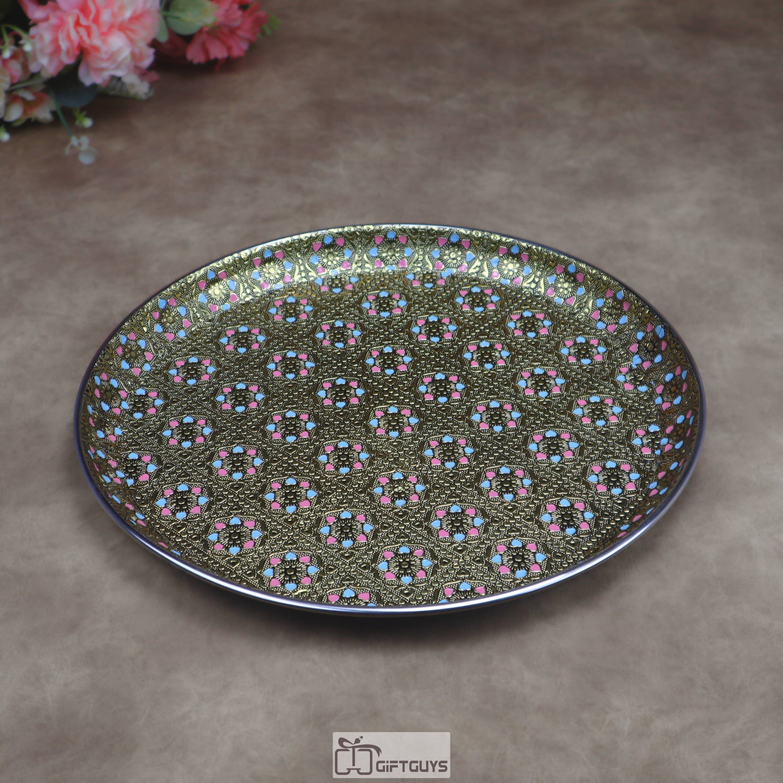 Traditional Meenakari Steel Plate | Oxidised Thali for Pooja & Gifts (13 Inch)