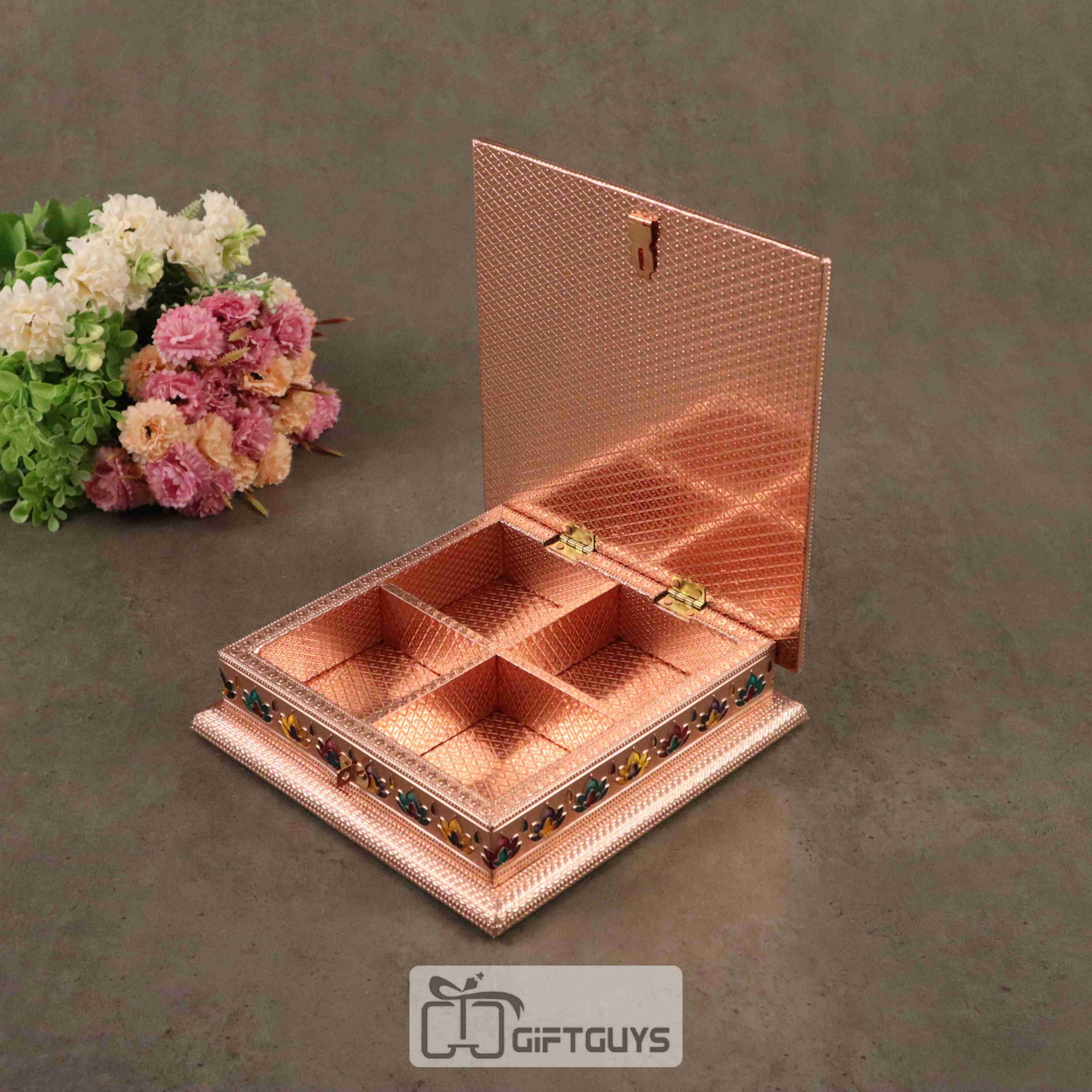 🌰 Multipurpose Compartments – Features 4 spacious sections, perfect for dry fruits, sweets, or small gifts.