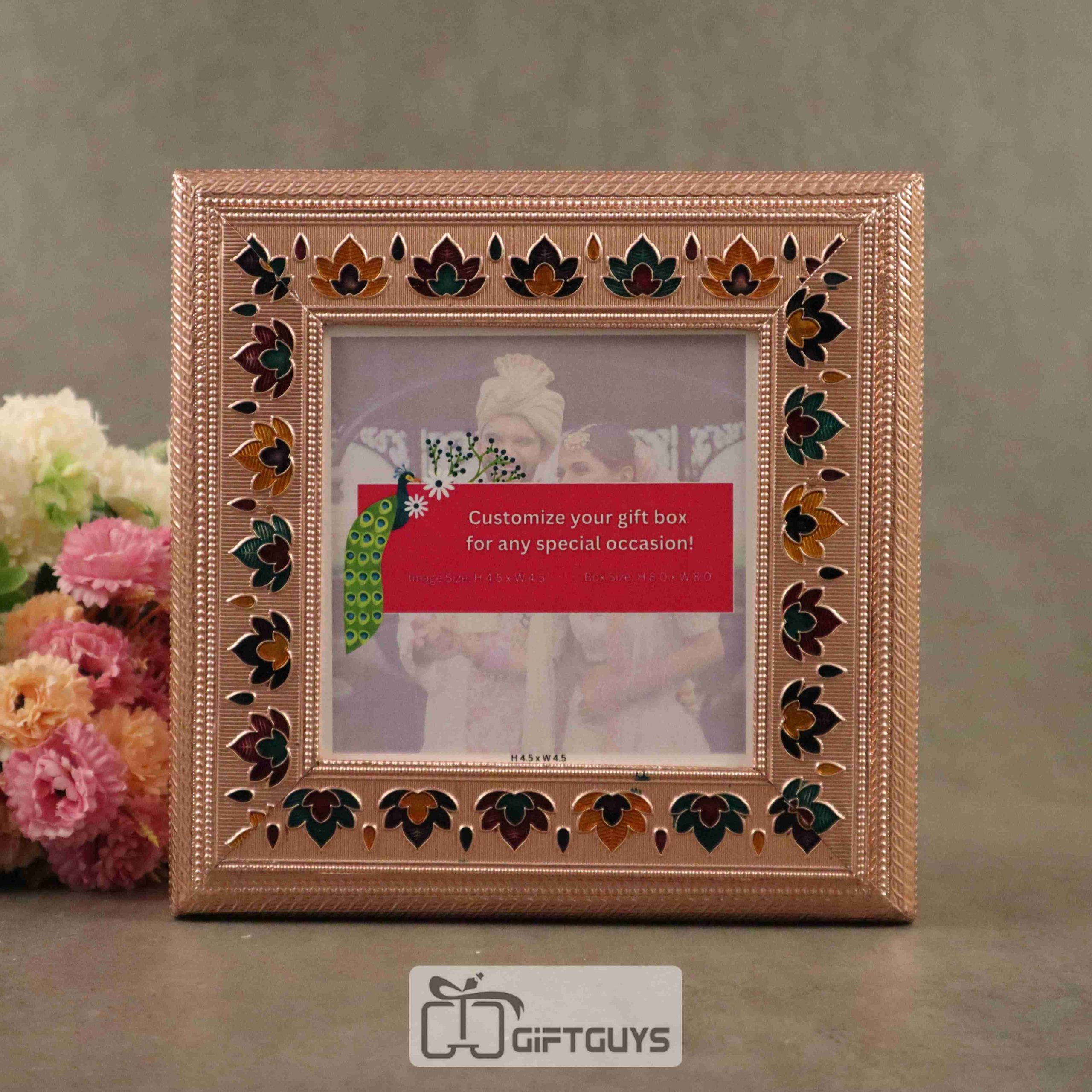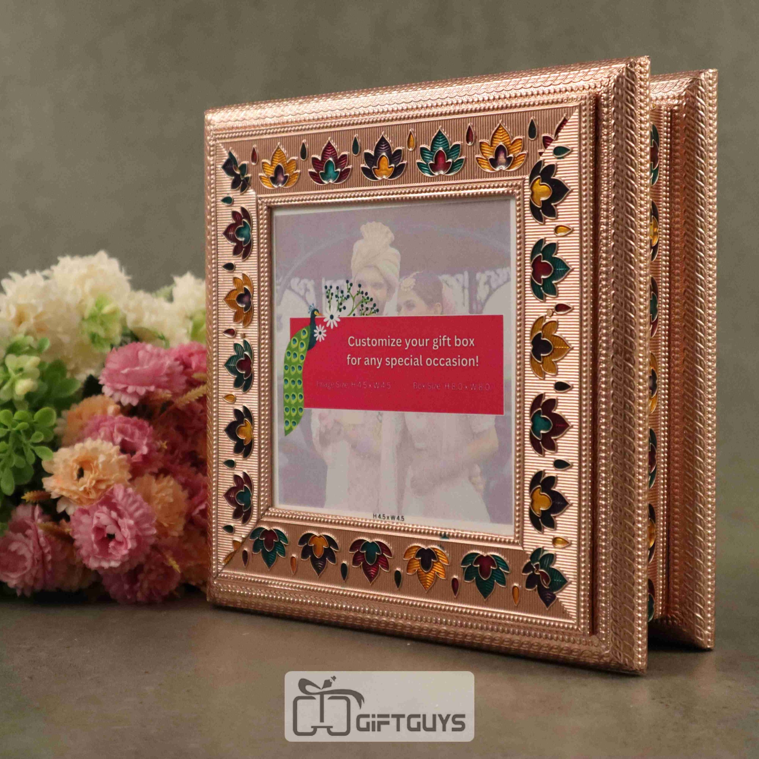 Meenakari Personalized Wooden Dry Fruit Box – 8×8 Inch | Custom Photo Gift Box