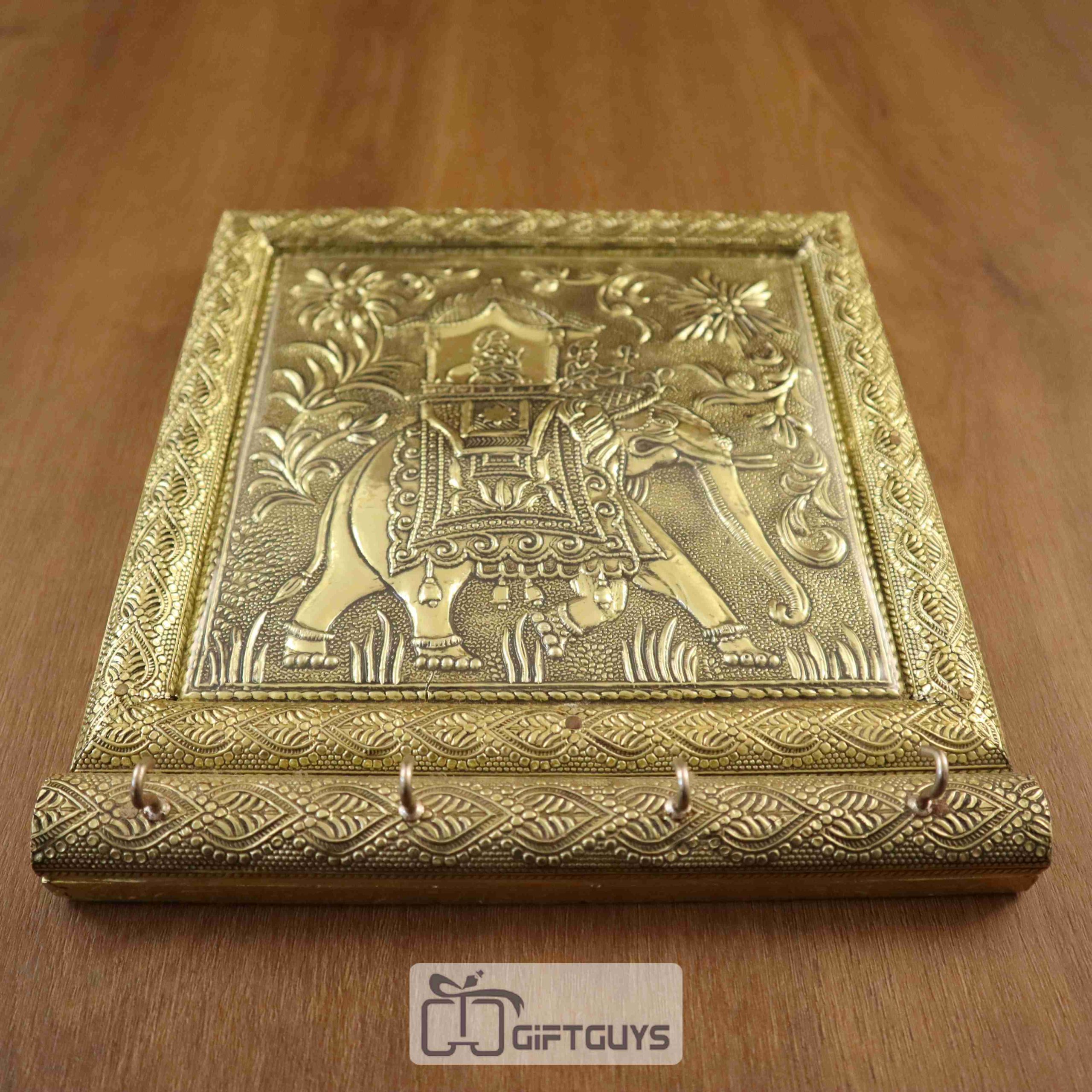 A Wooden Oxidised Elephant Designed Key Hanger is a beautifully crafted piece that combines traditional craftsmanship with modern functionality. Made from high-quality wood, this key hanger features an intricate oxidised peacock design, showcasing vibrant colors and detailed patterns. The oxidised finish adds a rustic, antique charm, enhancing its visual appeal. It is designed with hooks to conveniently hang keys, small accessories, or even jewelry. The peacock motif symbolizes beauty and elegance, making it an attractive addition to any home or office. This key hanger not only serves a practical purpose but also adds an artistic, cultural touch to your space.
