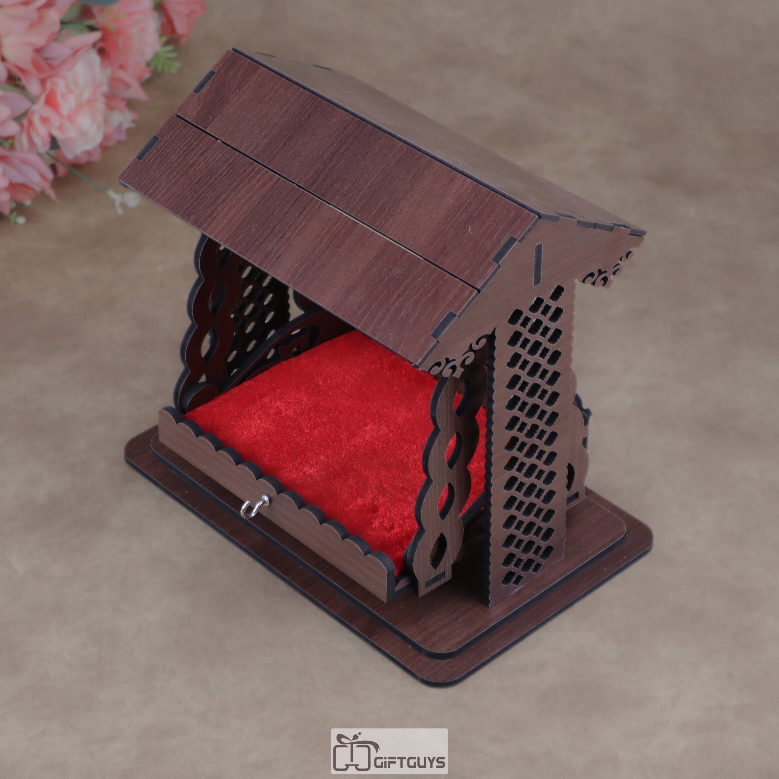 Intricate Detail: ⚙️ Features detailed laser-cut lattice work on the side panels and an elegantly carved roof, giving it a rich, antique look.
