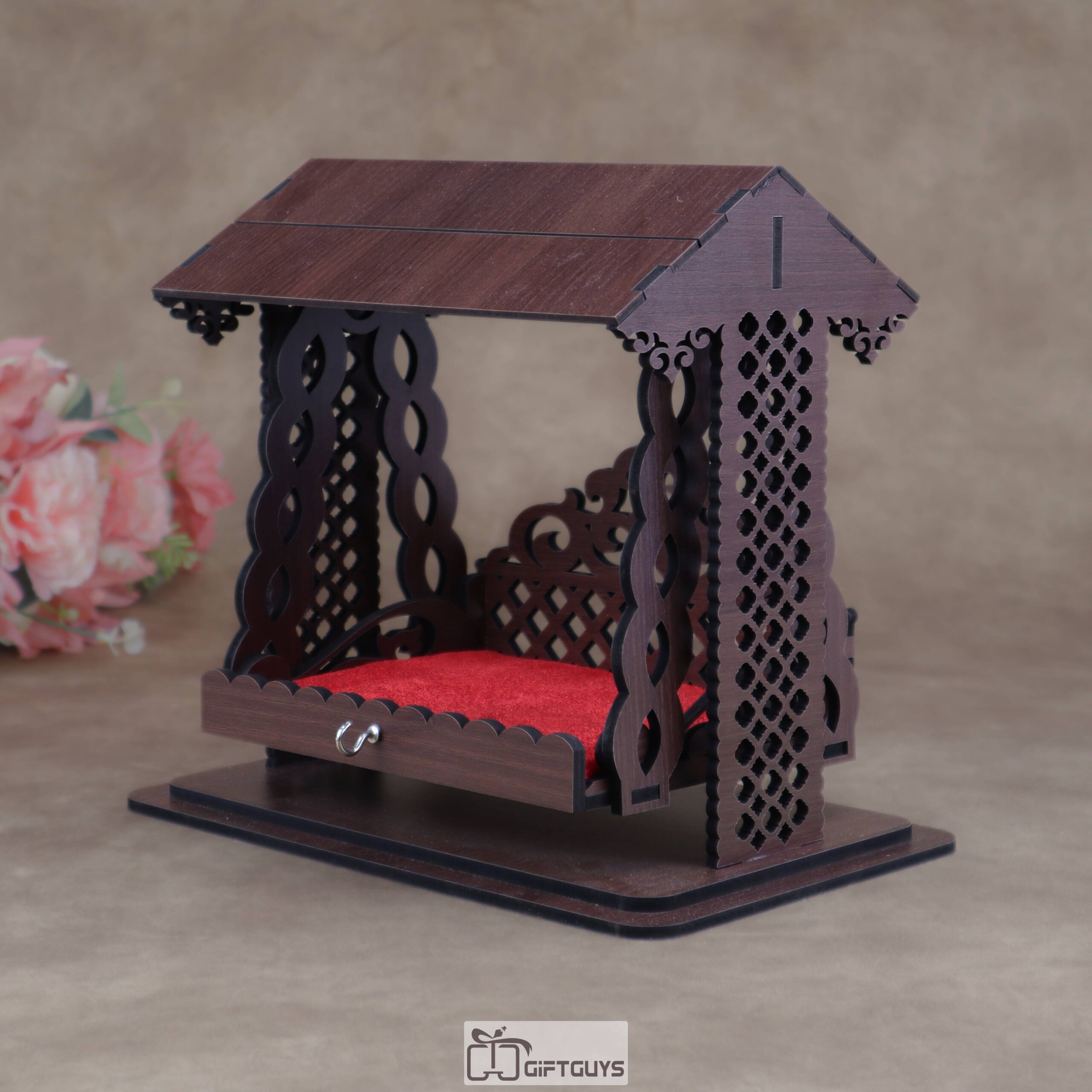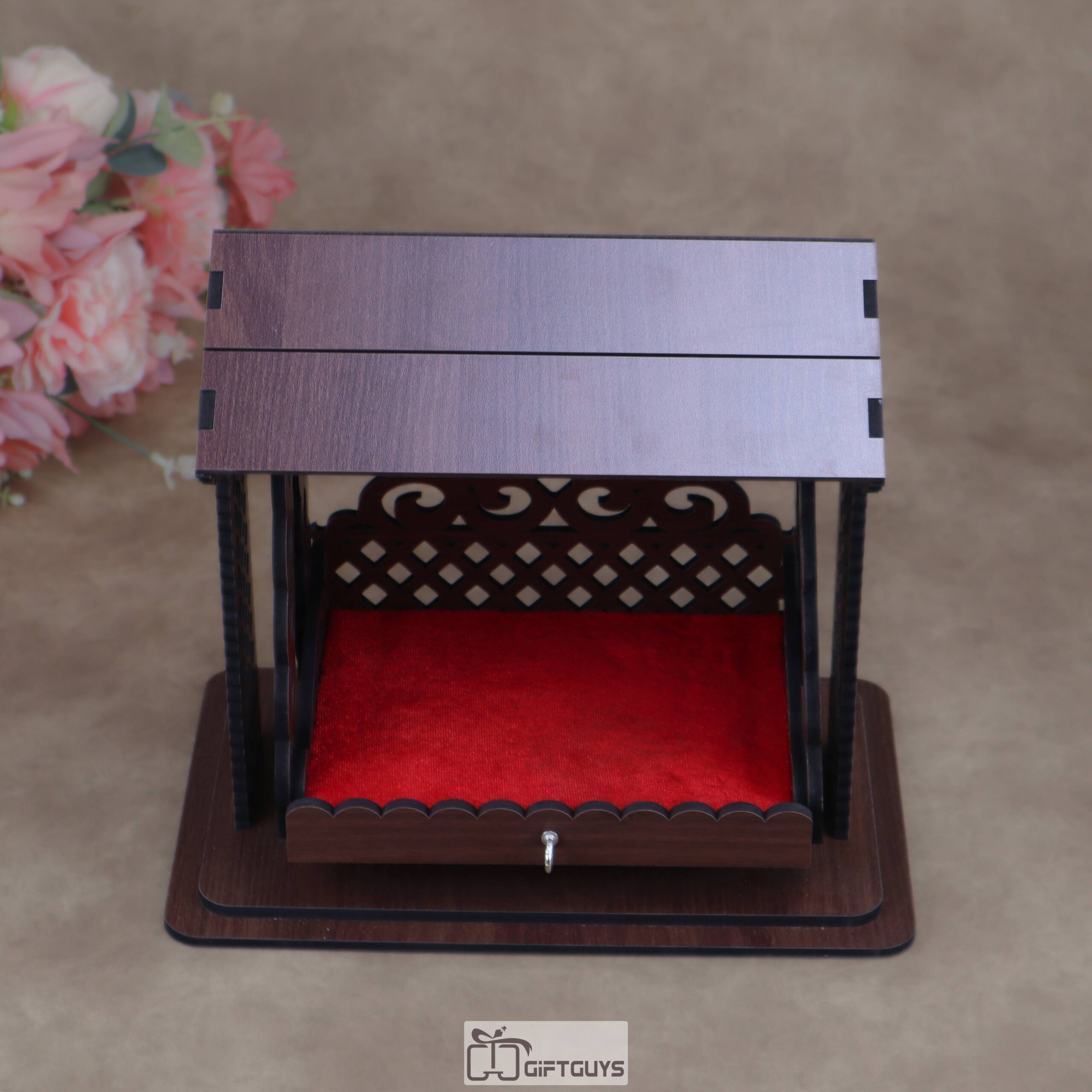 Traditional Design: 💖 This miniature wooden structure is crafted in the style of an Indian swing (Jhula or Onjal), perfect for placing an idol of Laddu Gopal/Bala Krishna (baby Krishna).