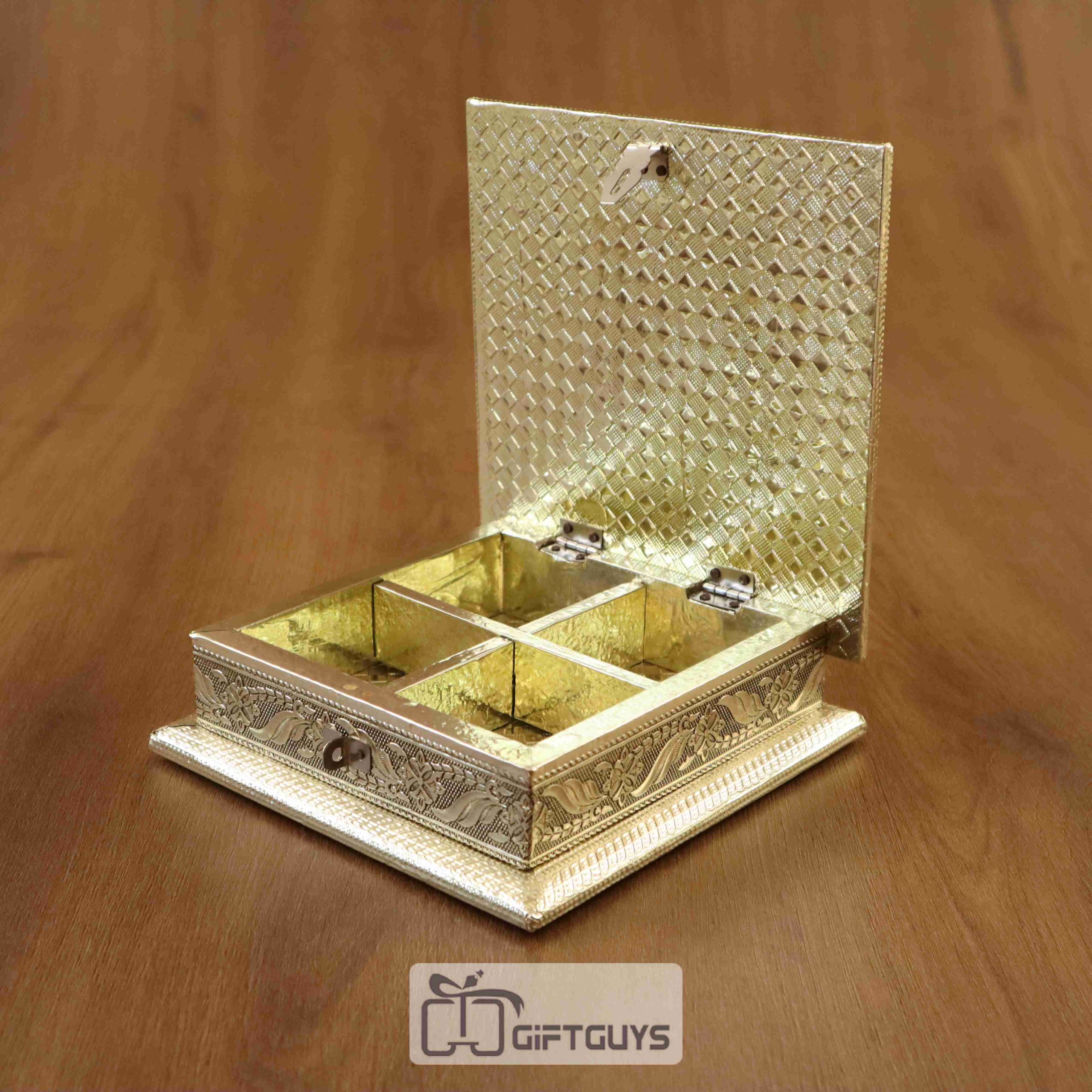 A Wooden Handcrafted Dry Fruit Box is a beautifully designed storage container made from high-quality wood, showcasing traditional craftsmanship. Artisans carefully carve and shape the wood, often incorporating intricate details such as floral patterns, geometric designs, or cultural motifs. The box is designed to store dry fruits, nuts, and snacks, offering both functionality and aesthetic appeal. Its smooth, polished surface and fine finishing make it a perfect decorative piece for the home. Available in various sizes and styles, this handcrafted box reflects the skill and artistry of the craftsmen, adding a touch of elegance and charm to any setting.
