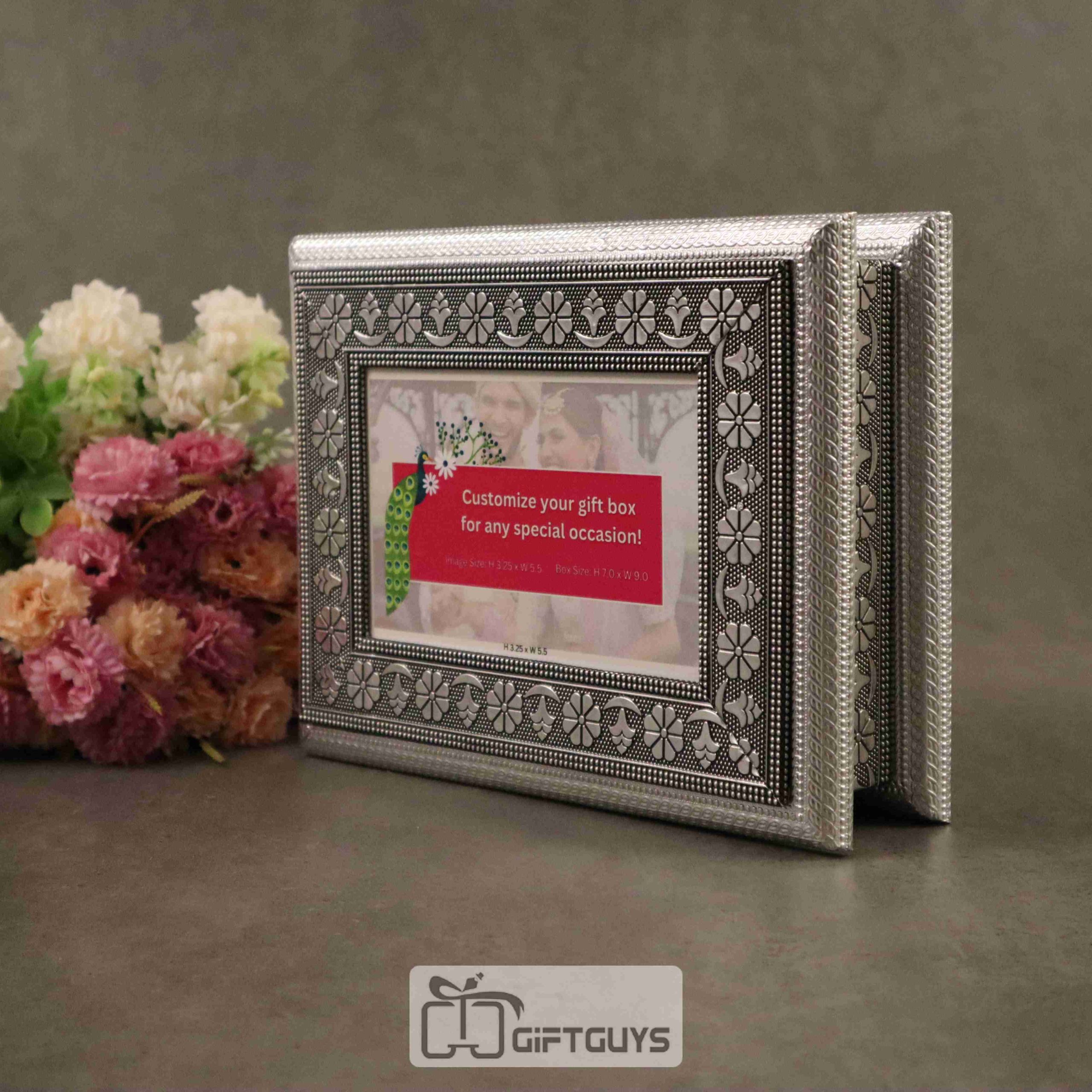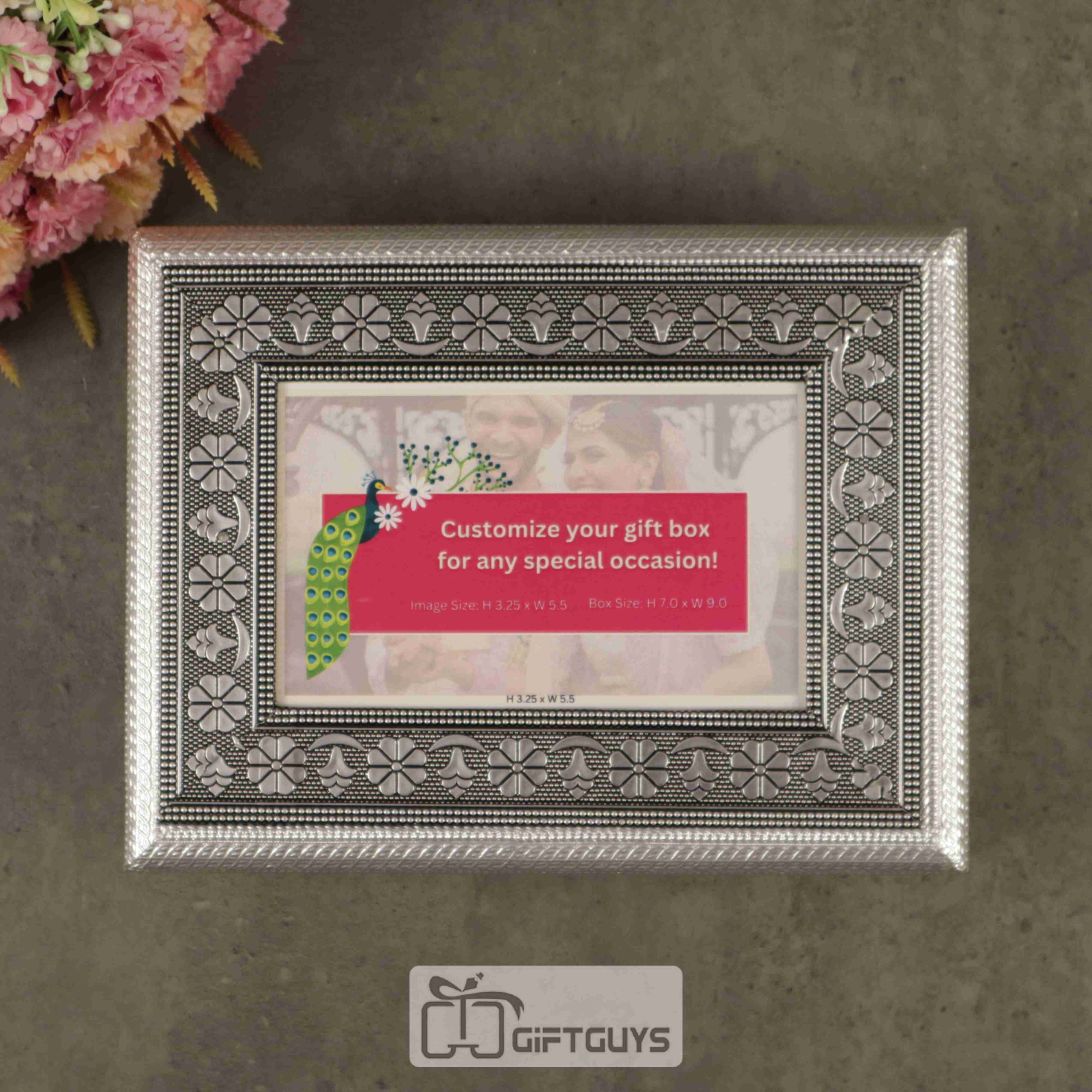 Personalized Oxidised Wooden Dry Fruit Box – 9 x 7 inch with Custom Photo Frame