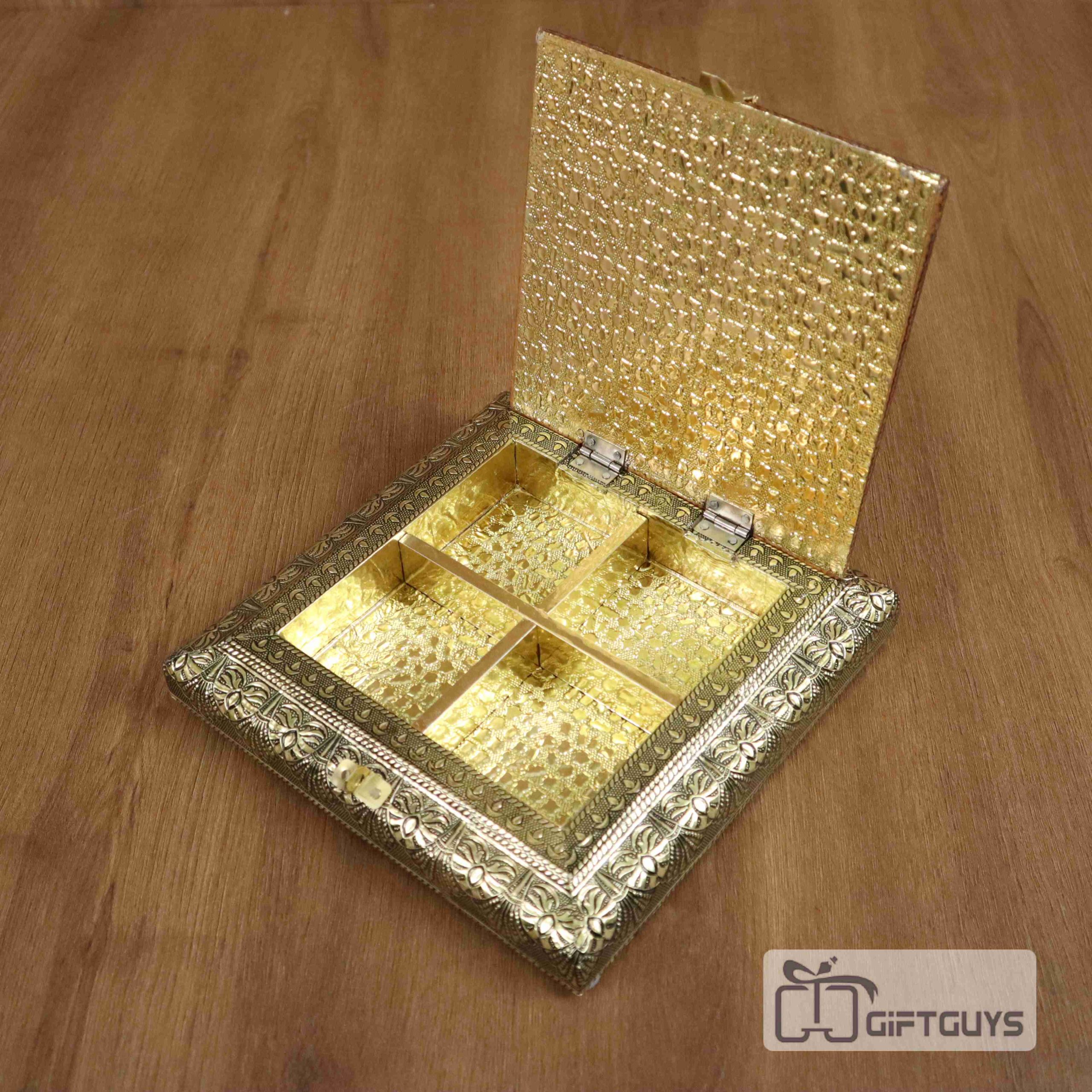 🔸 Spacious Interior – Comes with 4 golden compartments – perfect for dry fruits, sweets, or chocolates.