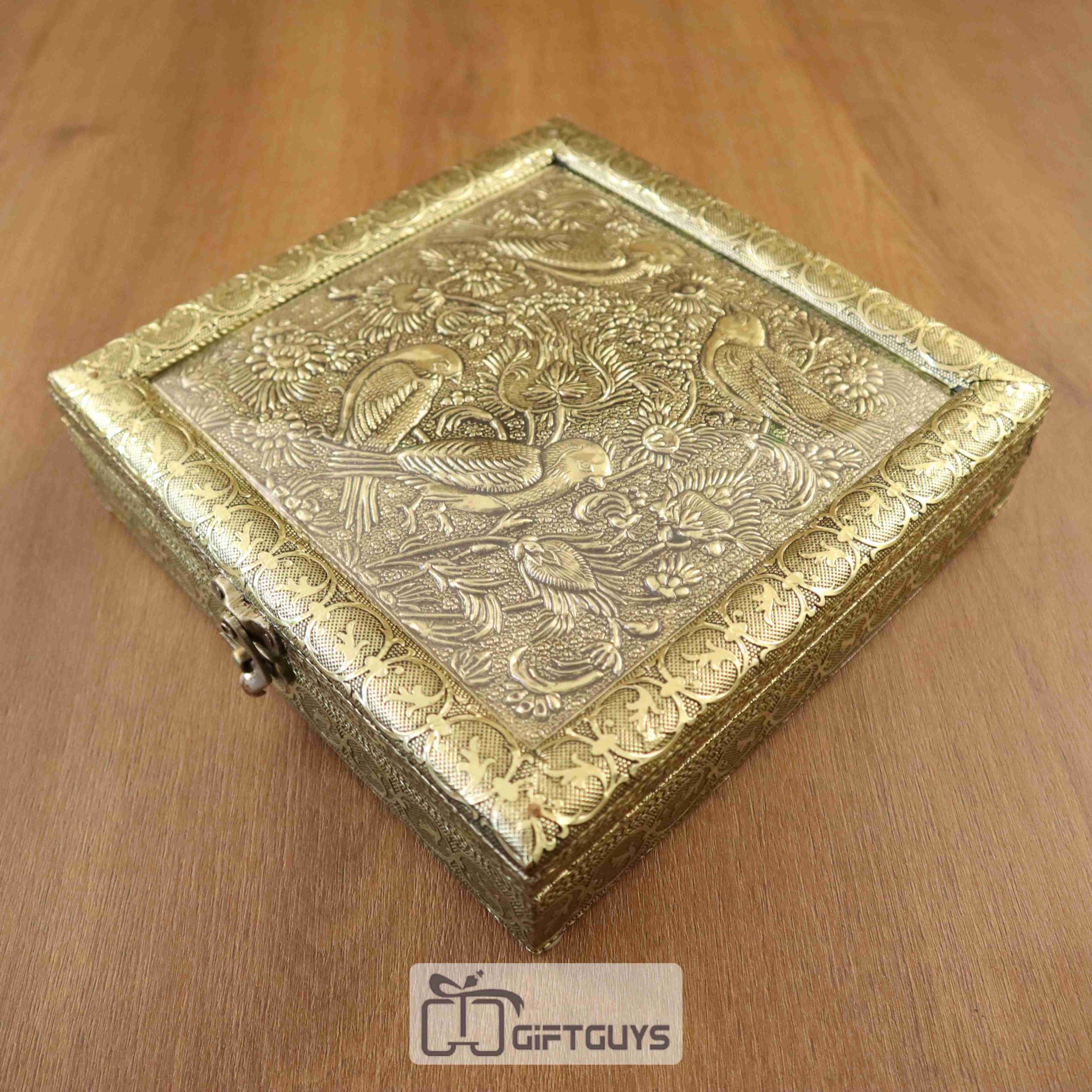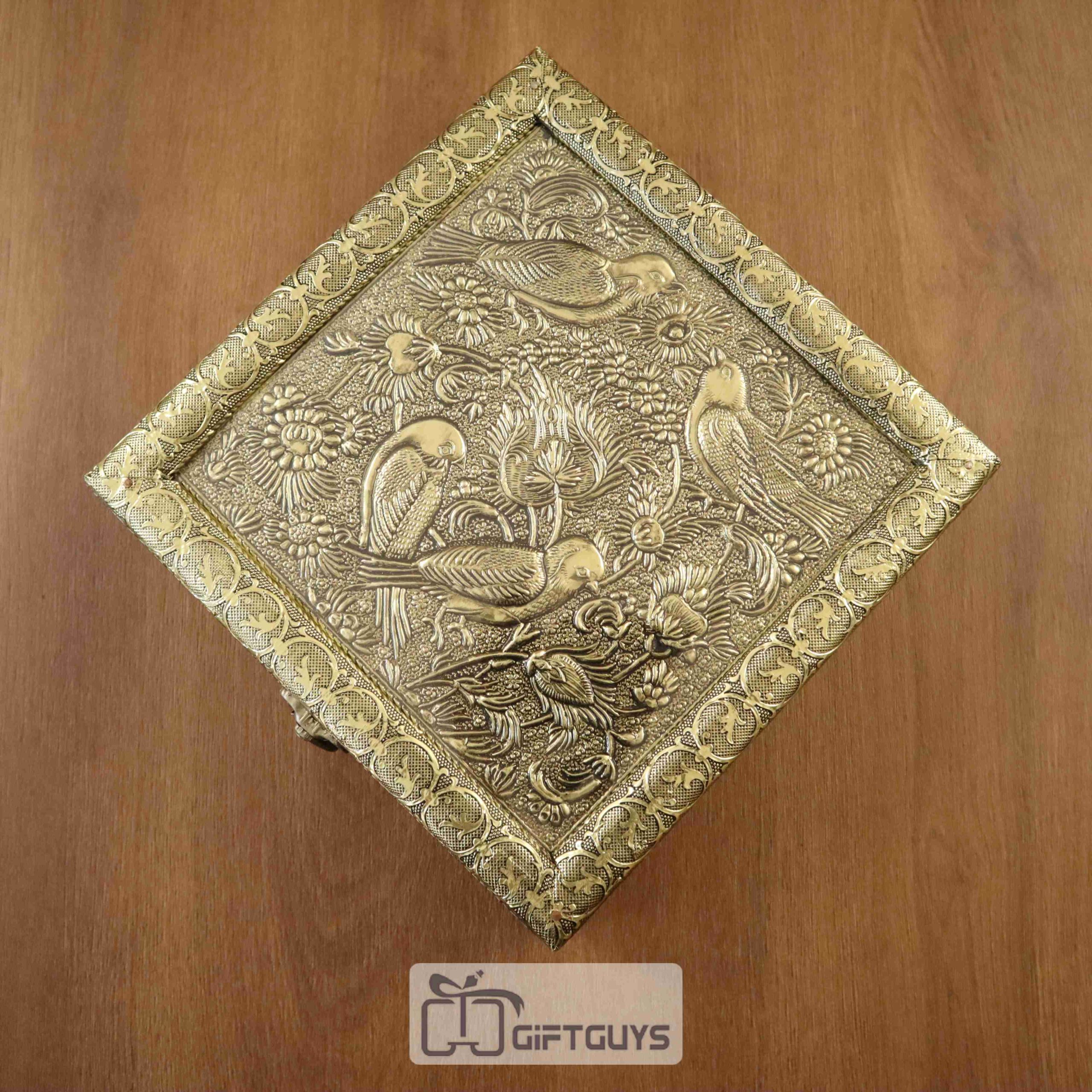 Be the first to review “Decorative Embossed Oxidised Dry Fruit Box with Sparrow Design – 4 Partition Decorative Gift Box”