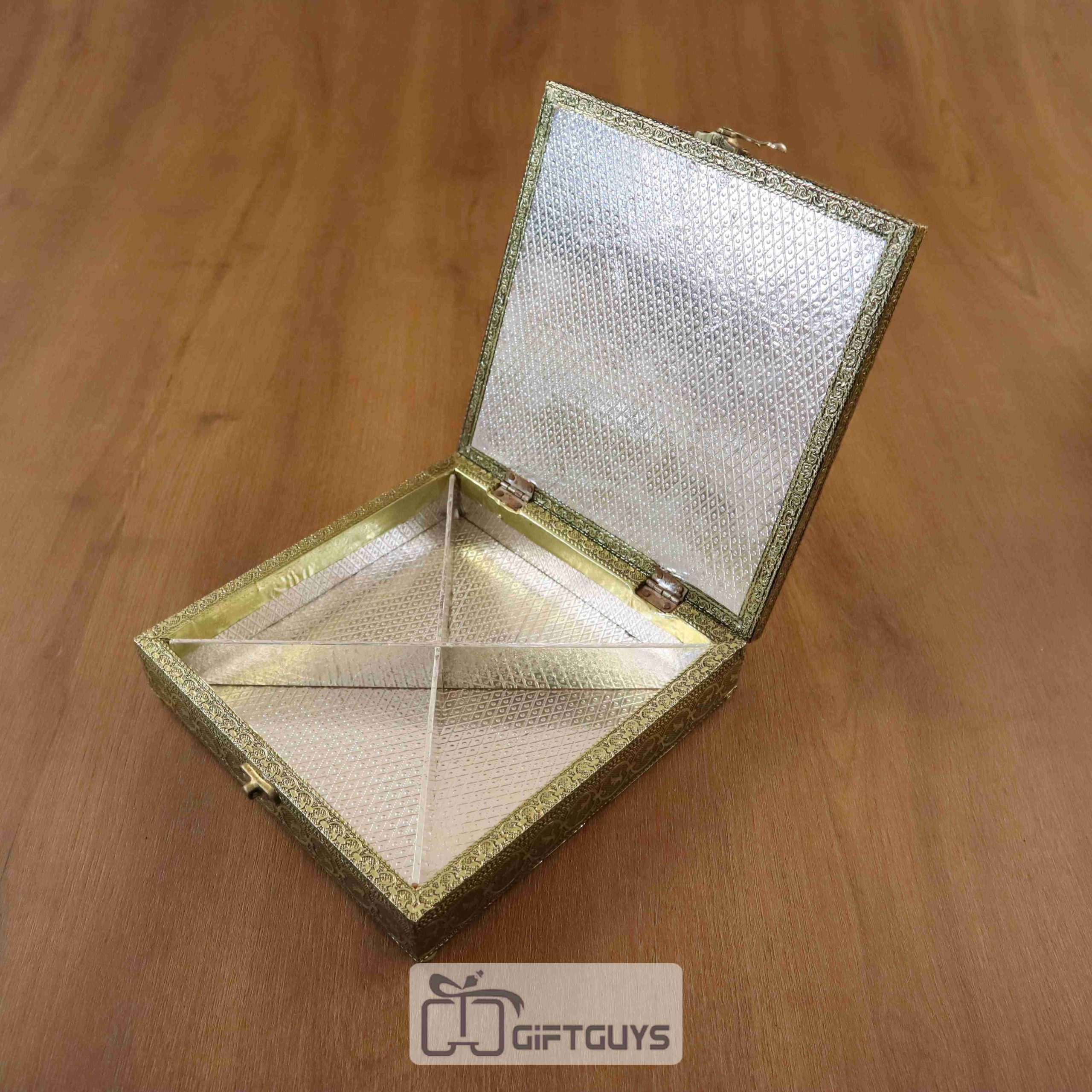 🔳 4 Compartments: Spacious interior with 4 sections for storing dry fruits, sweets, or mouth fresheners.