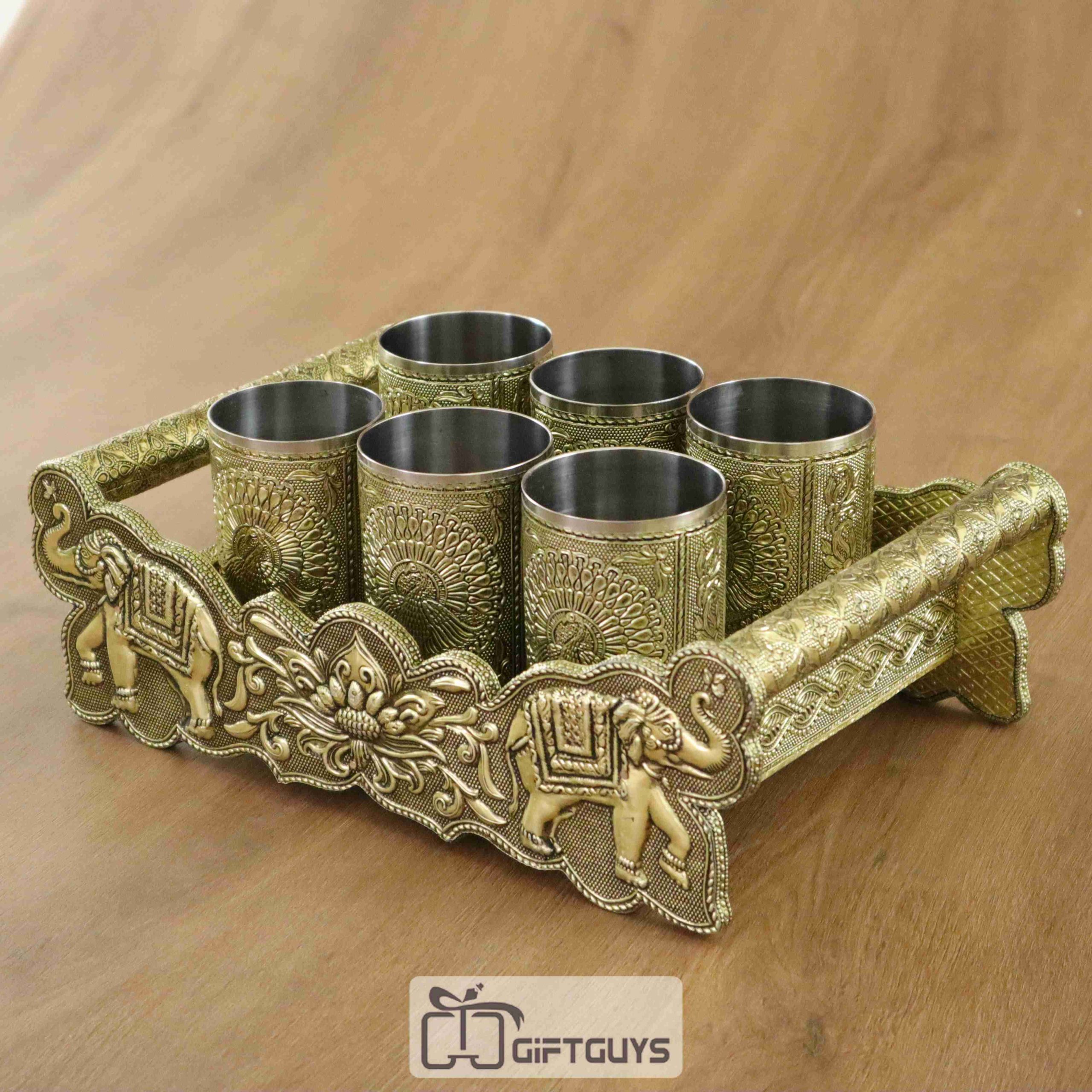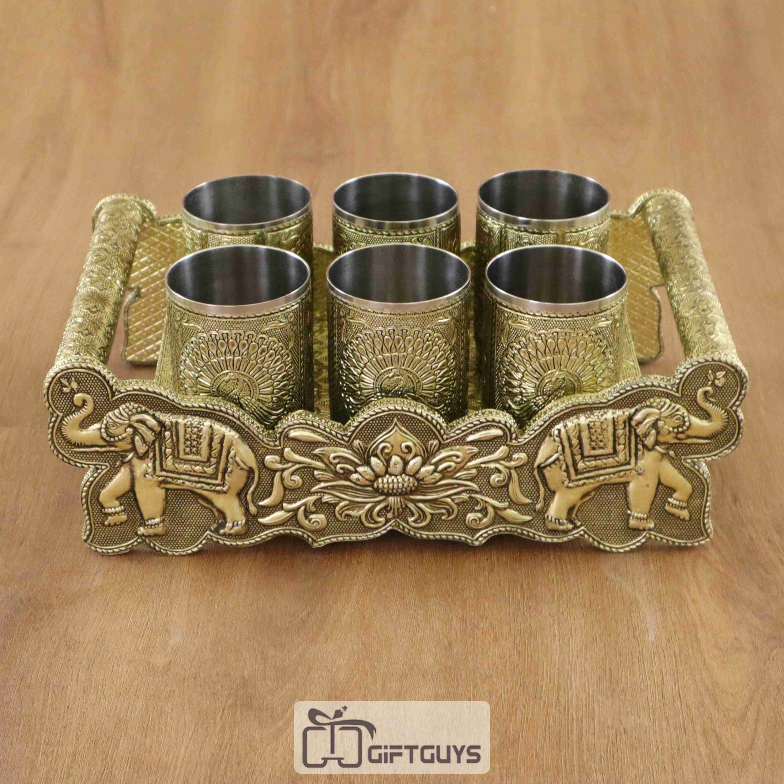 Be the first to review “Wooden Oxidised Tray With 6 Glass”