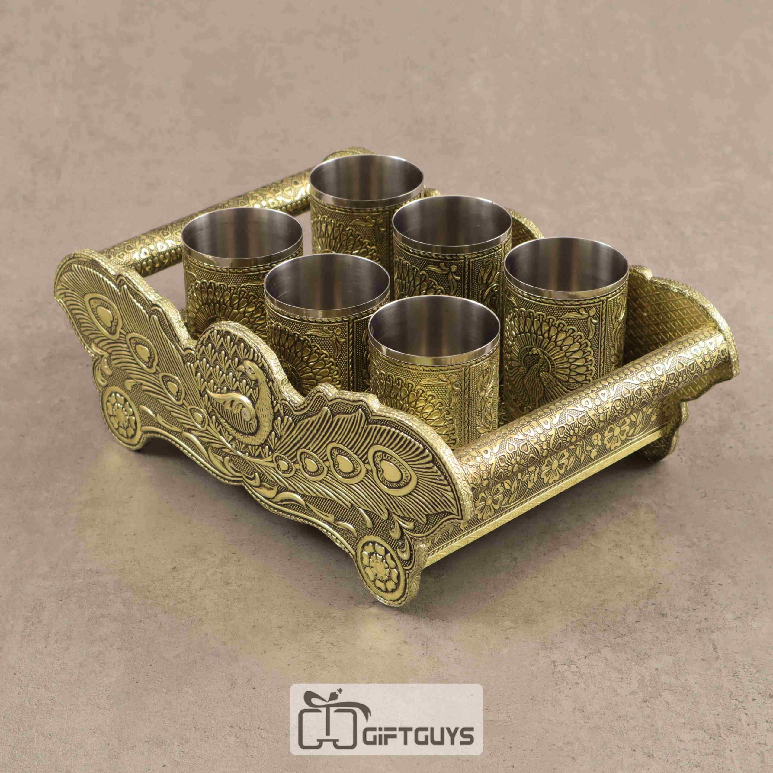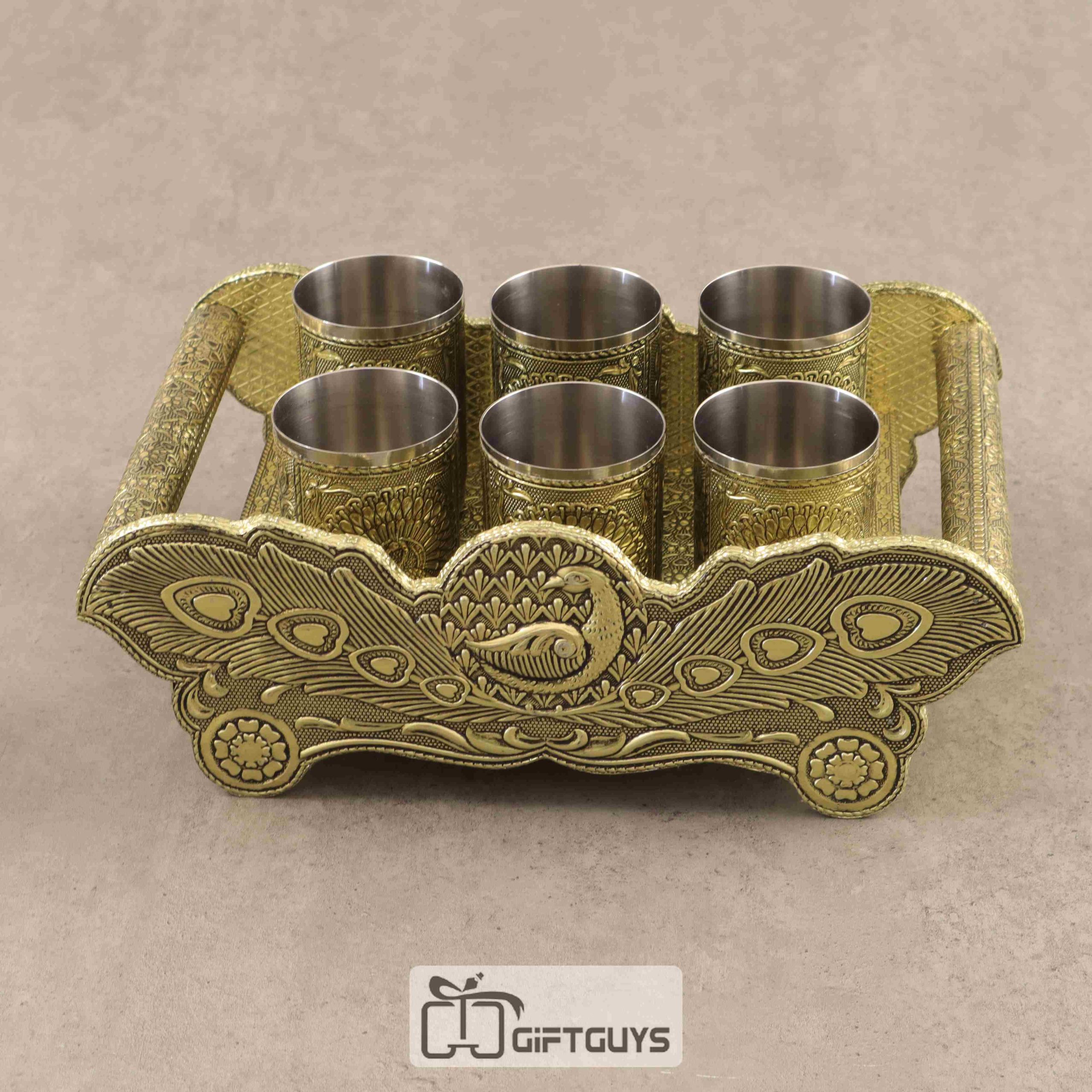 A wooden oxidized tray is a beautifully crafted piece that combines natural wood with an aged, oxidized finish for a rustic, antique look. The oxidization process enhances the wood’s texture, giving it a weathered, vintage charm while preserving its durability. Perfect for serving food, drinks, or as a decorative centerpiece, this tray adds an elegant touch to any space. The sturdy wood construction ensures long-lasting use, while the oxidized finish provides protection from wear and tear. Ideal for both traditional and modern settings, the wooden oxidized tray brings a sense of warmth and timeless appeal to any room.