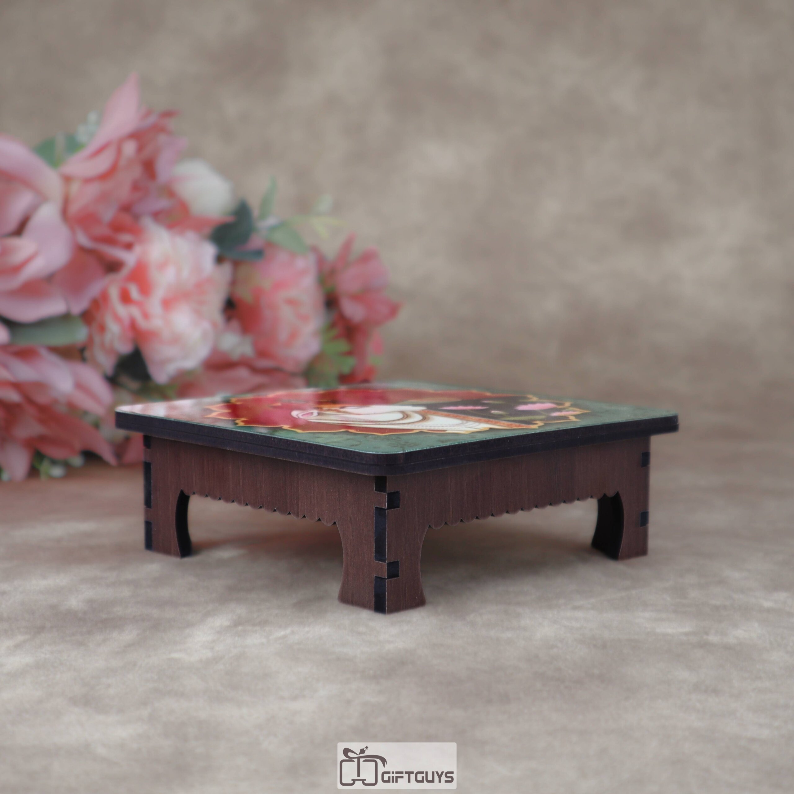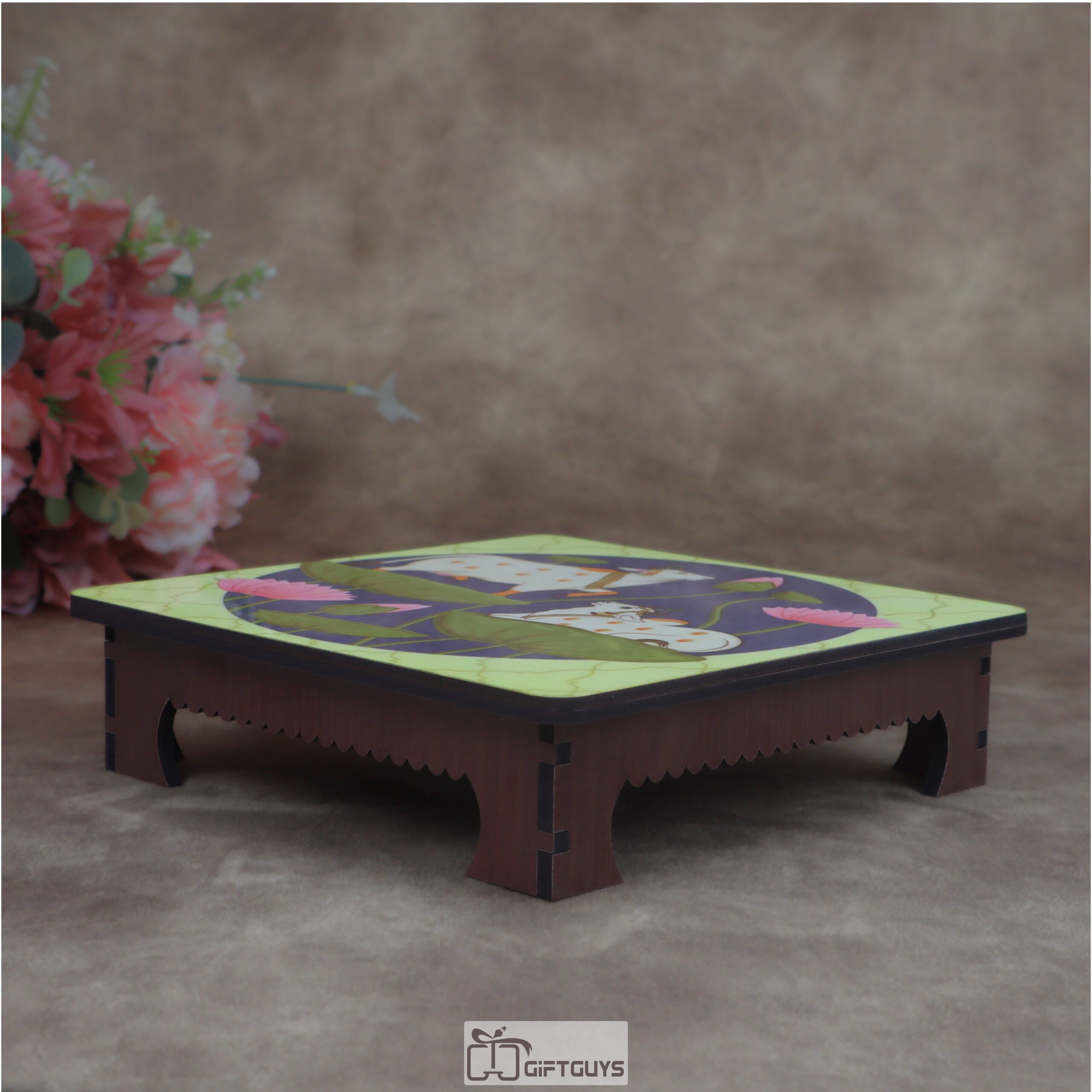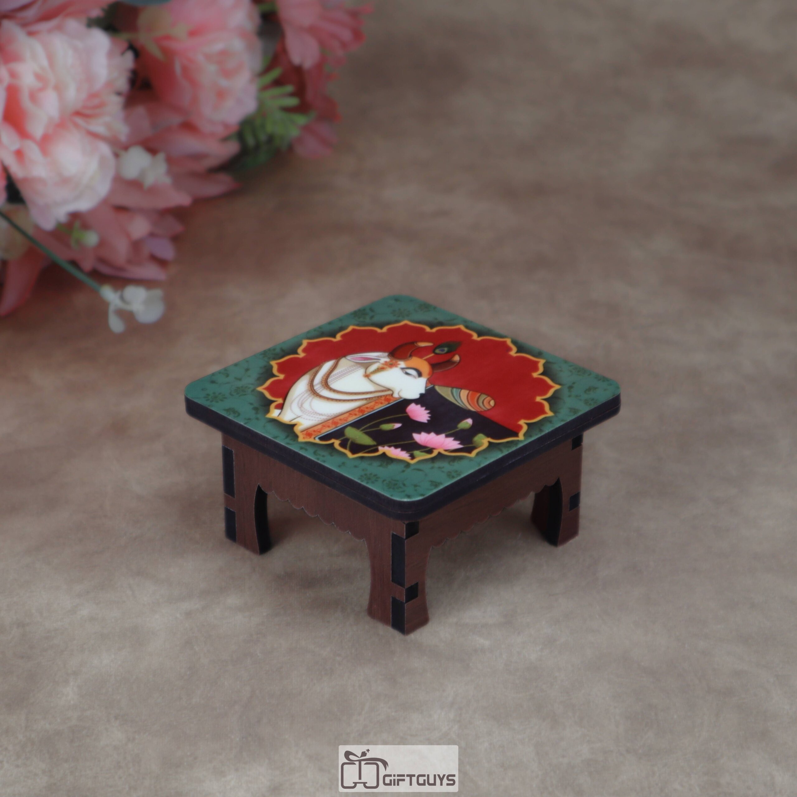 Be the first to review “Wooden Printed Pichwai Cow & Lotus Chowki (Small) | Auspicious Decorative Puja Platform”